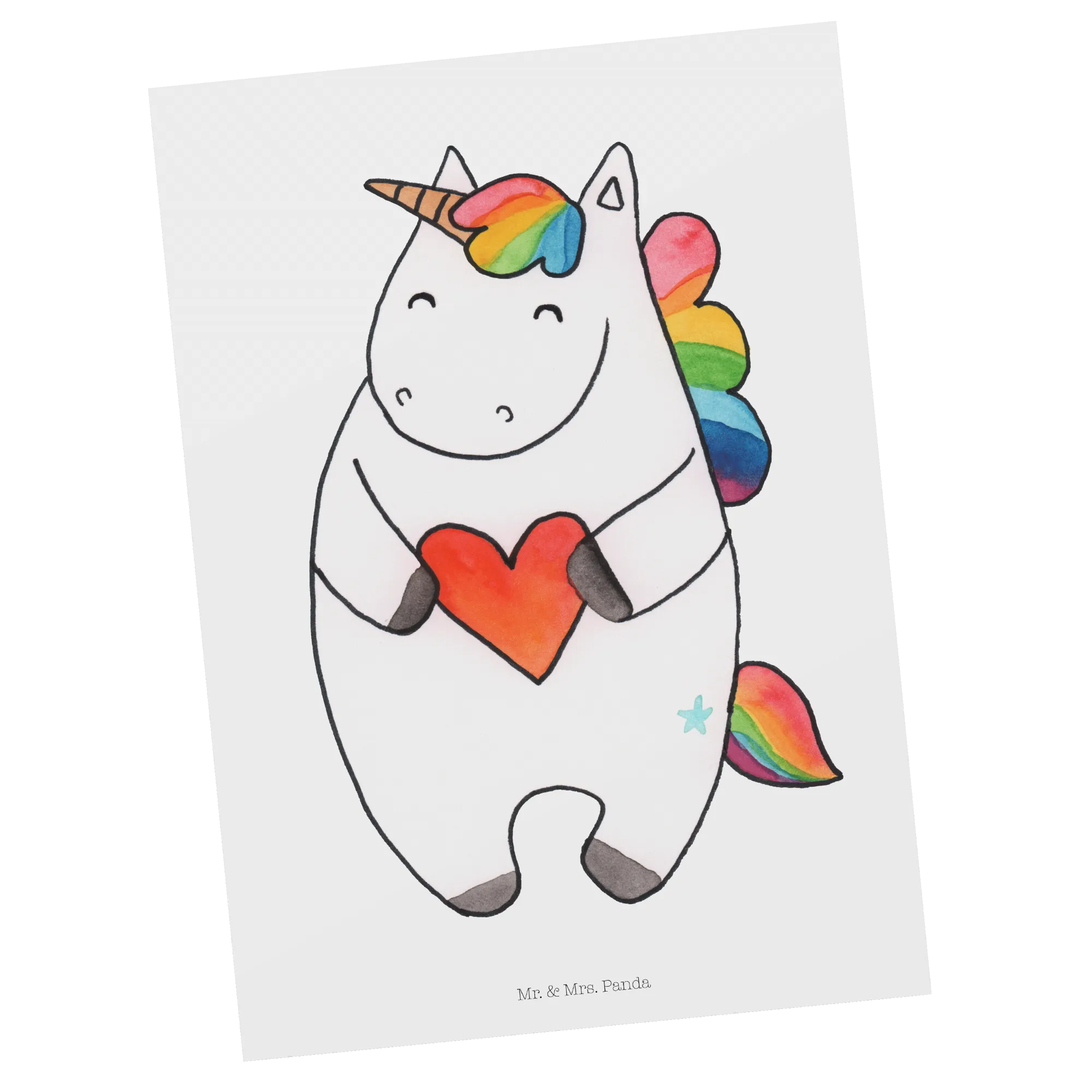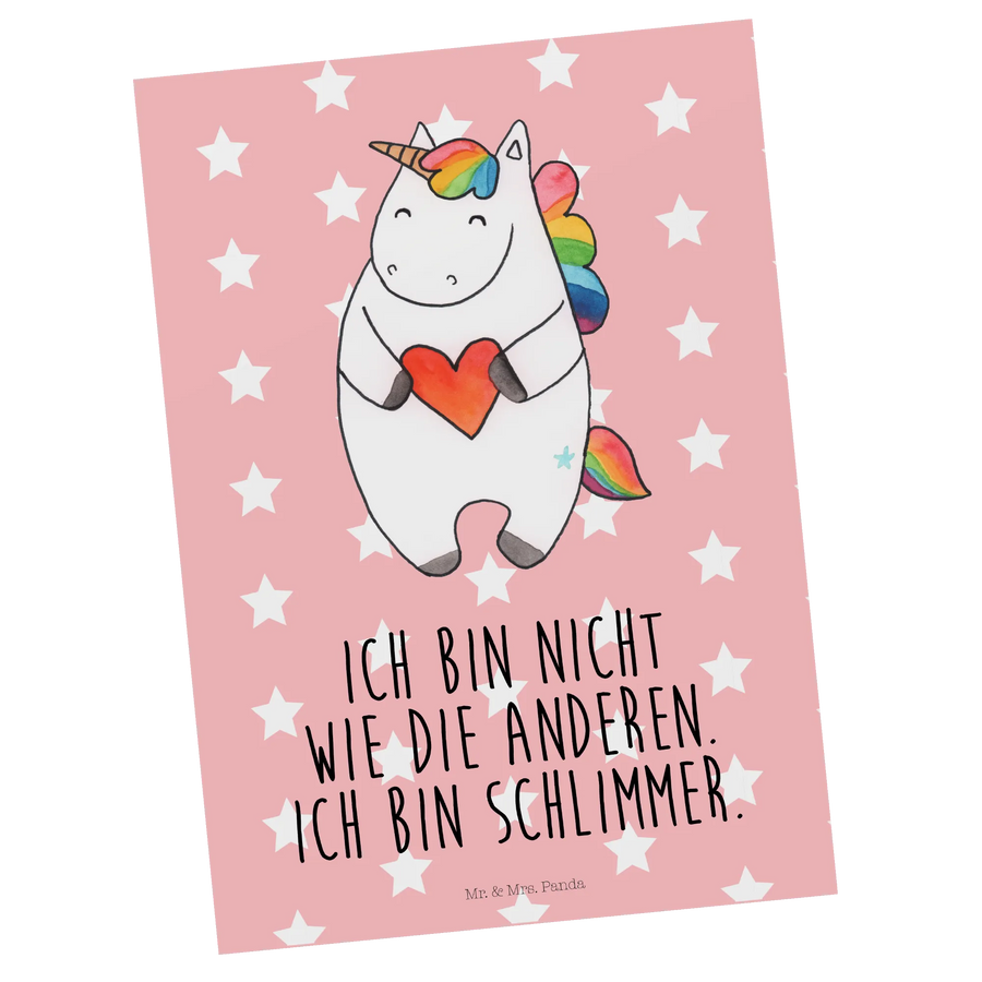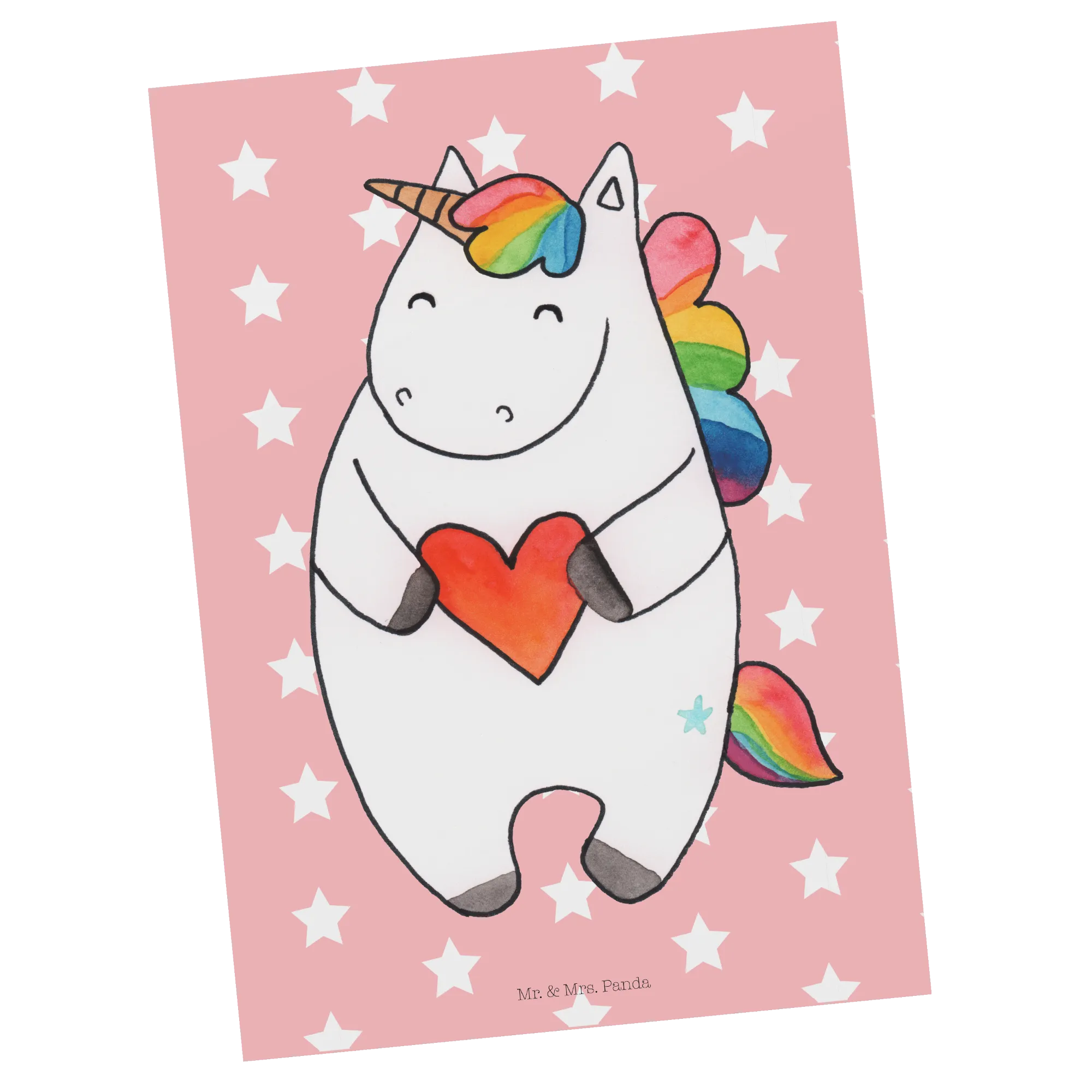 Pocztówka Jednorożec serce - z napisem - Różowy Czerwony