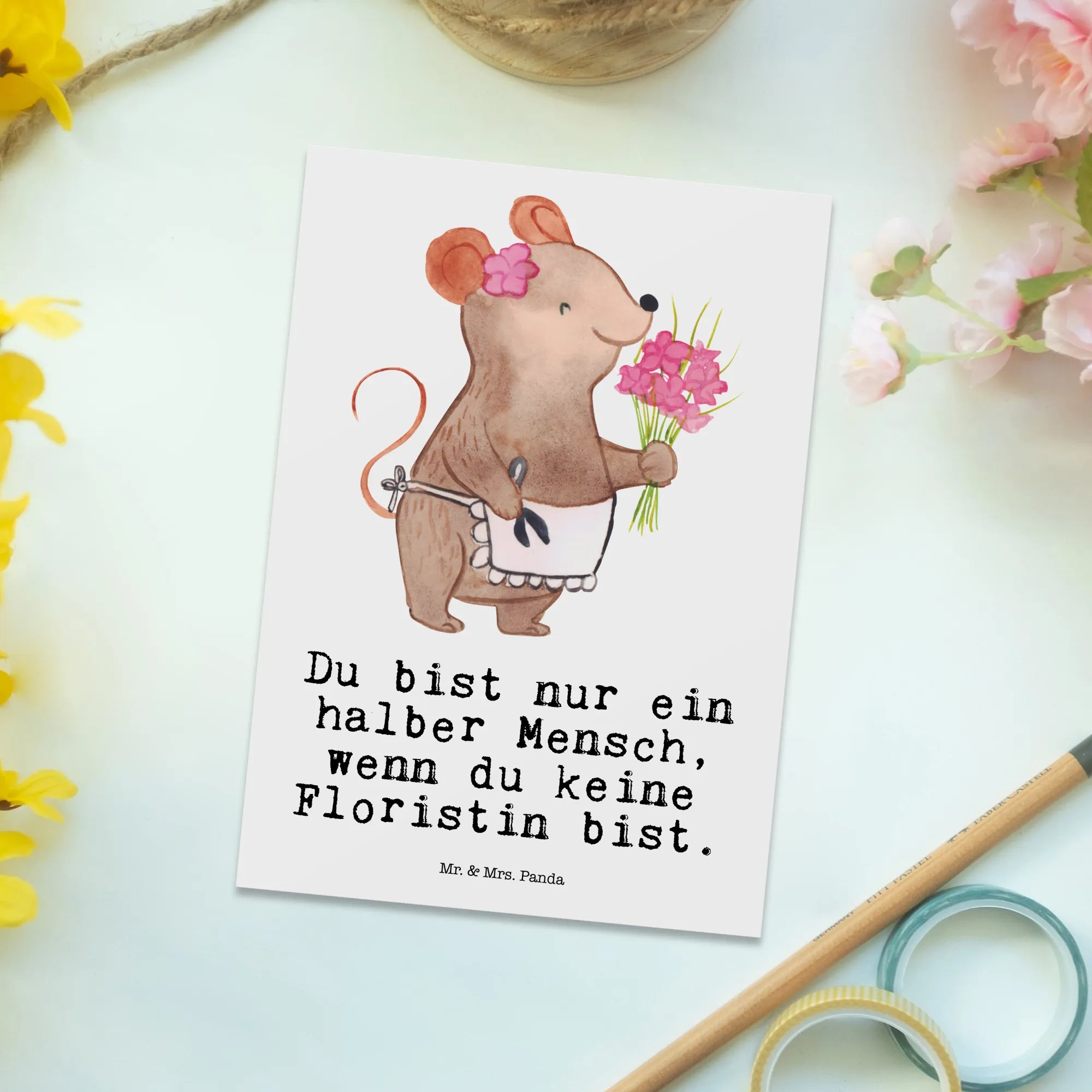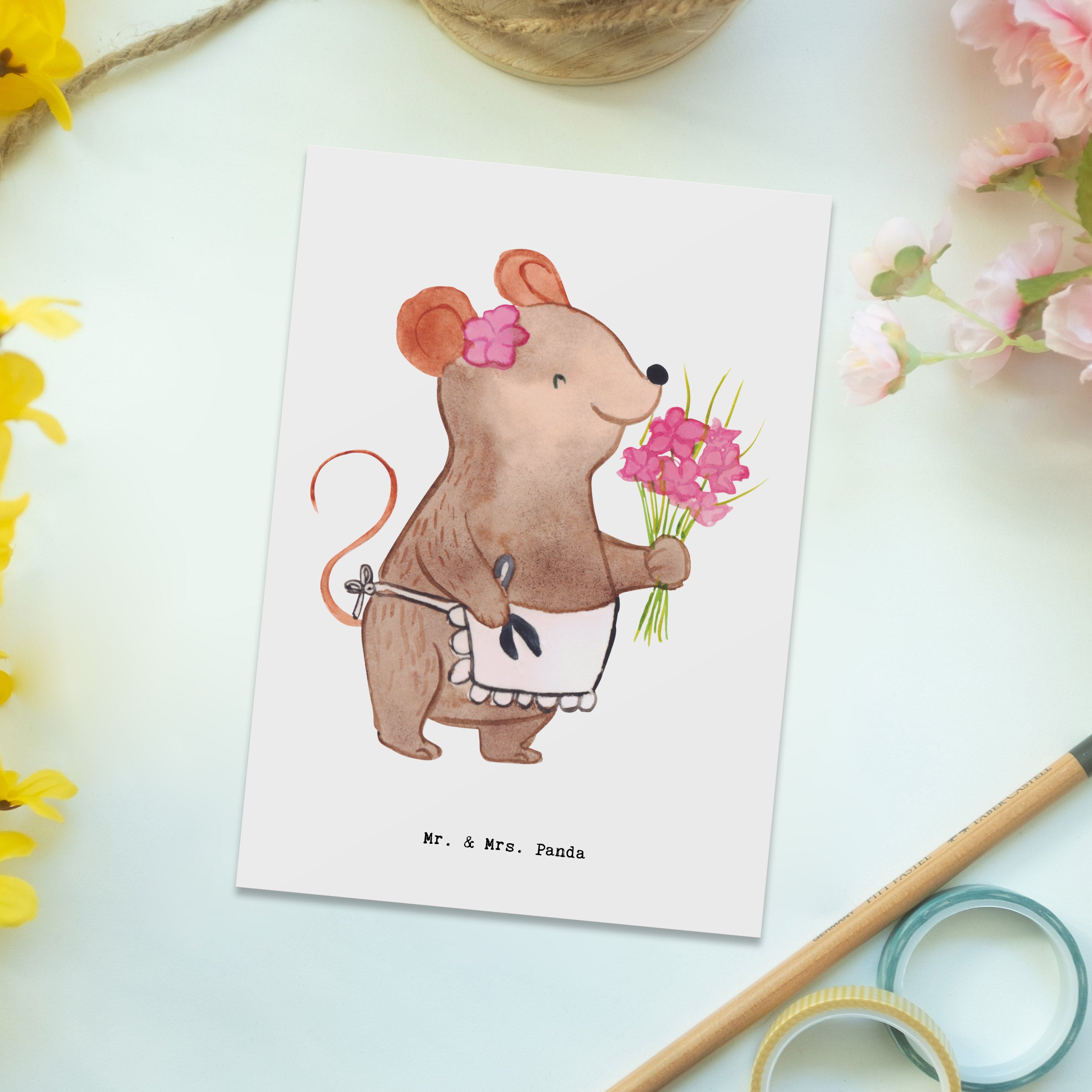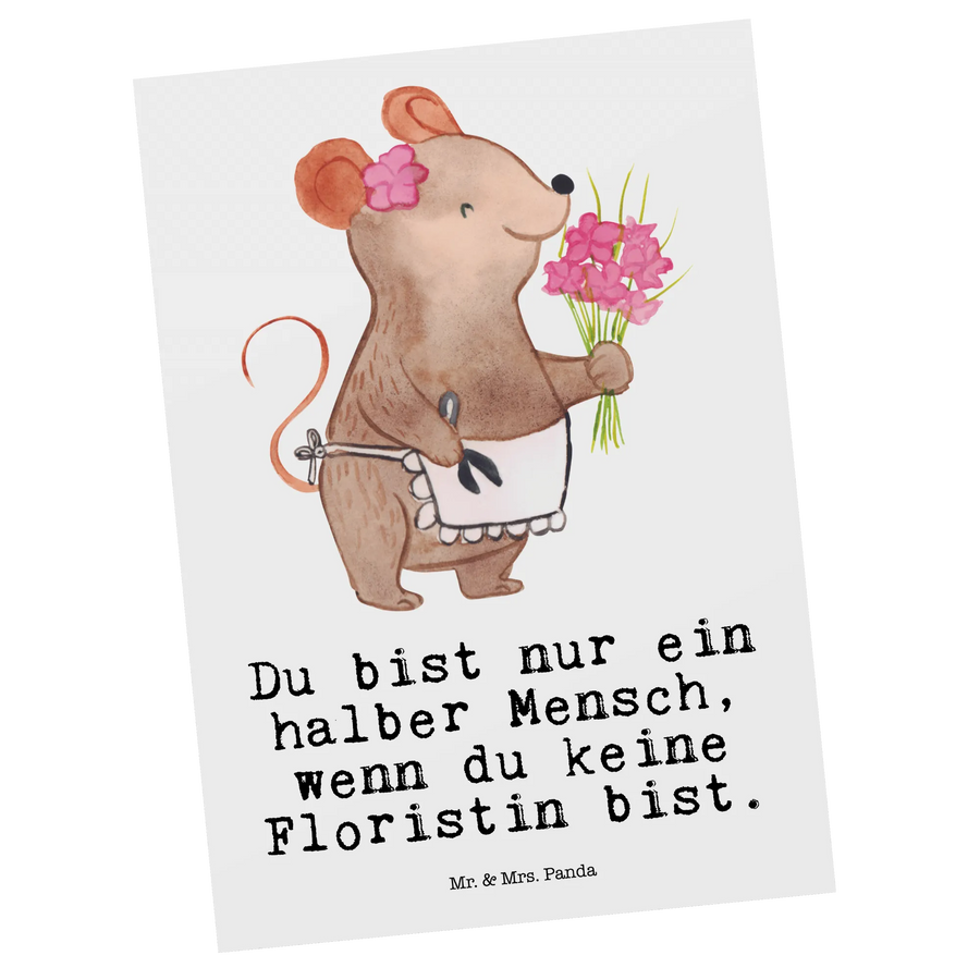 Pocztówka kwiaciarka serce - z napisem - biały