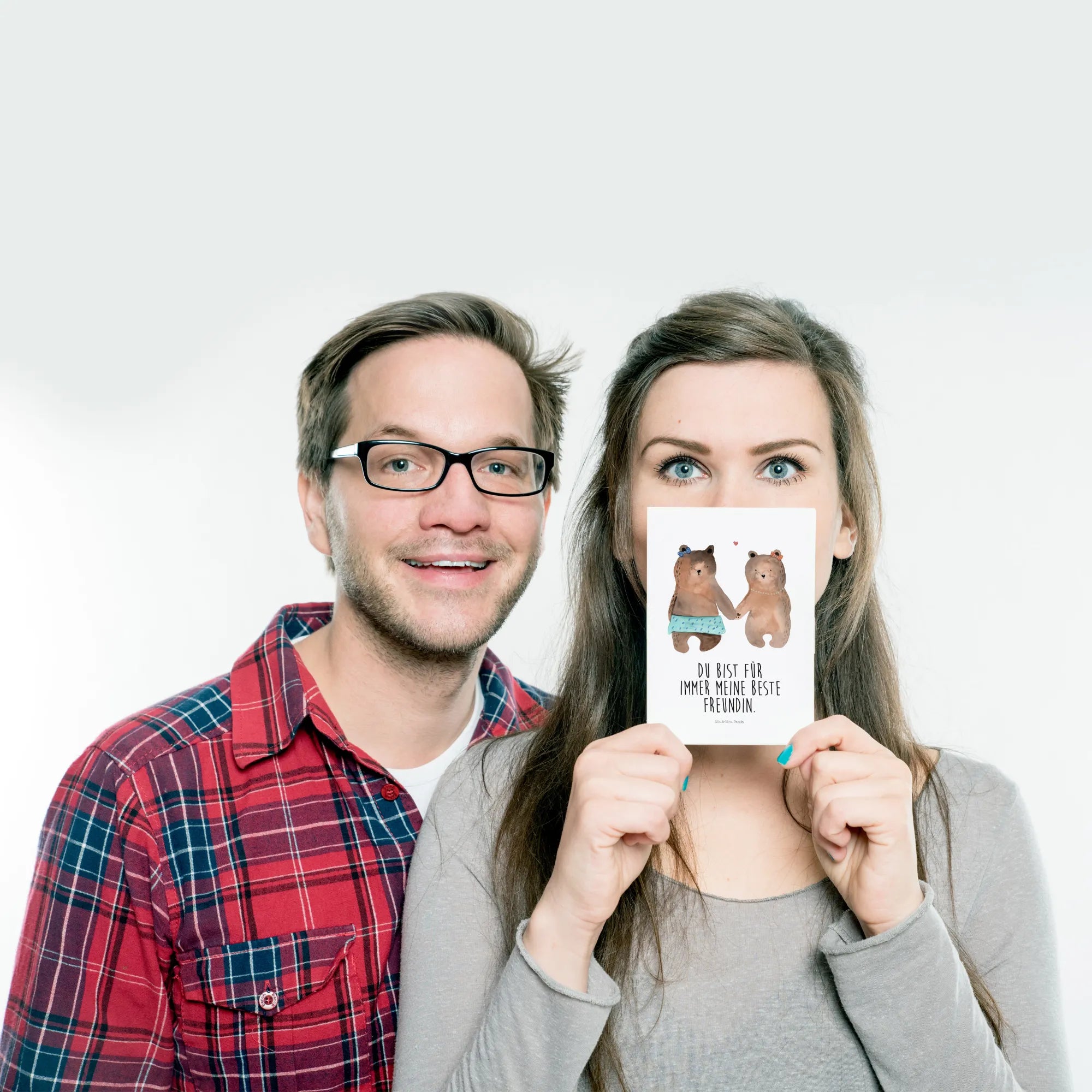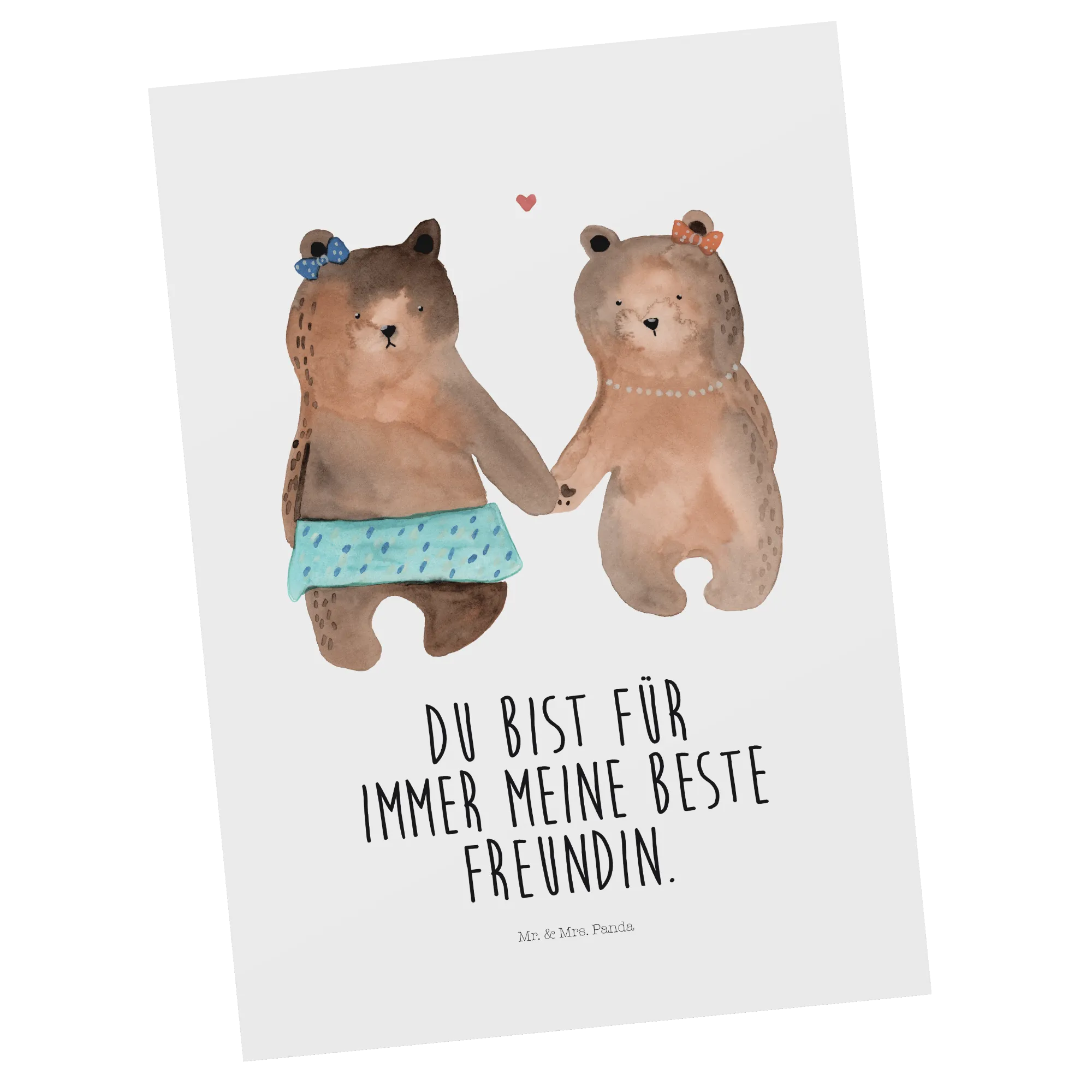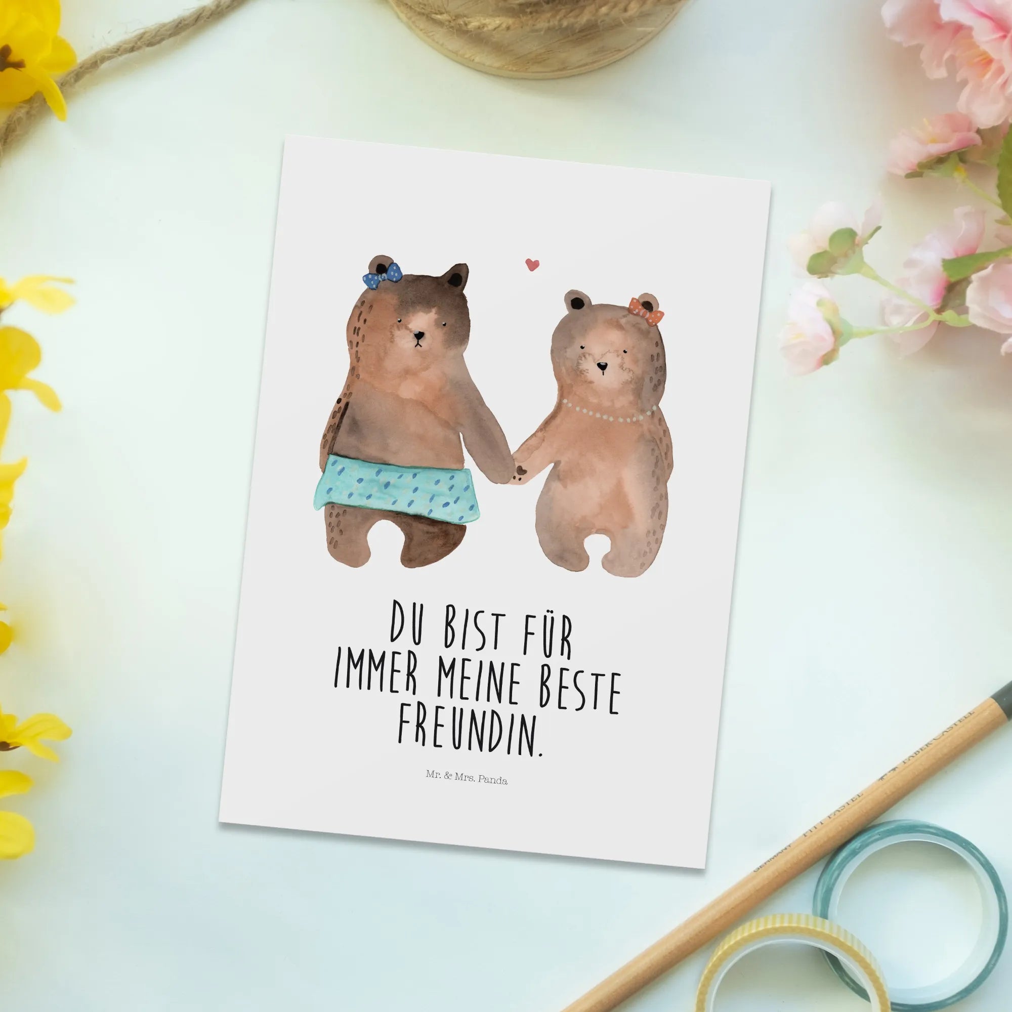 Pocztówka Niedźwiedź przyjaciółka - z napisem - Pastelowy szary