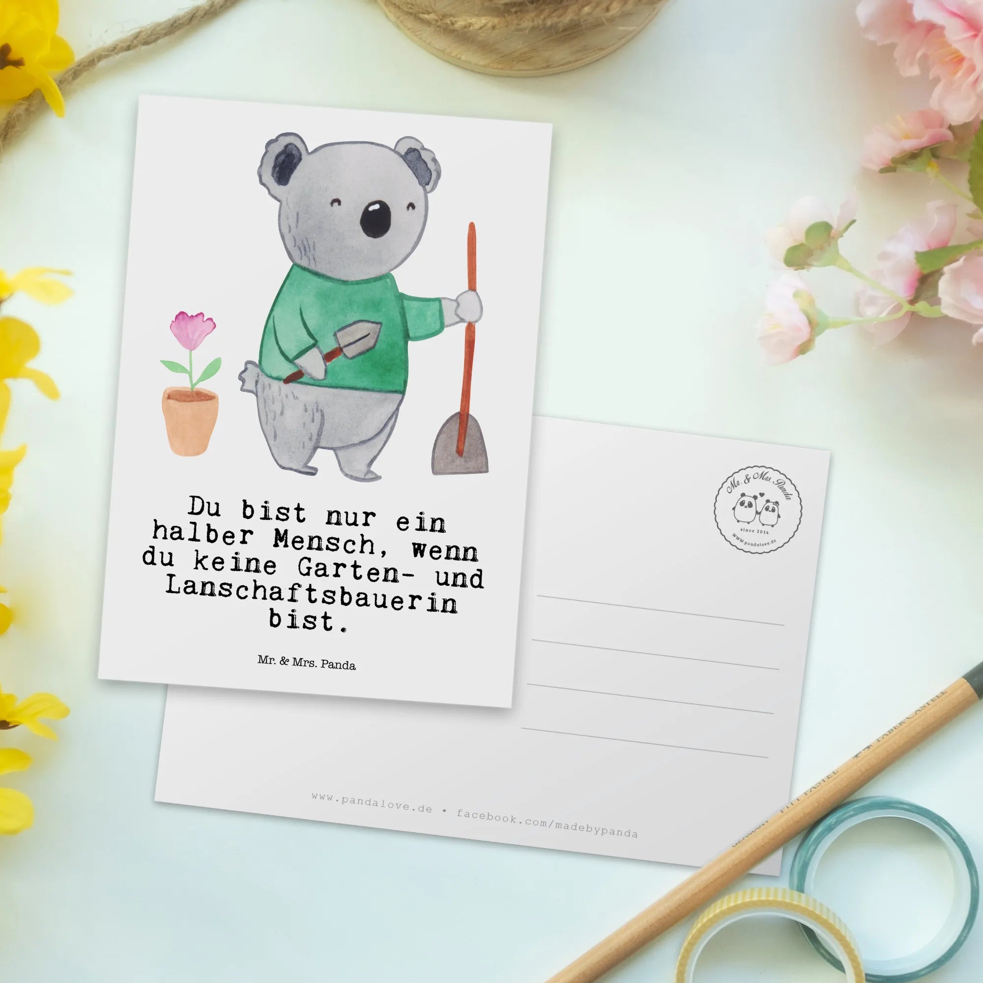 Pocztówka ogrodniczka krajobrazowa serce - z napisem - biały