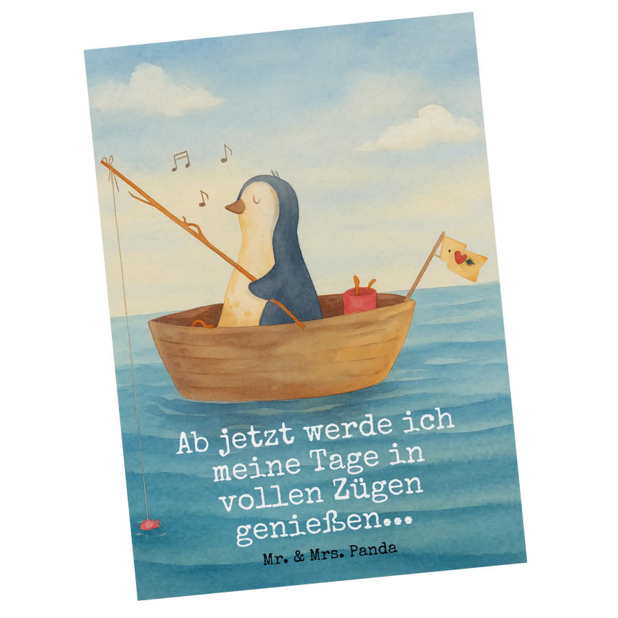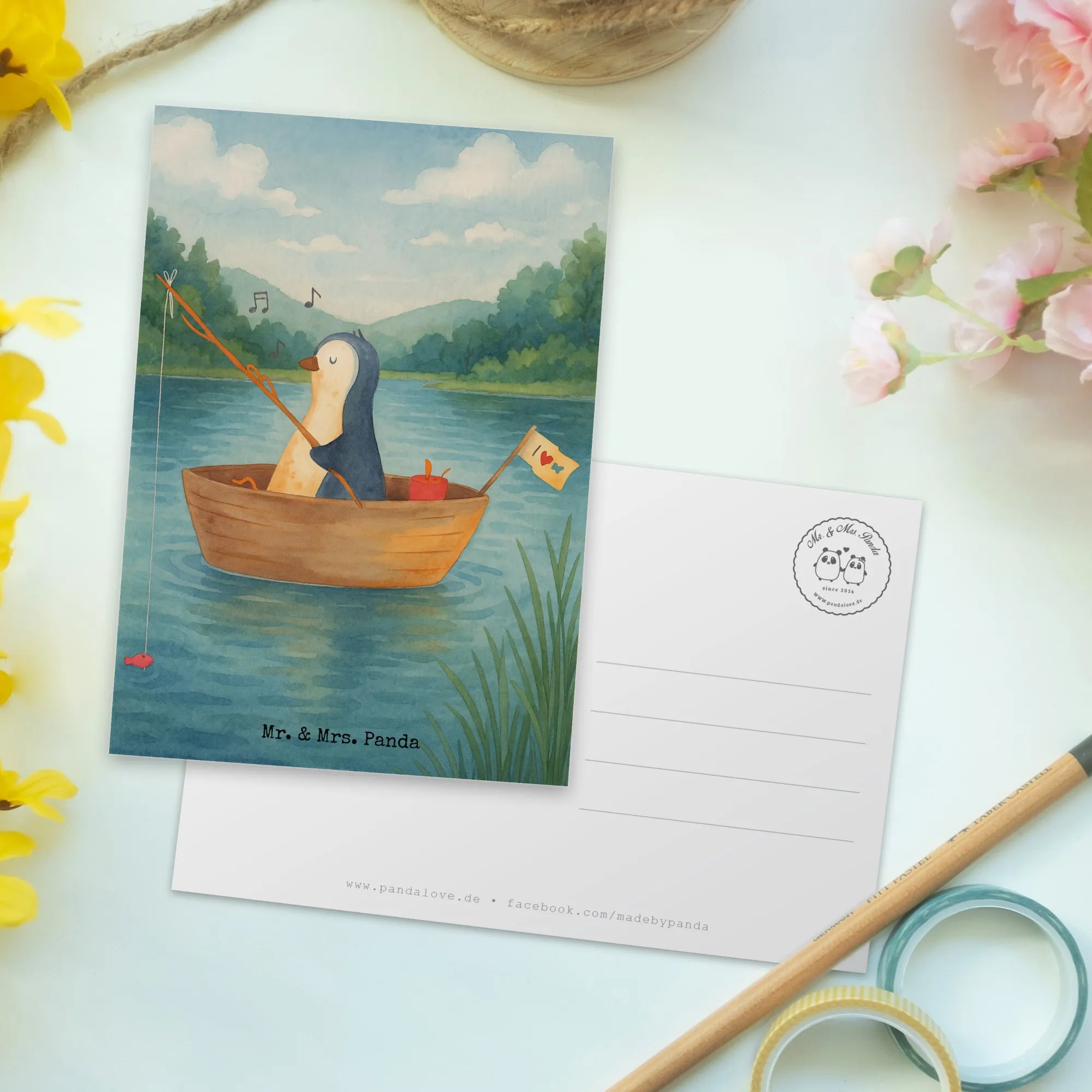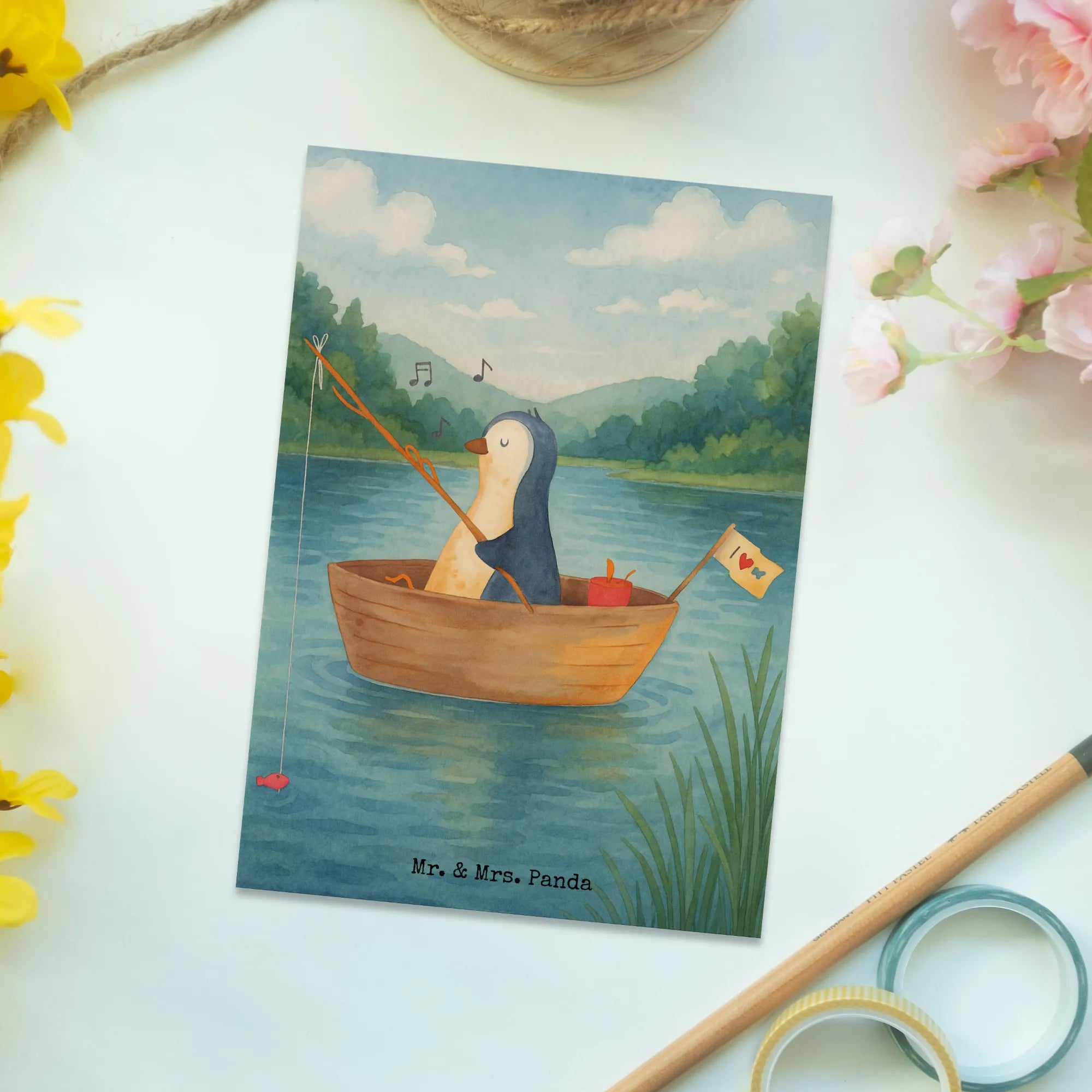 Pocztówka pingwin łódka wędkarska Design - z napisem