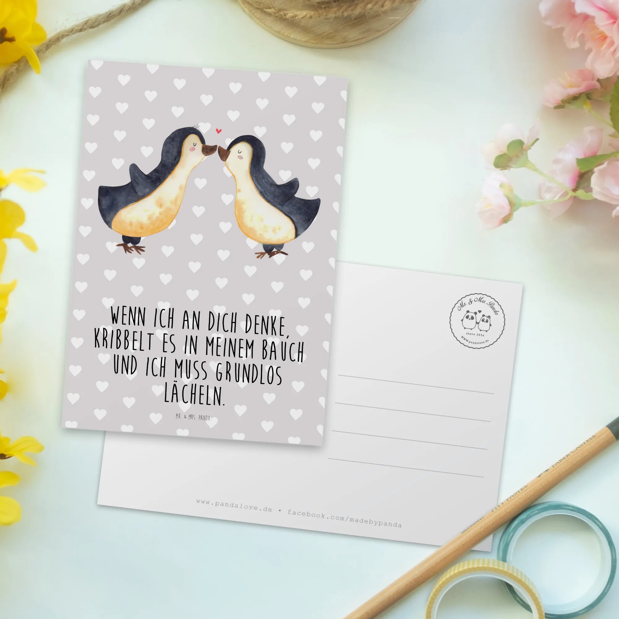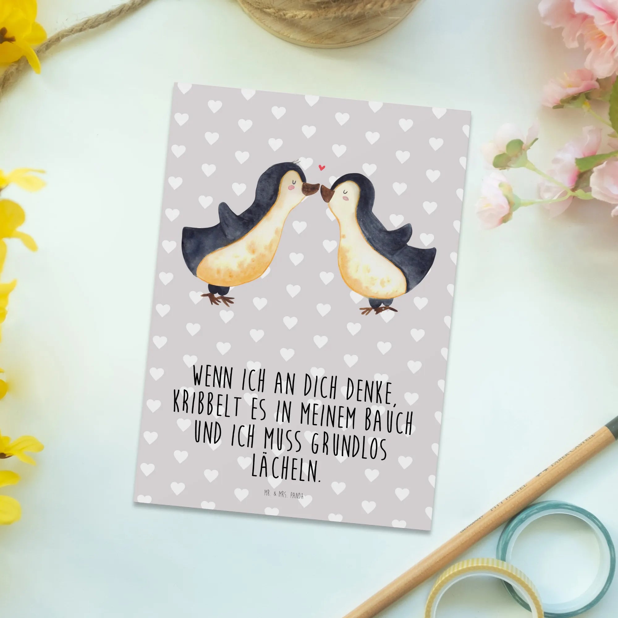 Postkarte „Pinguine Kuss“ – ein liebevoller Gruß von Mr. & Mrs. Panda