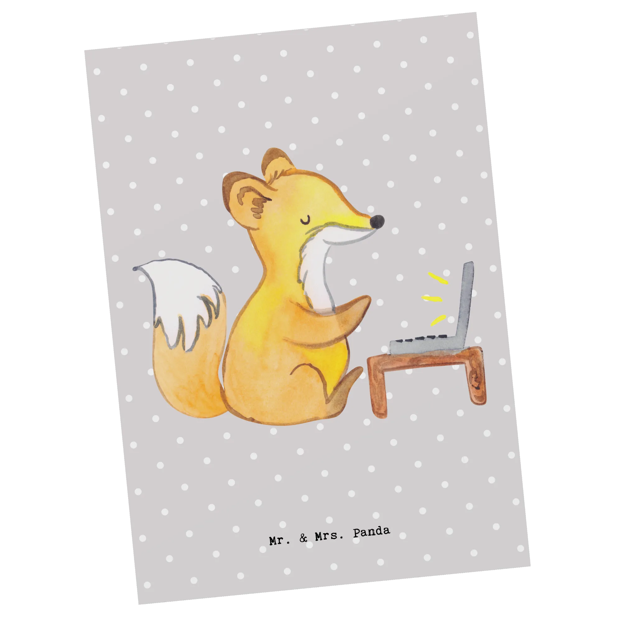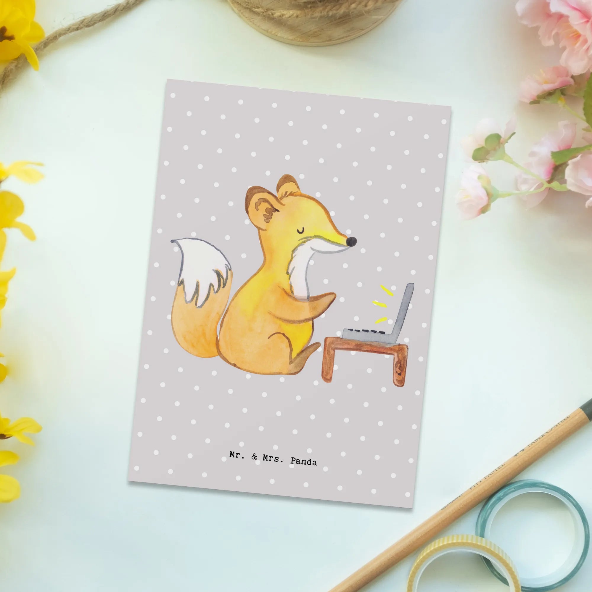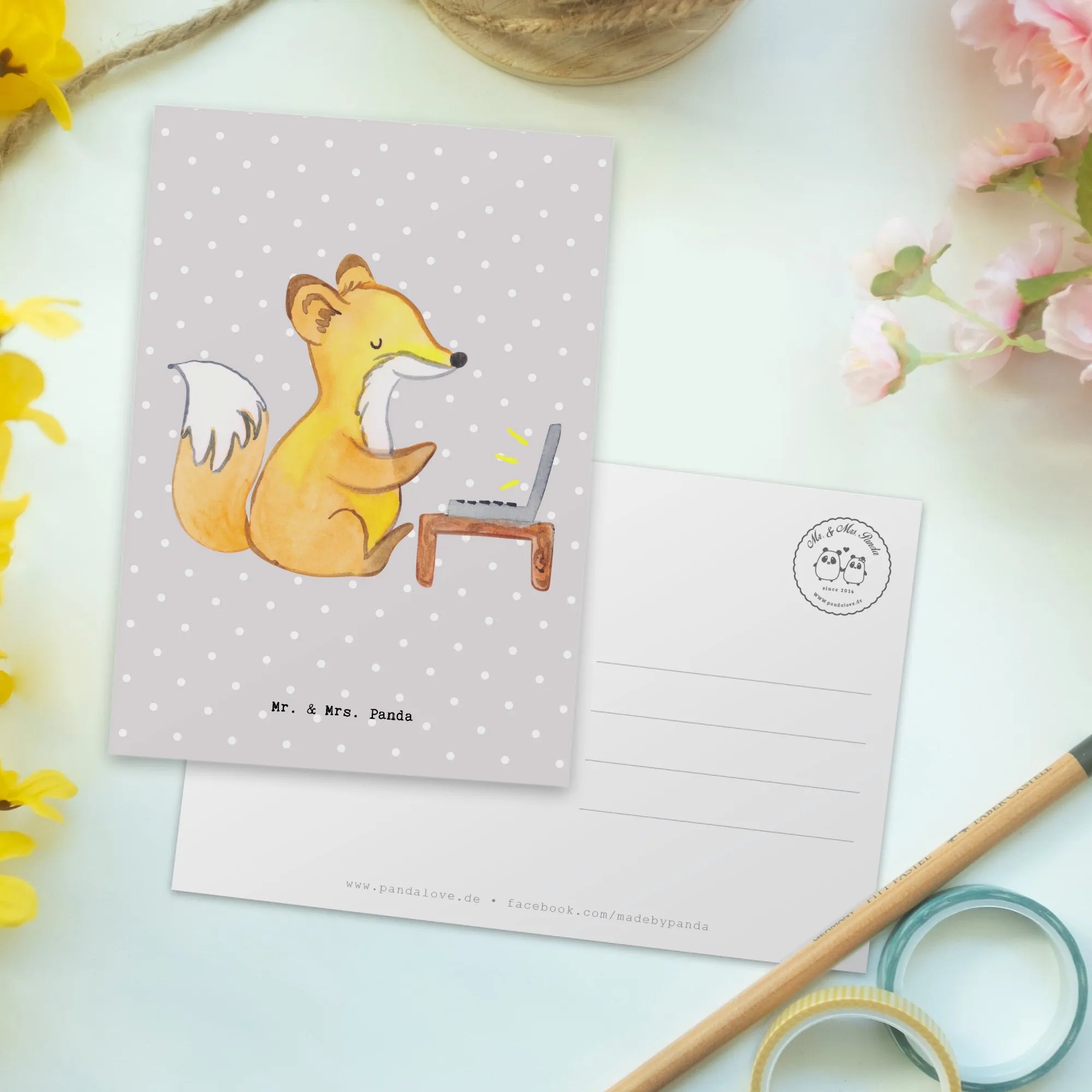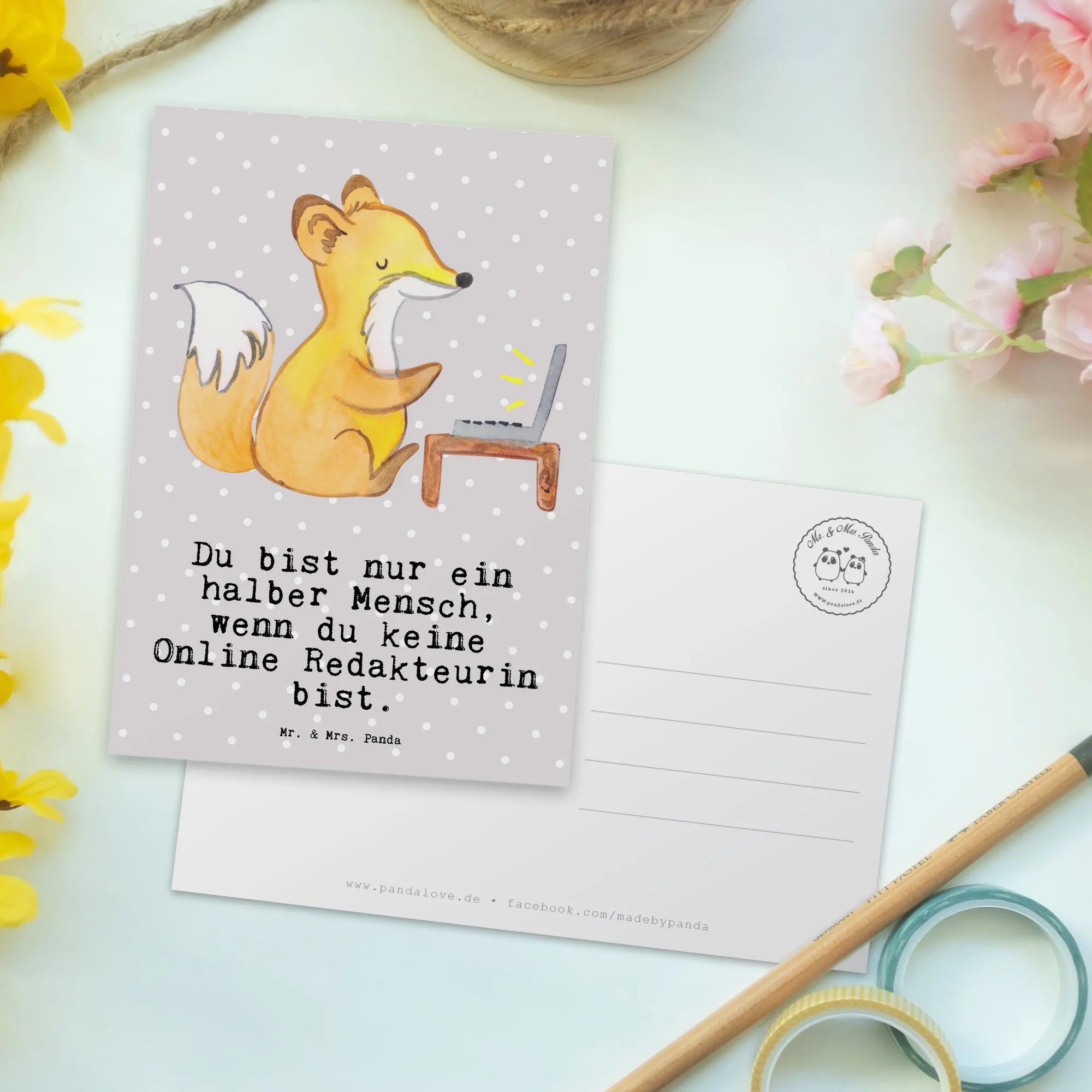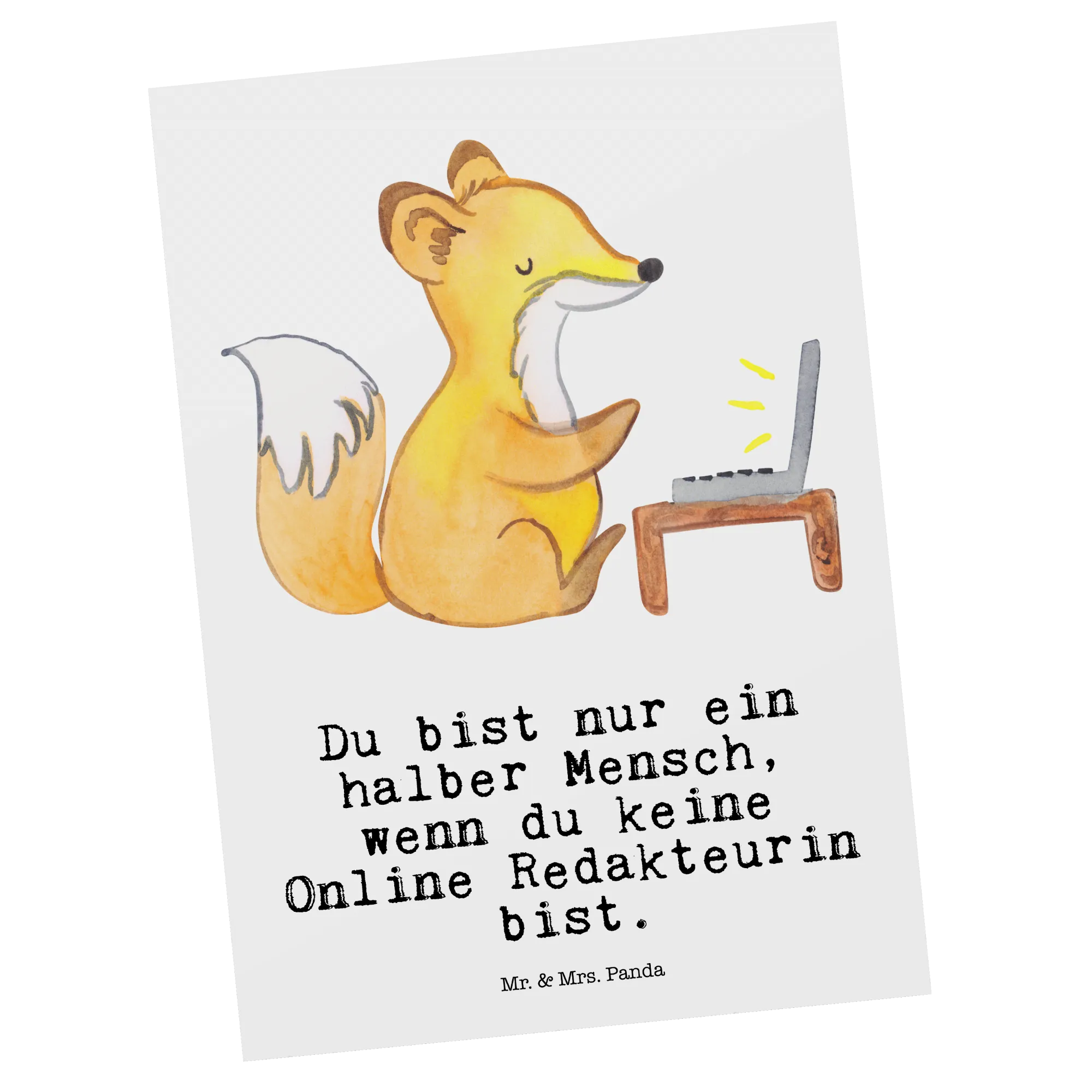 Für alle Online-Redakteurinnen mit Herz: Unsere Postkarte „Online Redakteurin mit Herz“ aus der Berufe-Kollektion von Mr. & Mrs. Panda verbindet liebevolle Illustration mit einem frechen Spruch. Auf der Vorderseite sitzt ein süßer, weiblicher Fuchs an einer Schreibmaschine und macht klar: Schreiben ist Leidenschaft. Der Slogan „Du bist nur ein halber Mensch, wenn du keine Online Redakteurin bist.“ sorgt für ein Augenzwinkern und bringt Wertschätzung auf den Punkt.