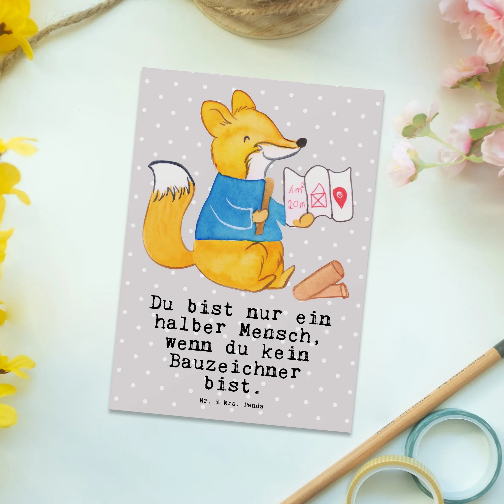 Pocztówka rysownik budowlany serce - z napisem - Pastelowy szary