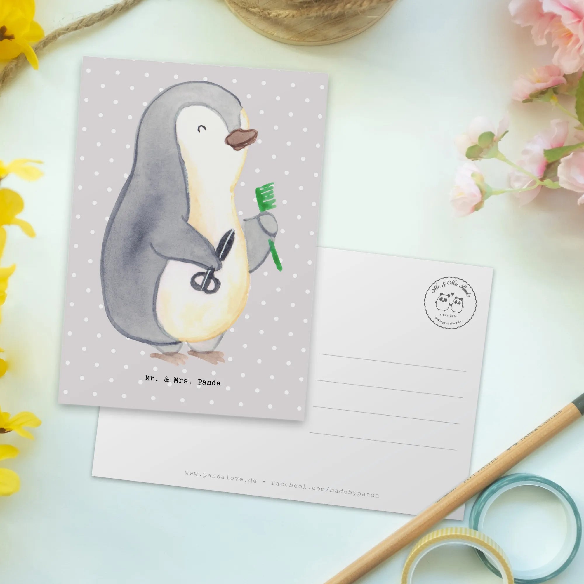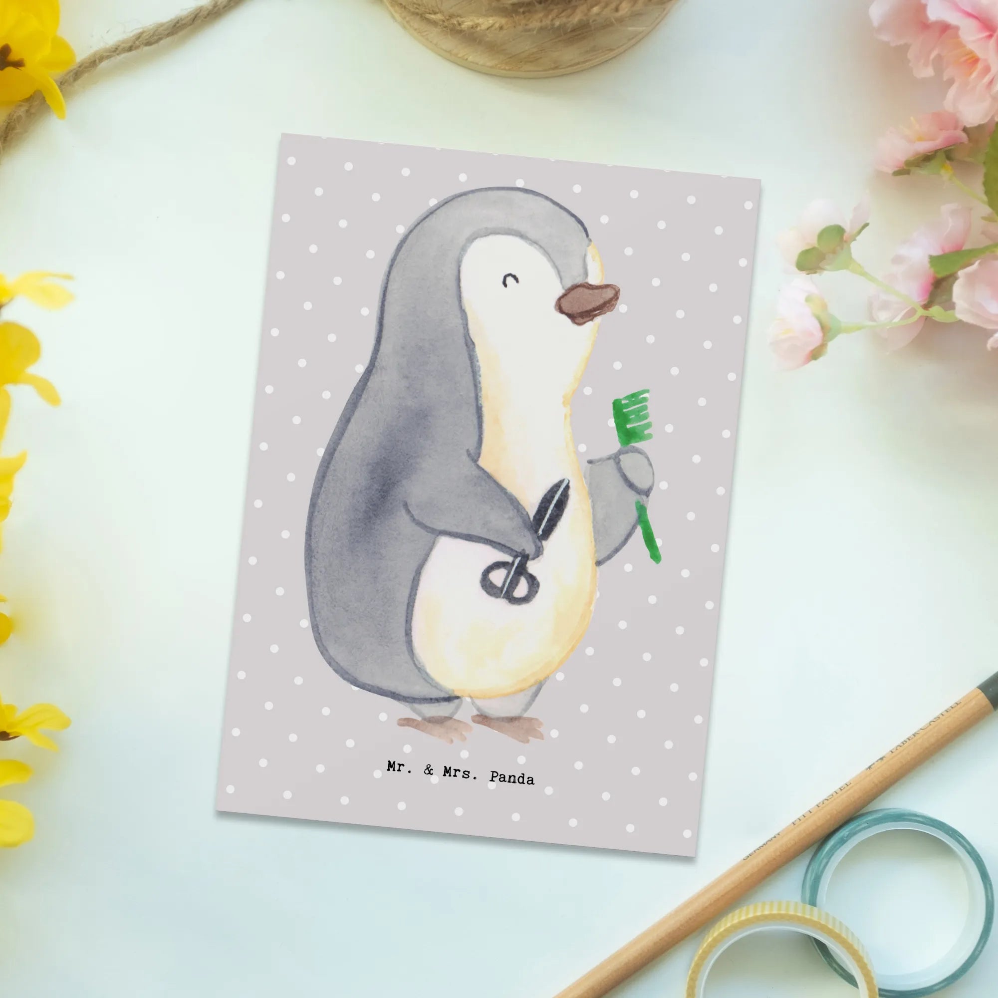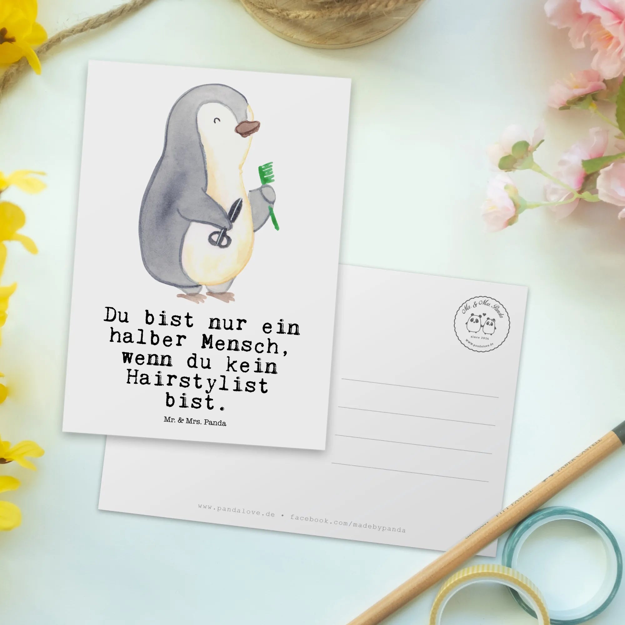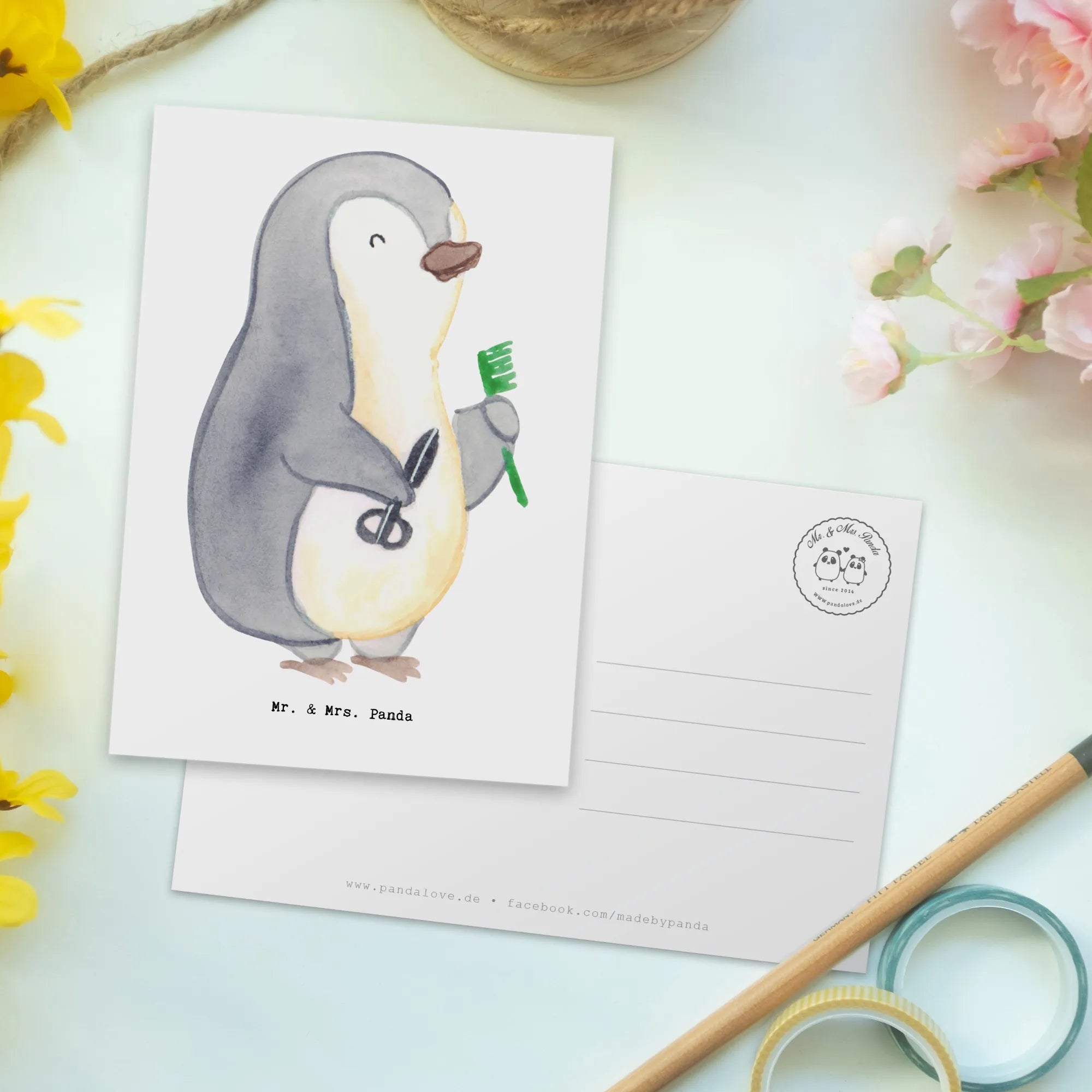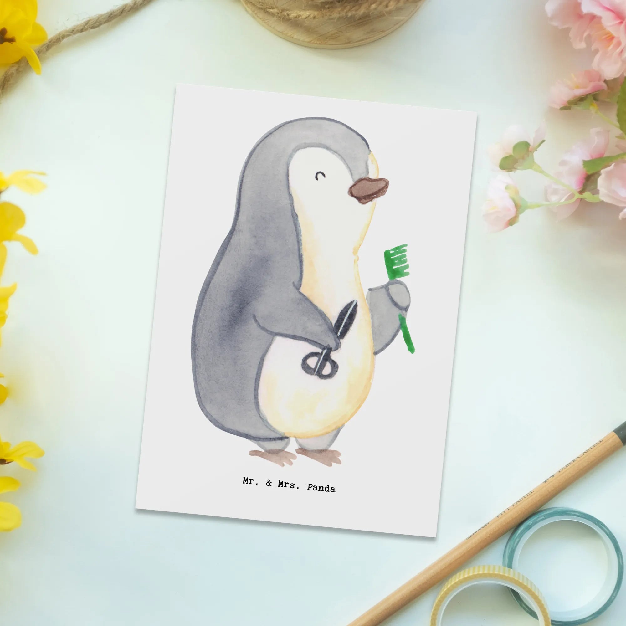 Pocztówka stylista fryzur serce - z napisem - Biały