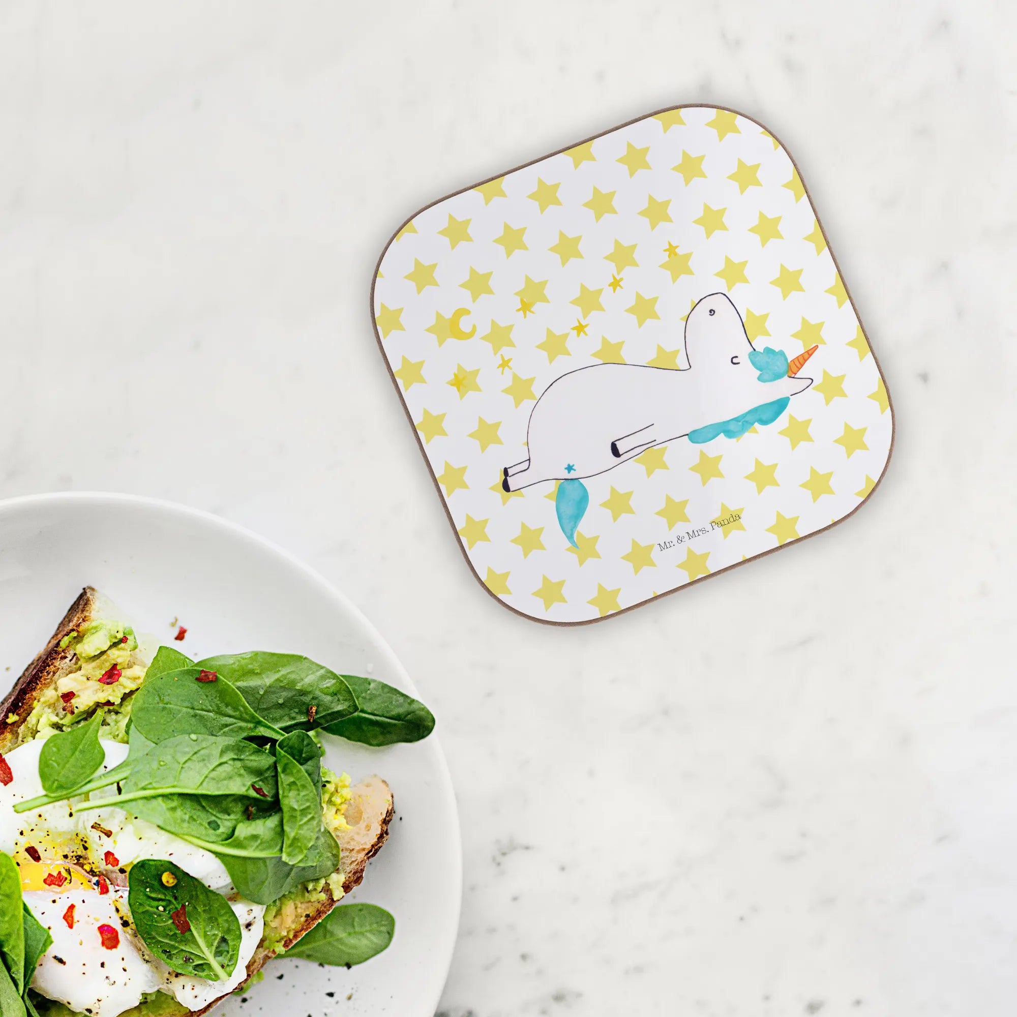Podkładka Jednorożec gwiaździste niebo - z napisem - Pastelowy czerwony