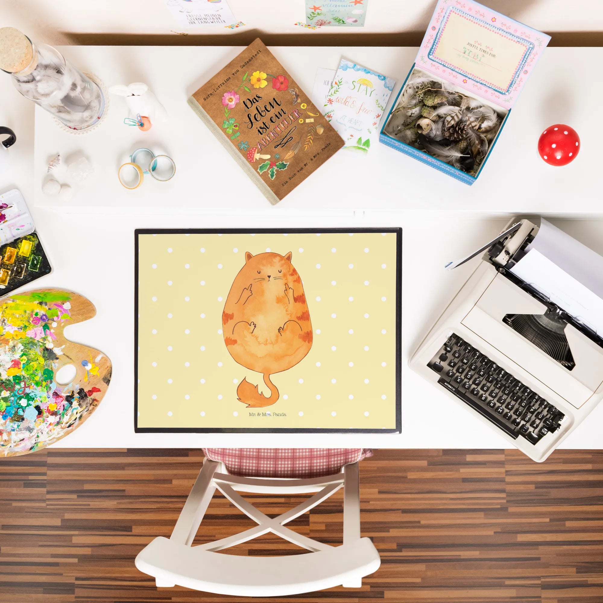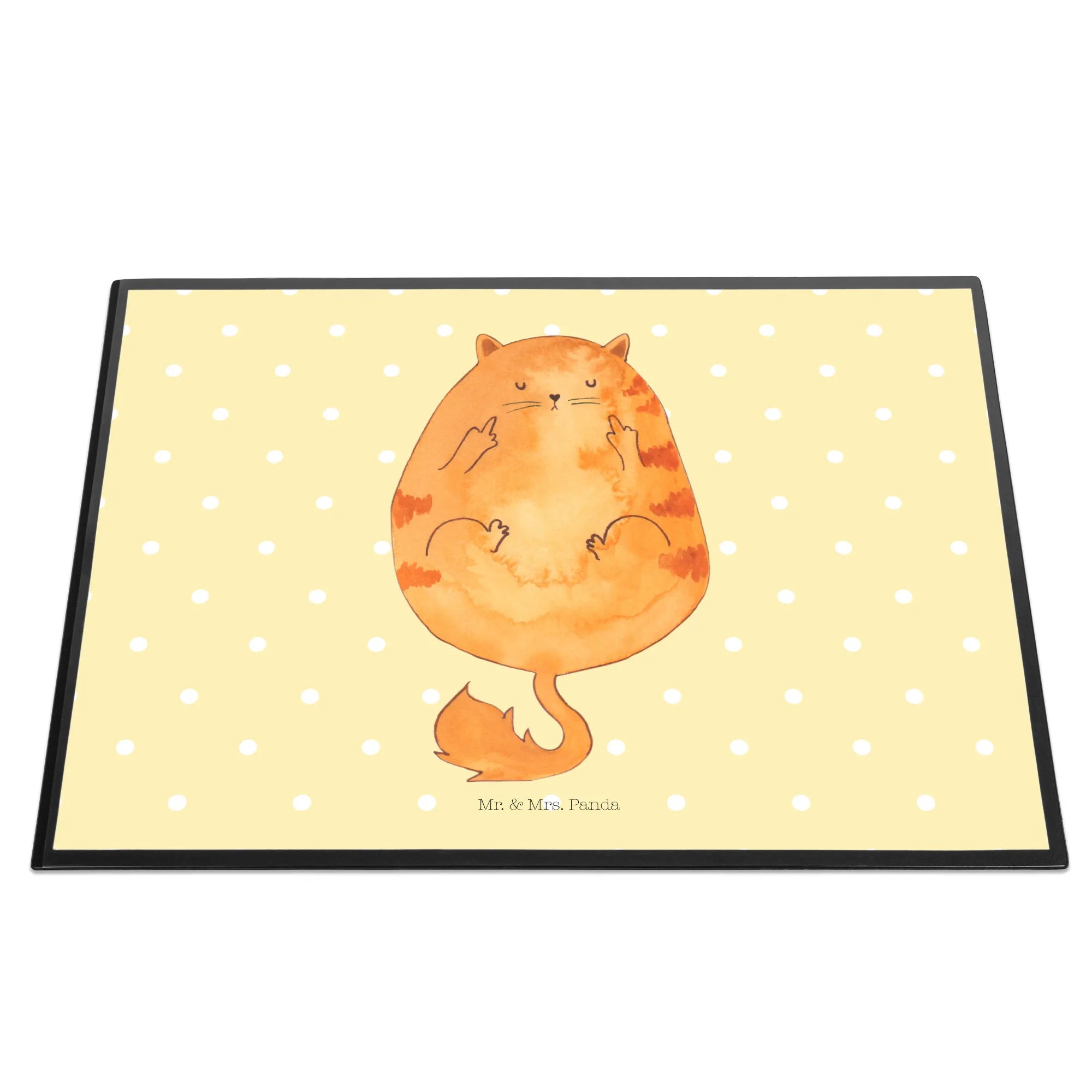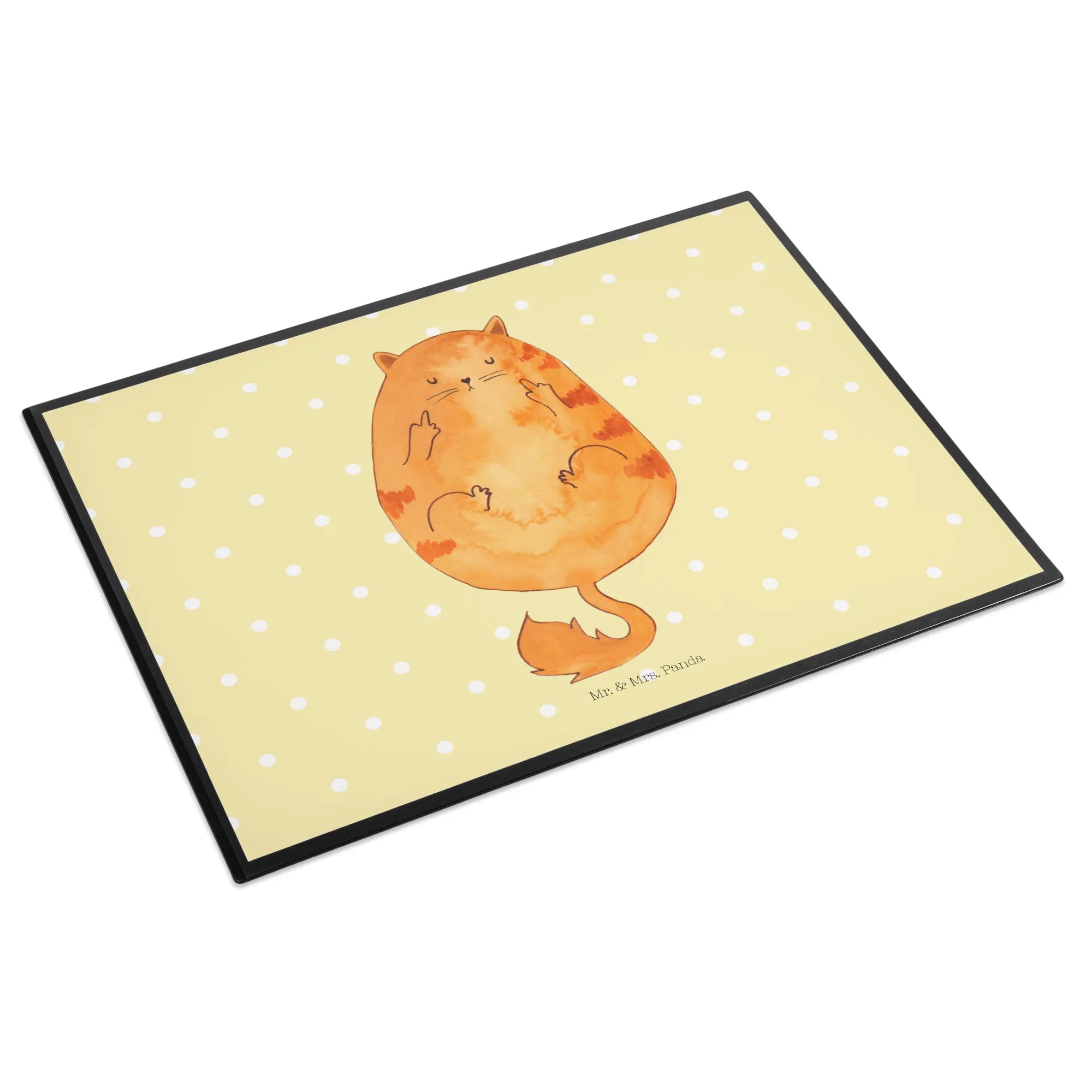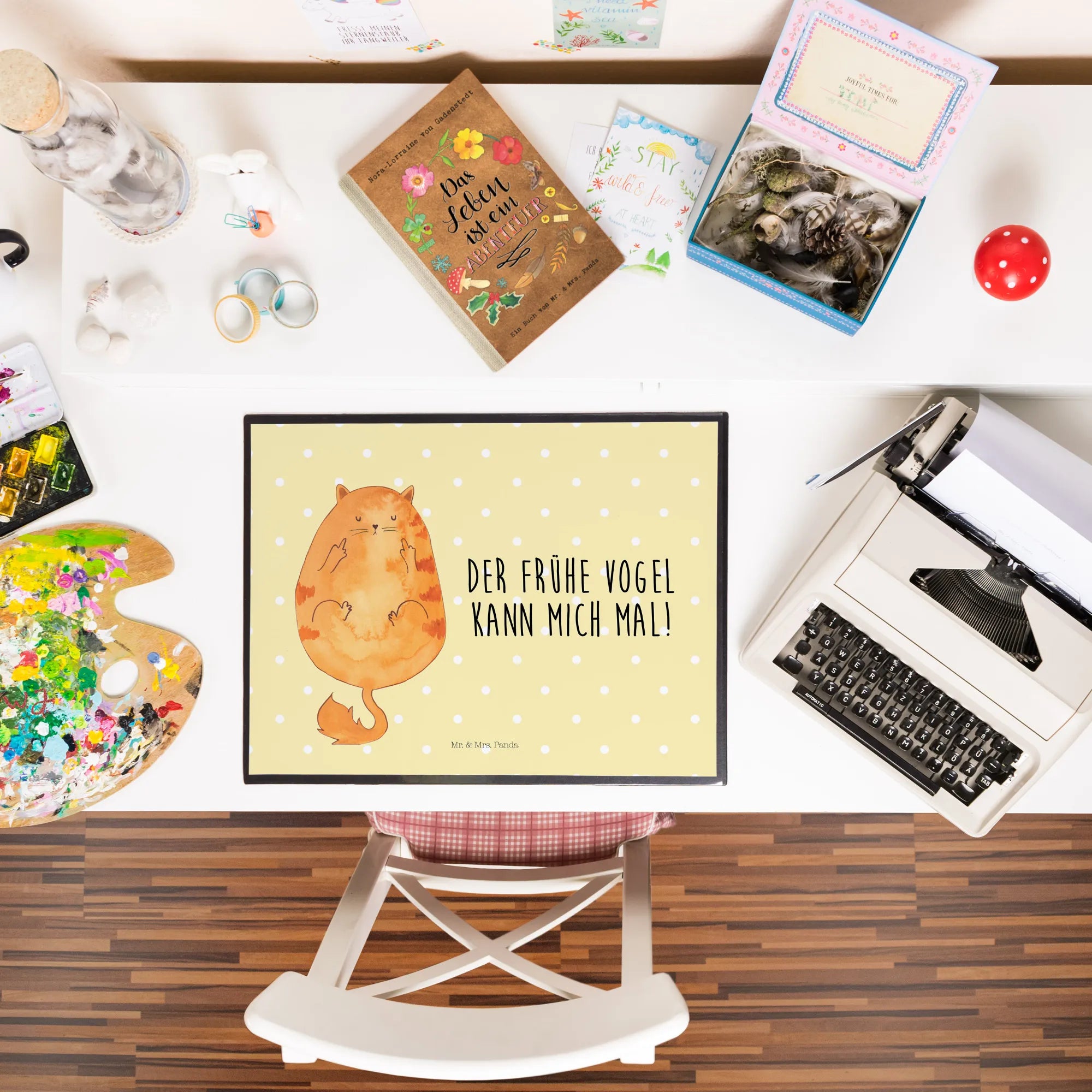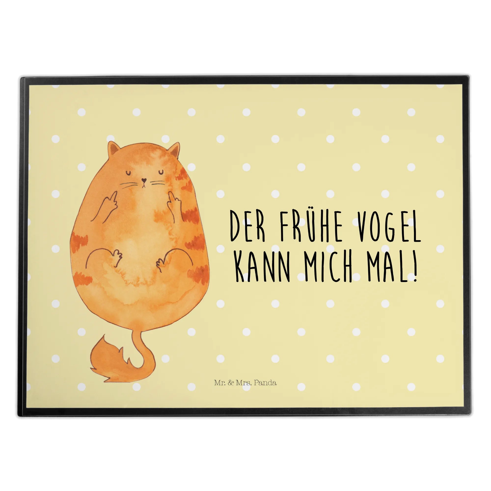 Podkładka na biurko Kot ranny ptaszek - z napisem - Żółty Pastel