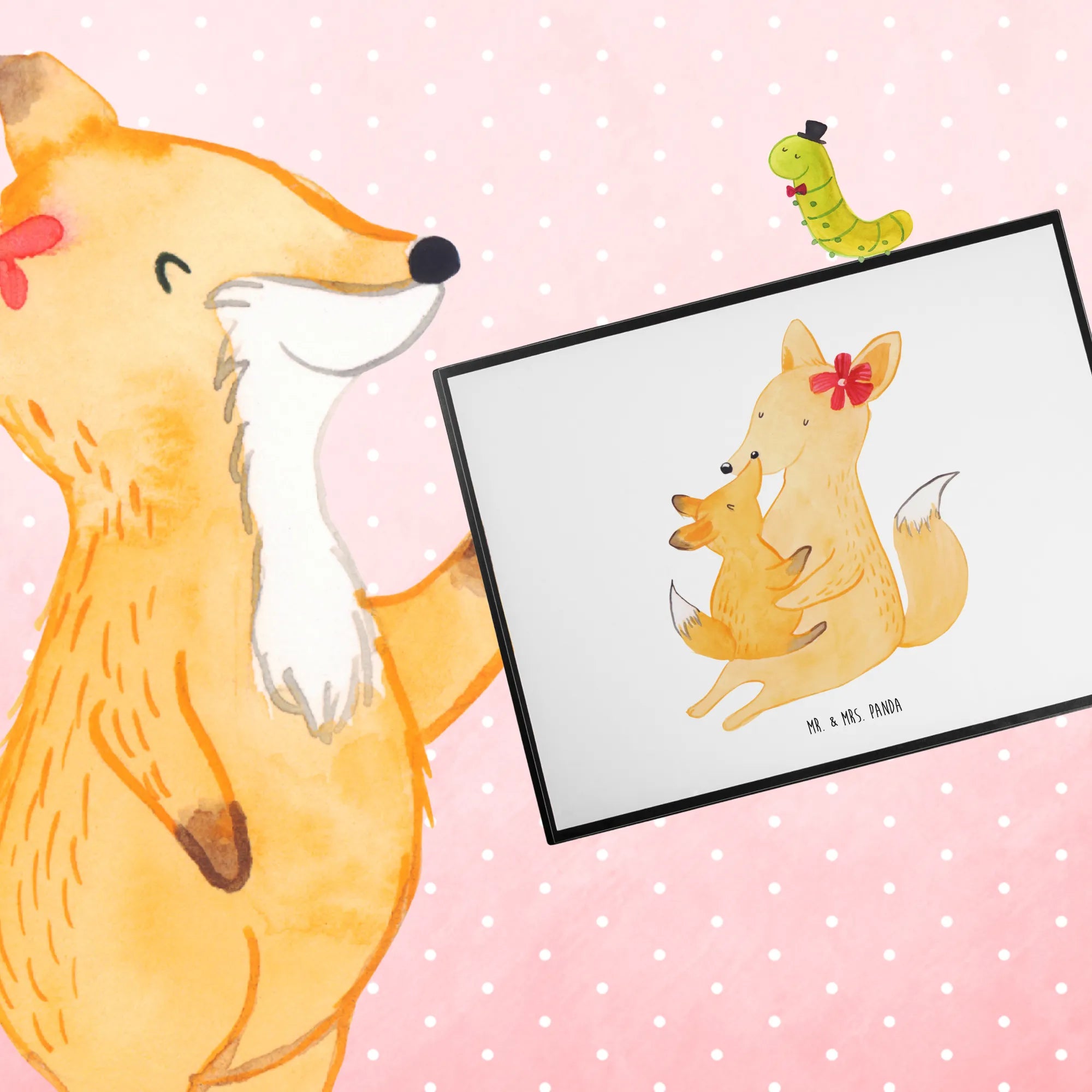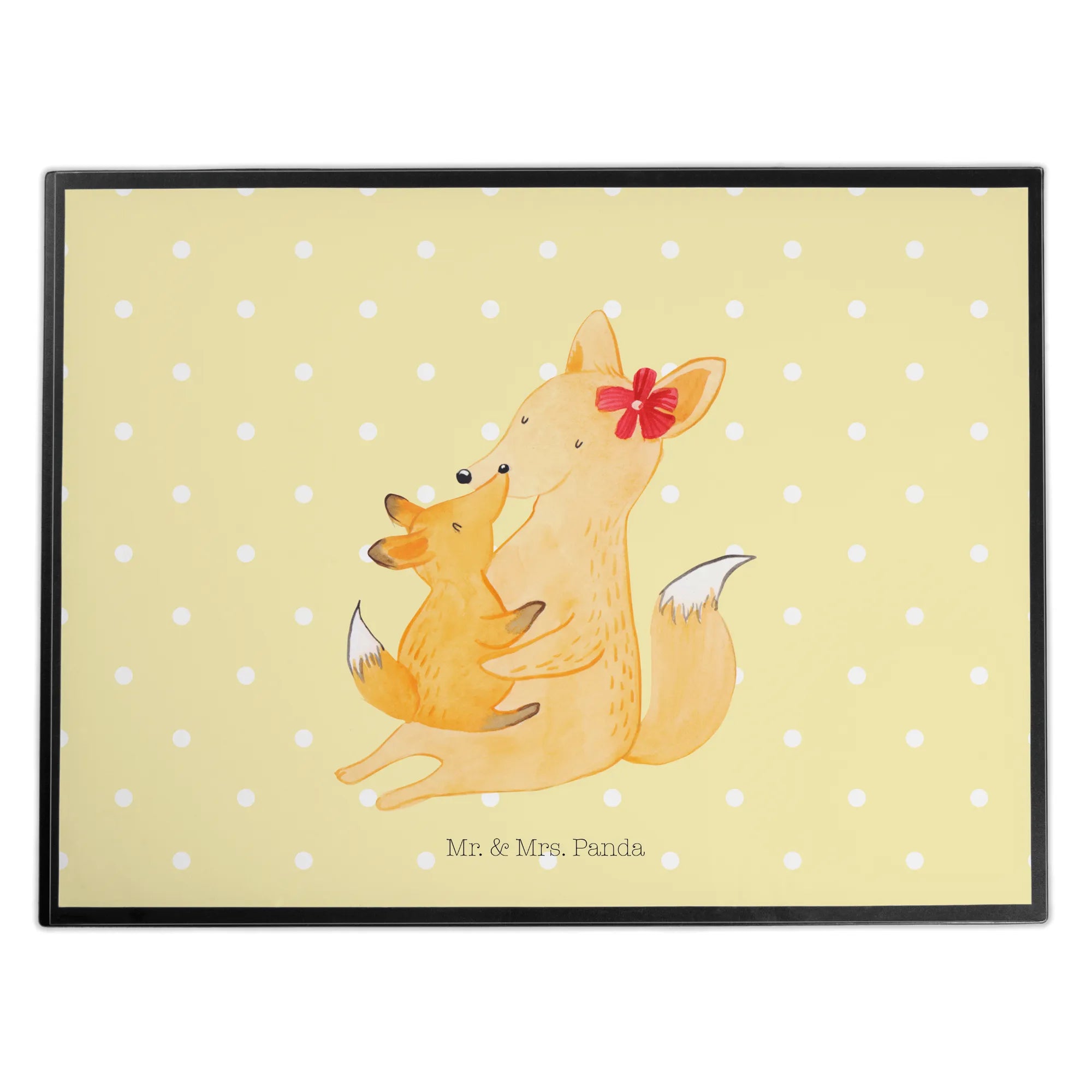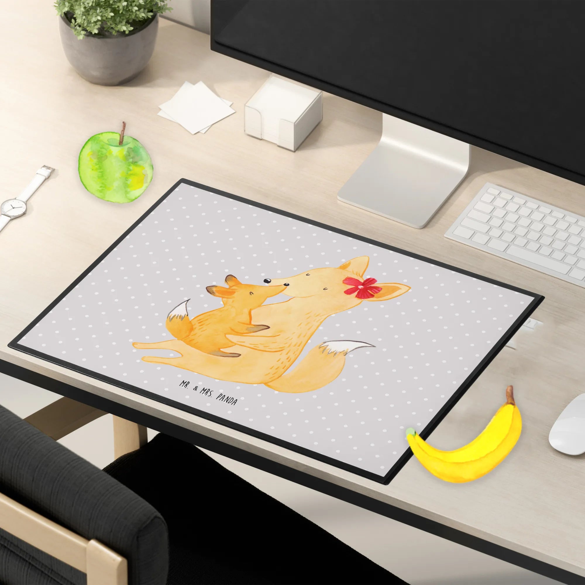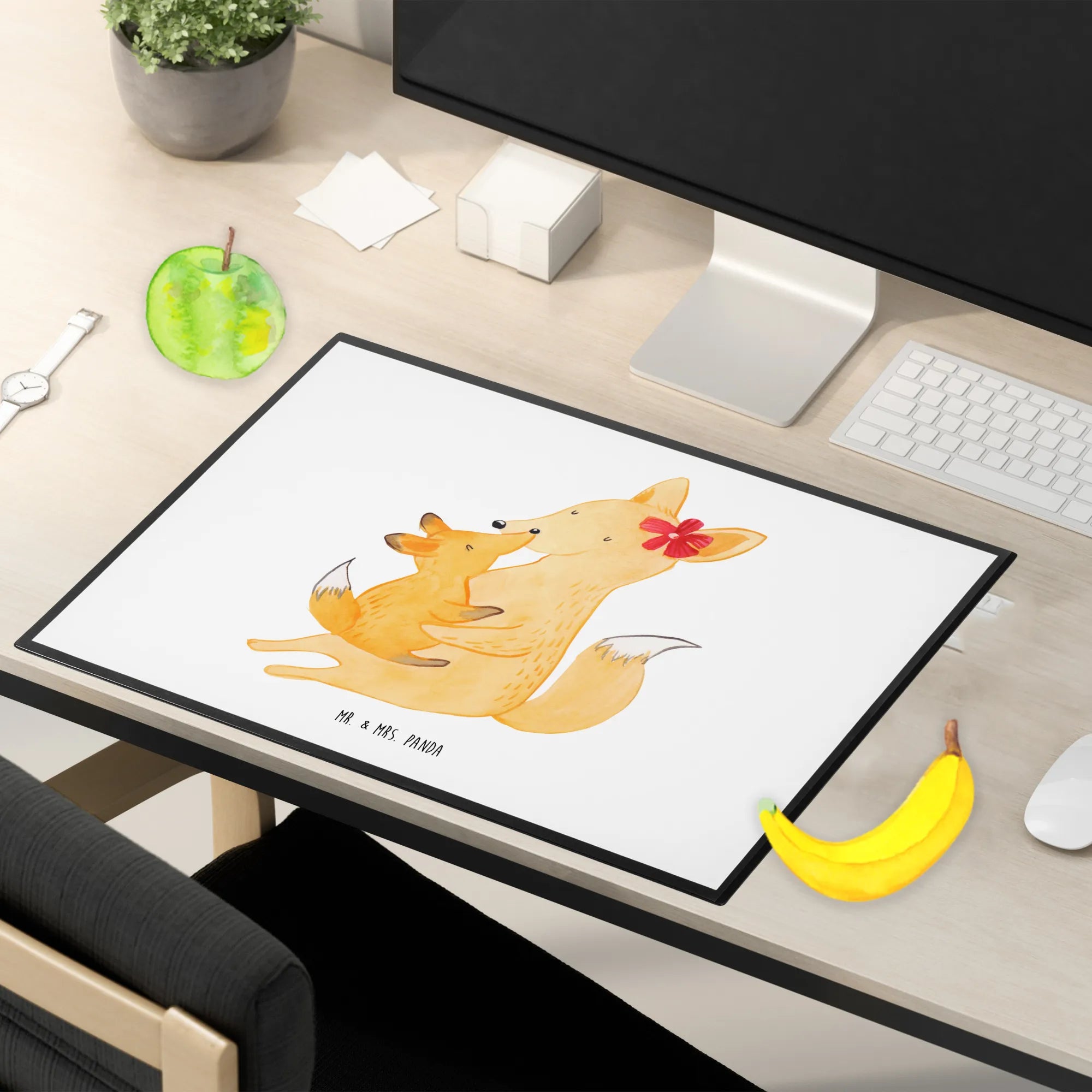 Fülle das Schreibtischleben Deiner Lieblingstochter mit Wärme und Farbe – mit der Schreibtischunterlage „Fuchs Mama & Kind“ von Mr. & Mrs. Panda.