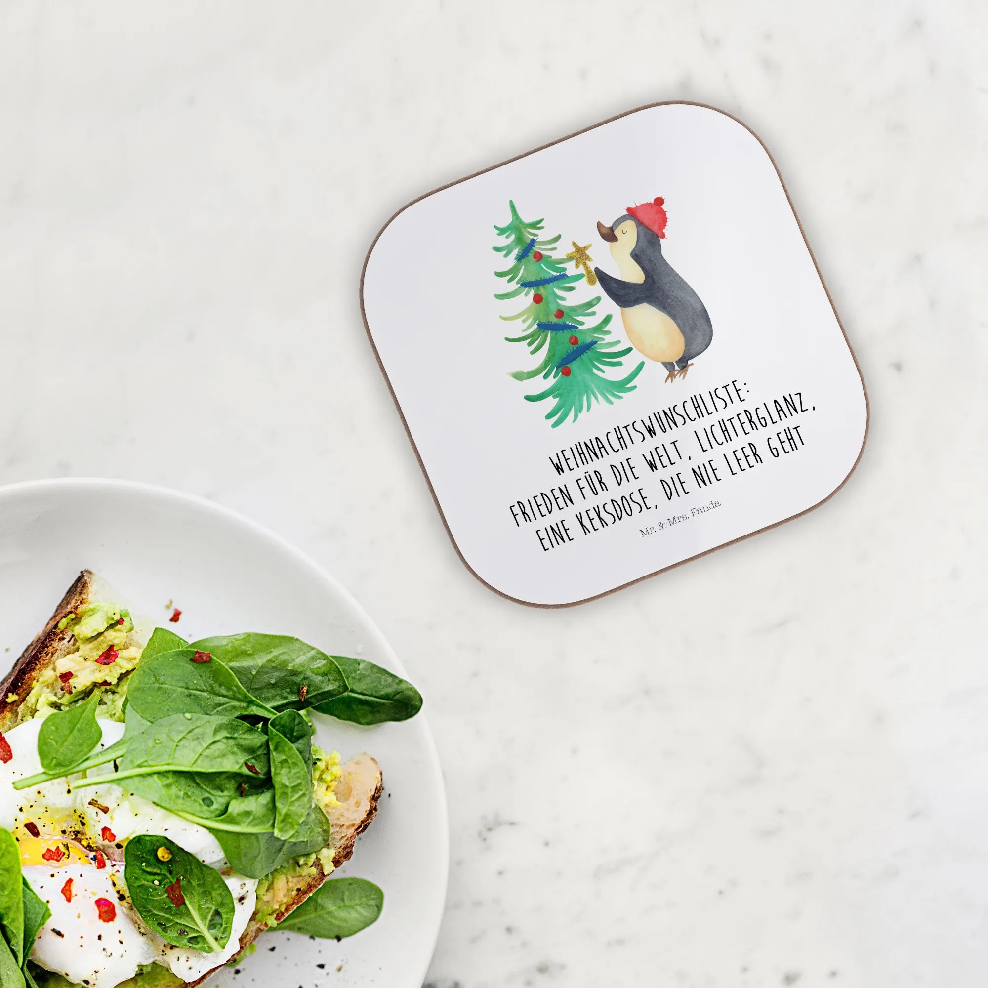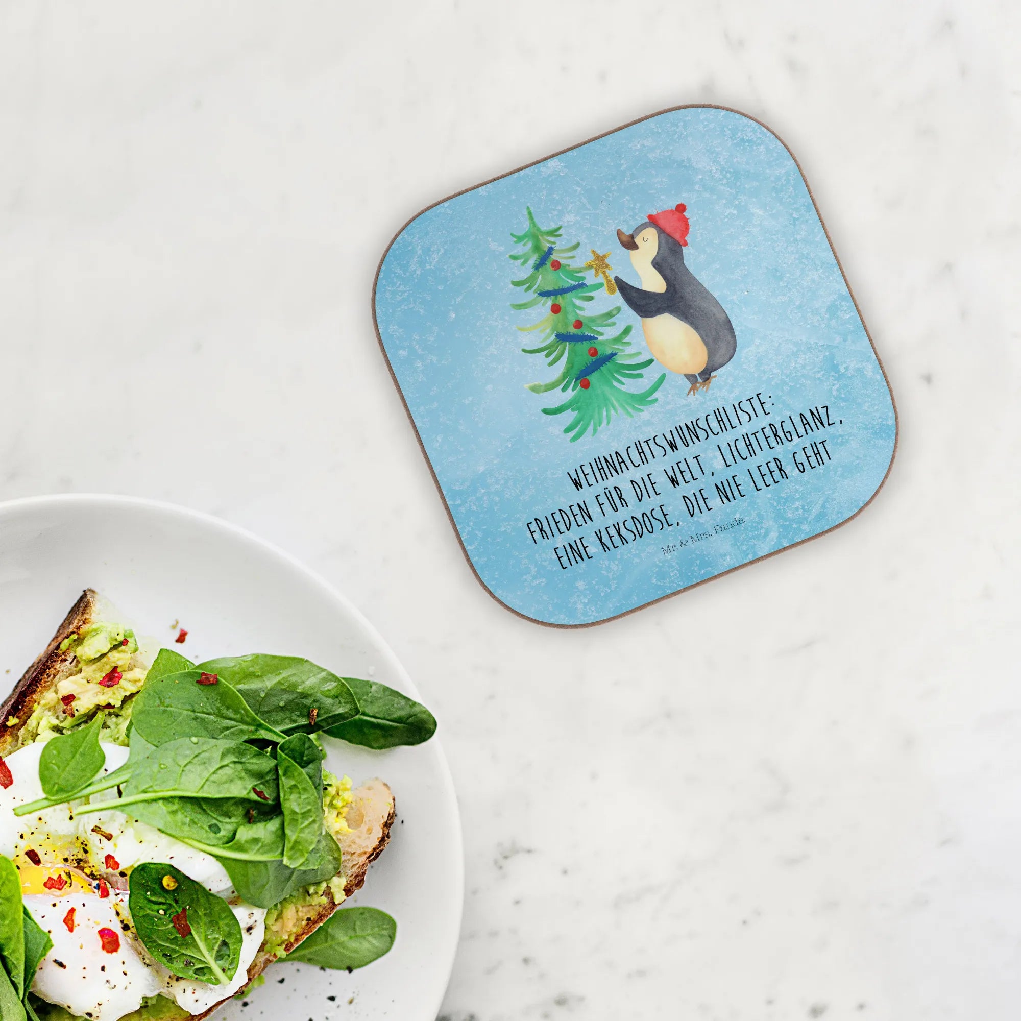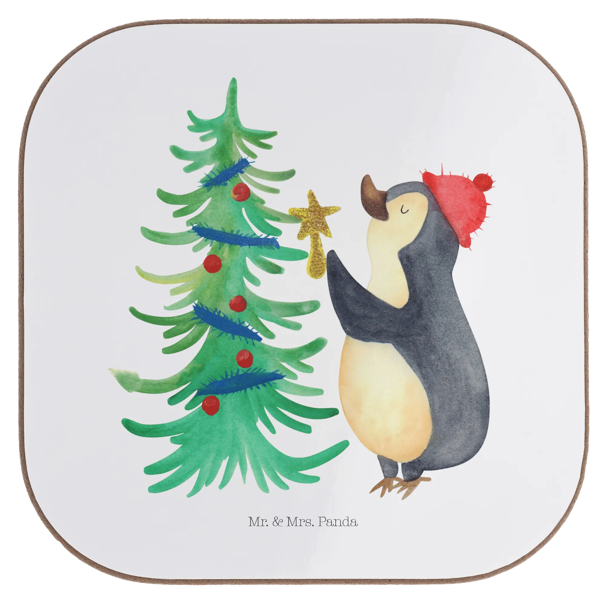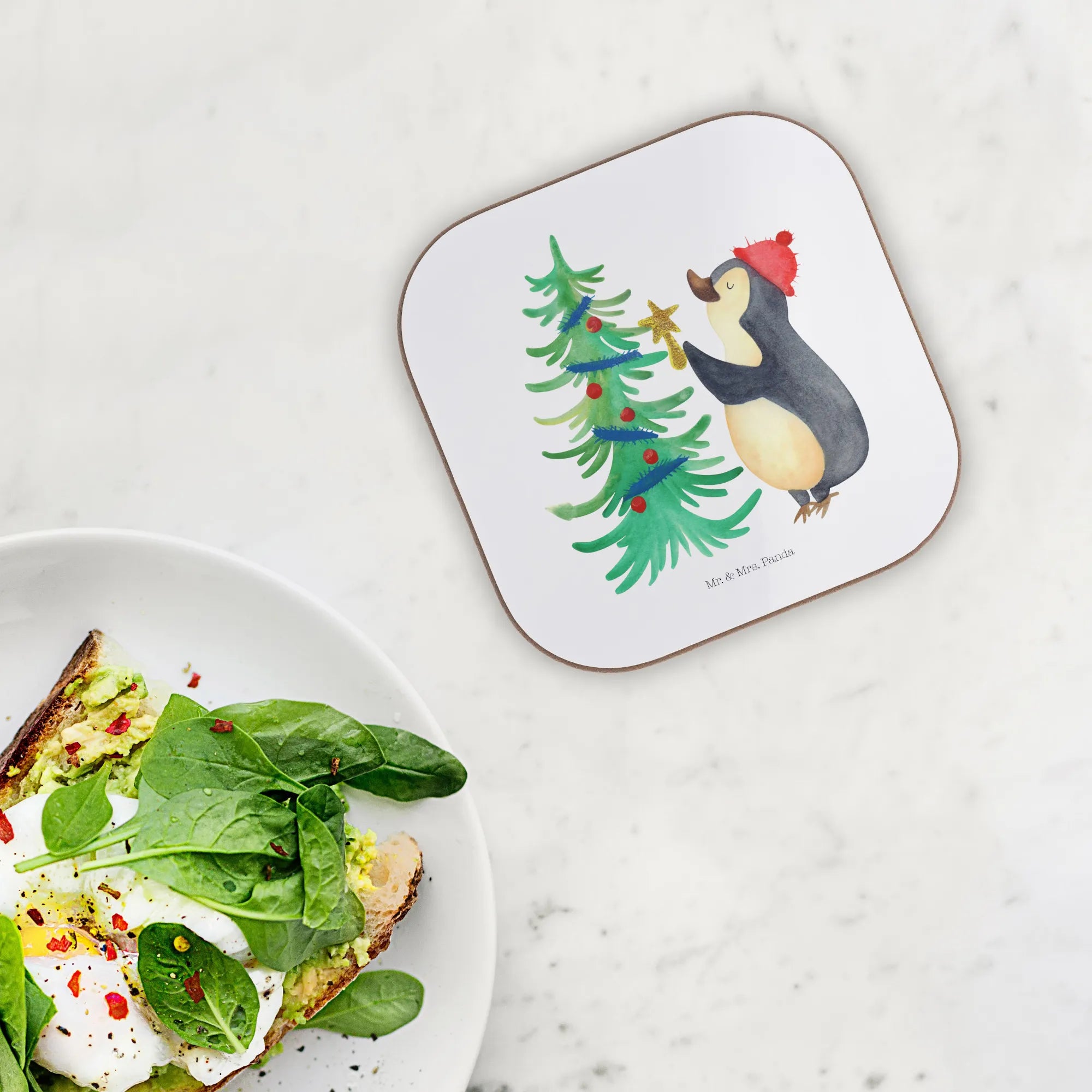 Podkładka Pingwin choinka - z napisem - biały