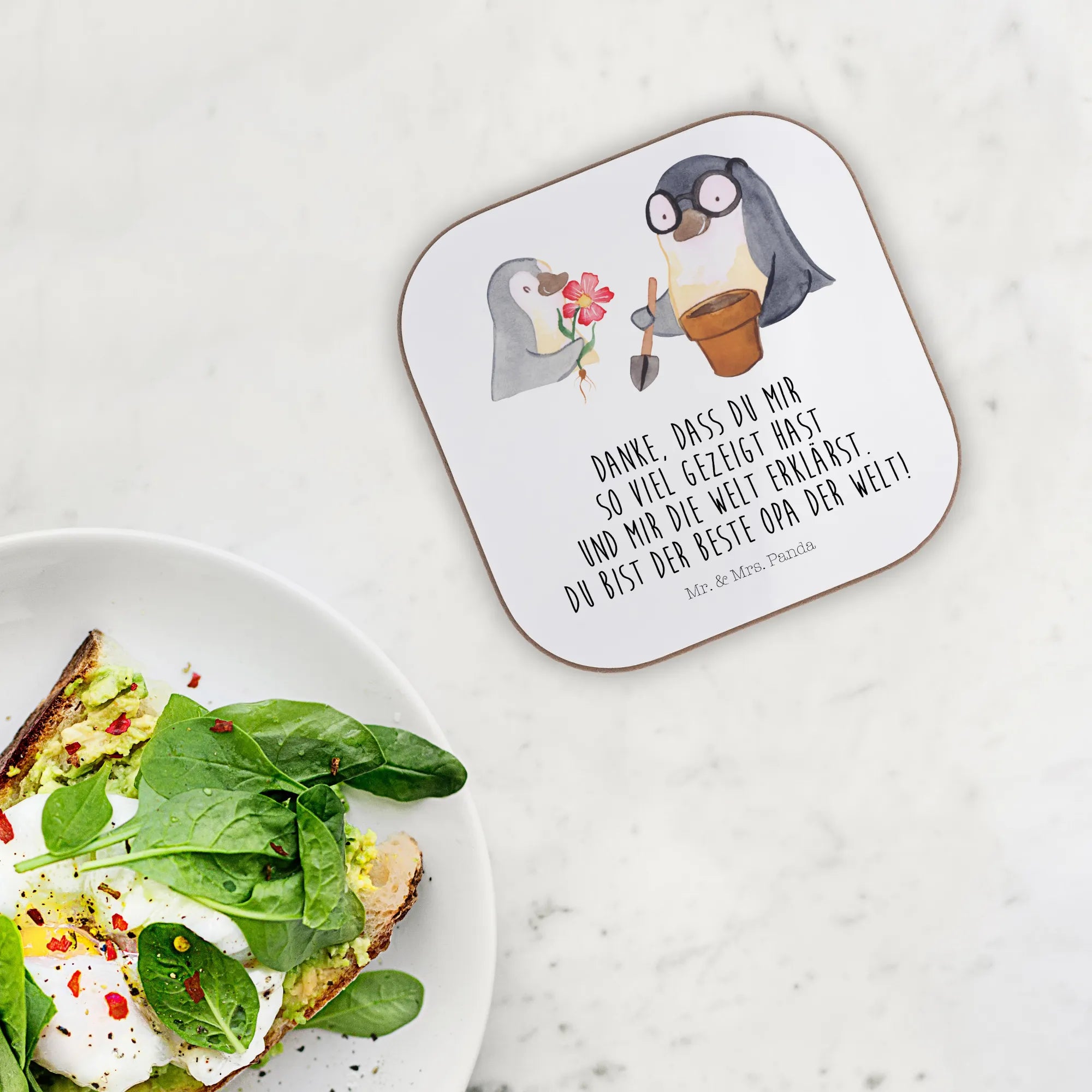 Podkładka Pingwin dziadek sadzi kwiaty - z napisem