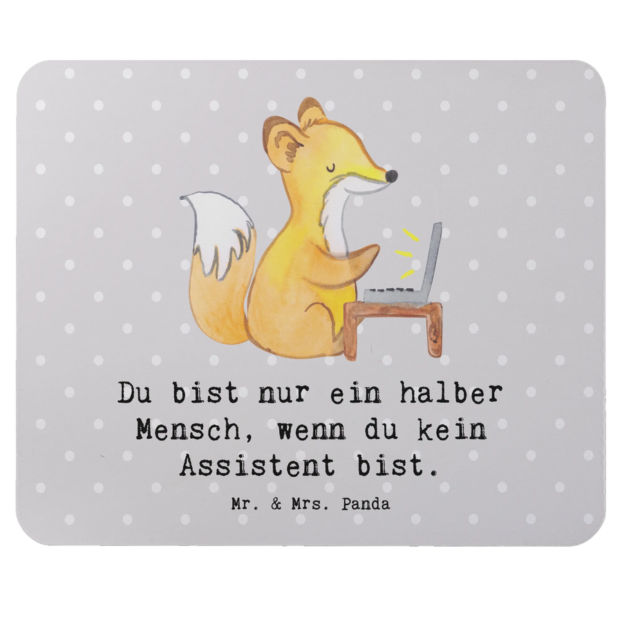 Das Mauspad "Assistent mit Herz" aus der kreativen Berufe Kollektion von Mr. & Mrs. Panda ist das perfekte Geschenk für alle, die im Büro tätig sind. Egal ob für den Jobstart, zur Beförderung, zum Jubiläum oder als nettes Dankeschön: Dieses Mauspad bringt Freude und Stil an jeden Arbeitsplatz. Mit einem süßen Motiv eines Fuchses, der an einer Schreibmaschine arbeitet, und dem herzerwärmenden Slogan "Du bist nur ein halber Mensch, wenn du kein Assistent bist", zaubert es jedem ein Lächeln ins Gesicht.