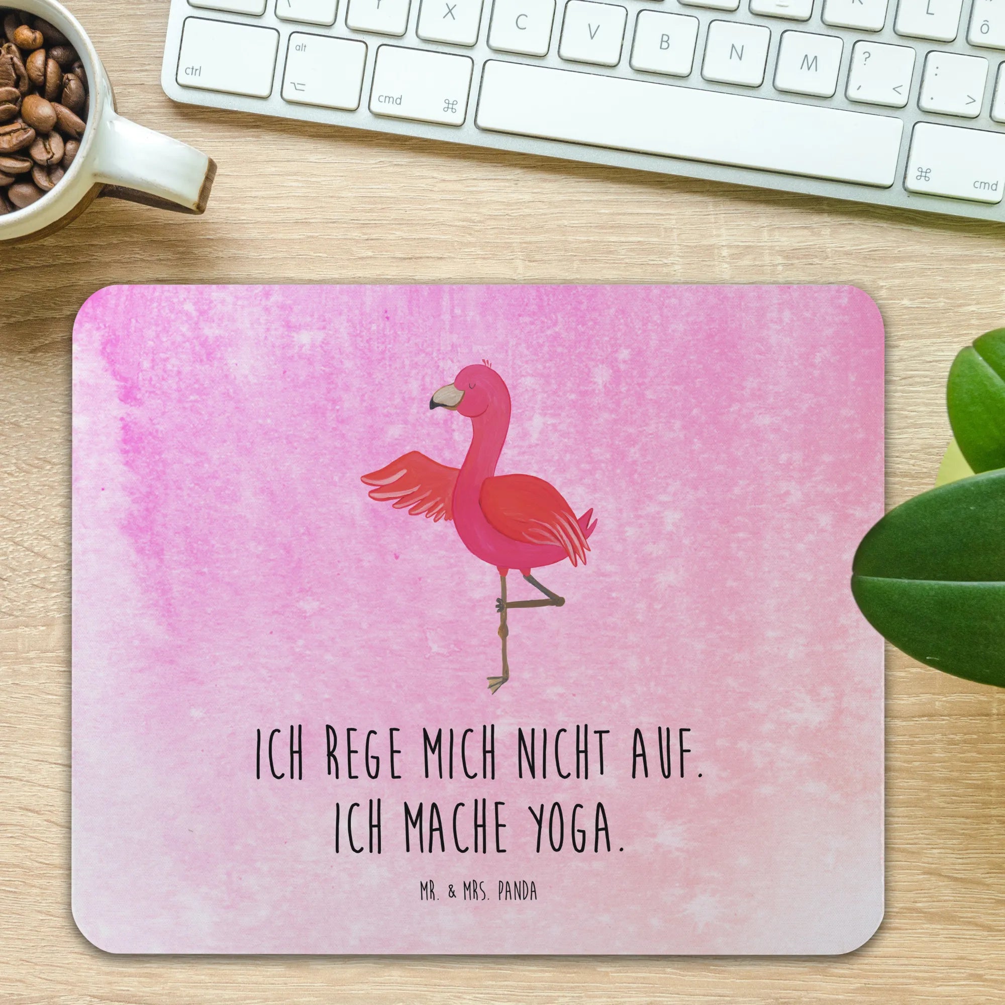 Podkładka pod mysz Flamingo joga - z napisem - Akwarelowy róż