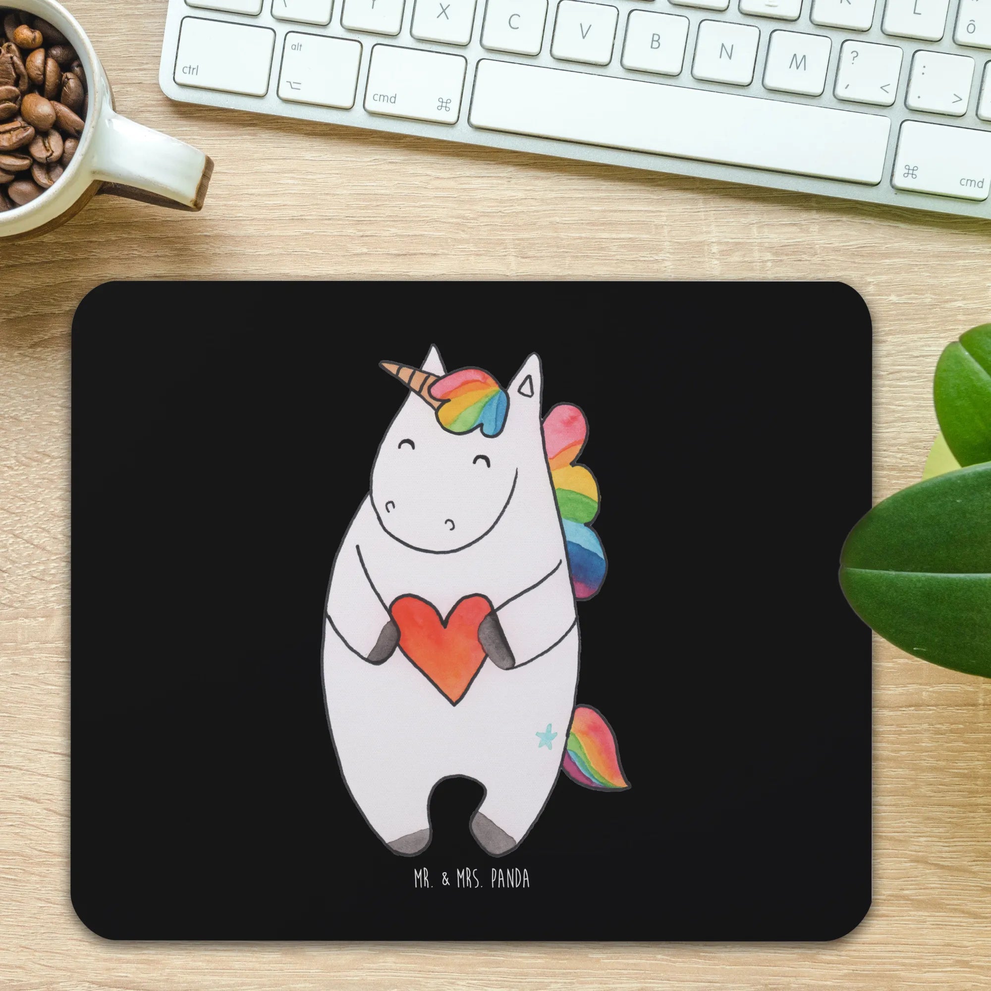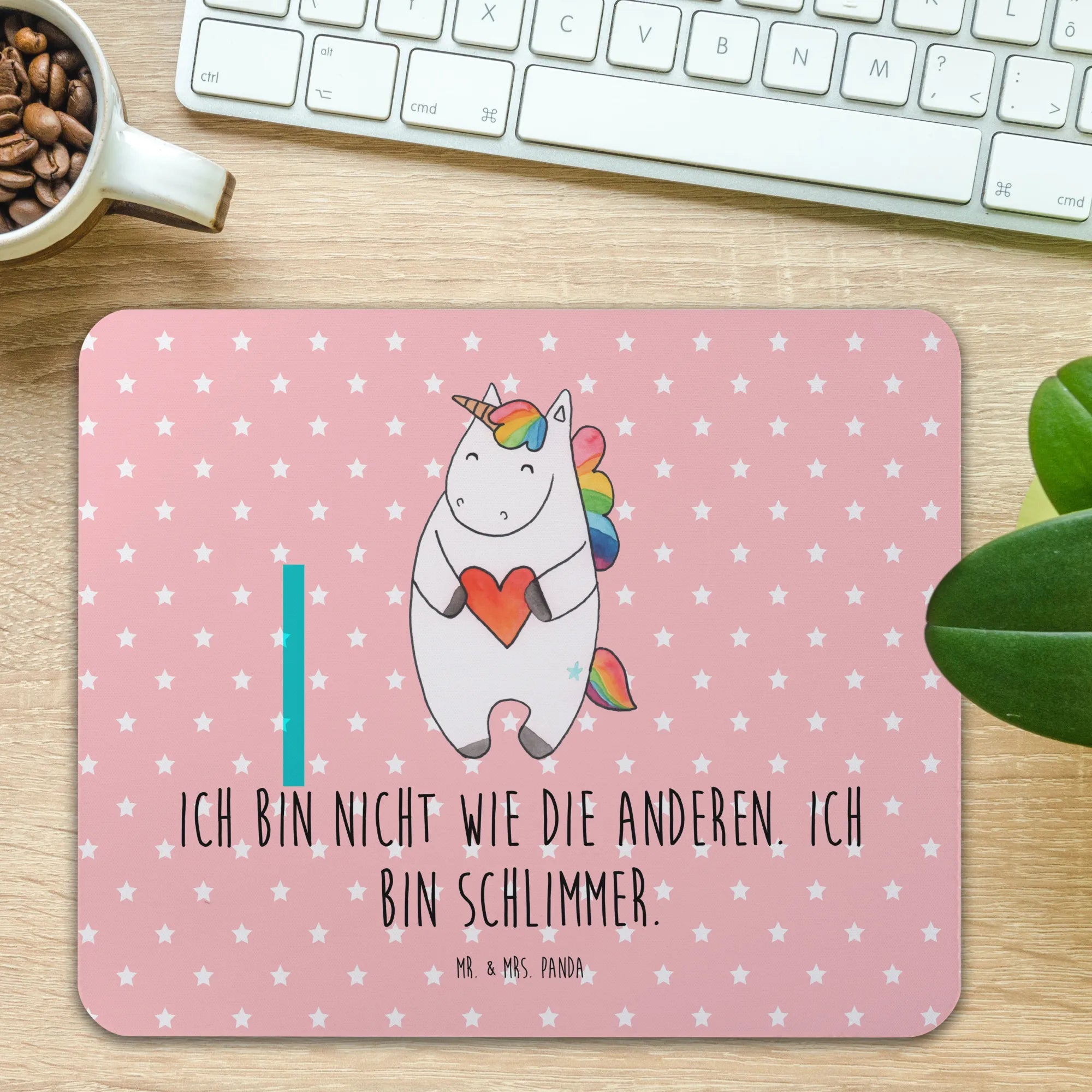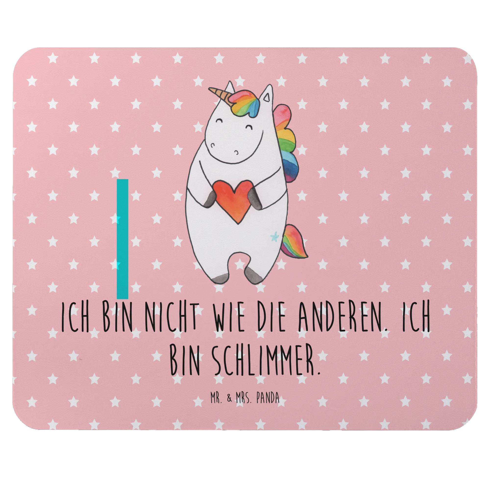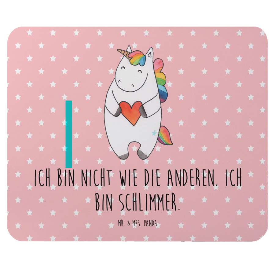 Podkładka pod mysz Jednorożec serce - z napisem - Pastelowy czerwony