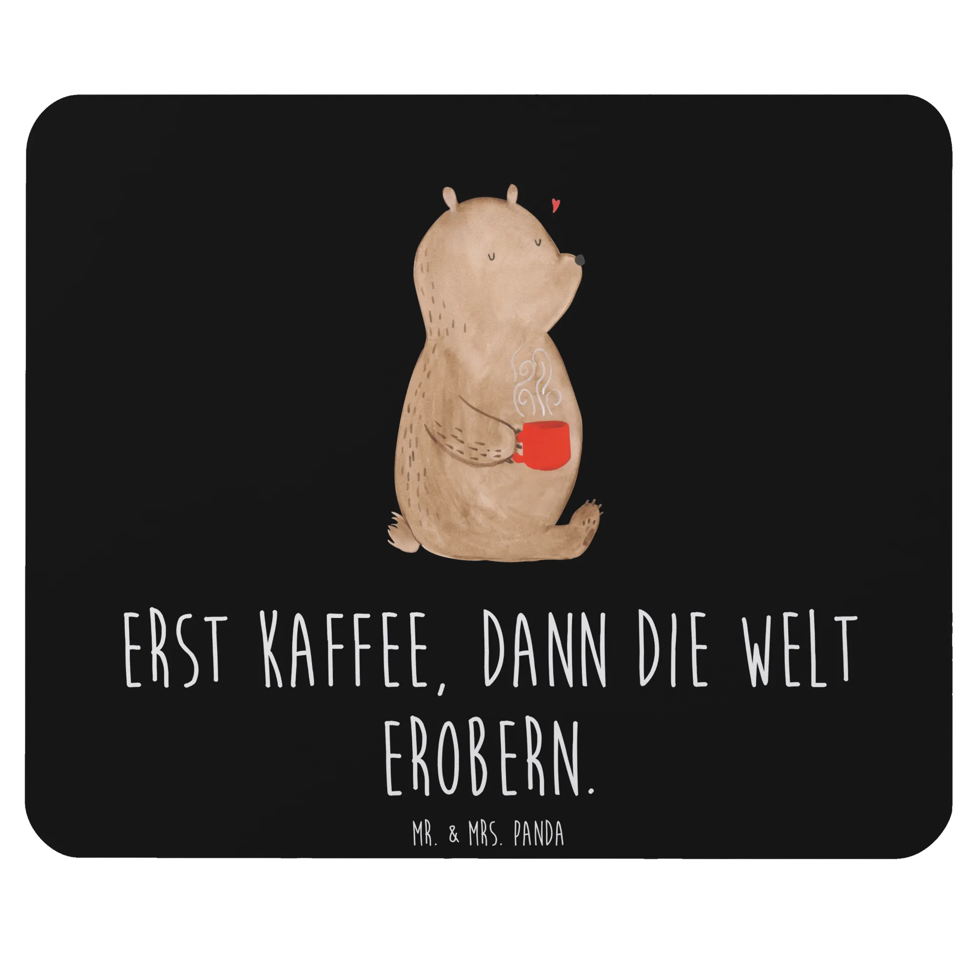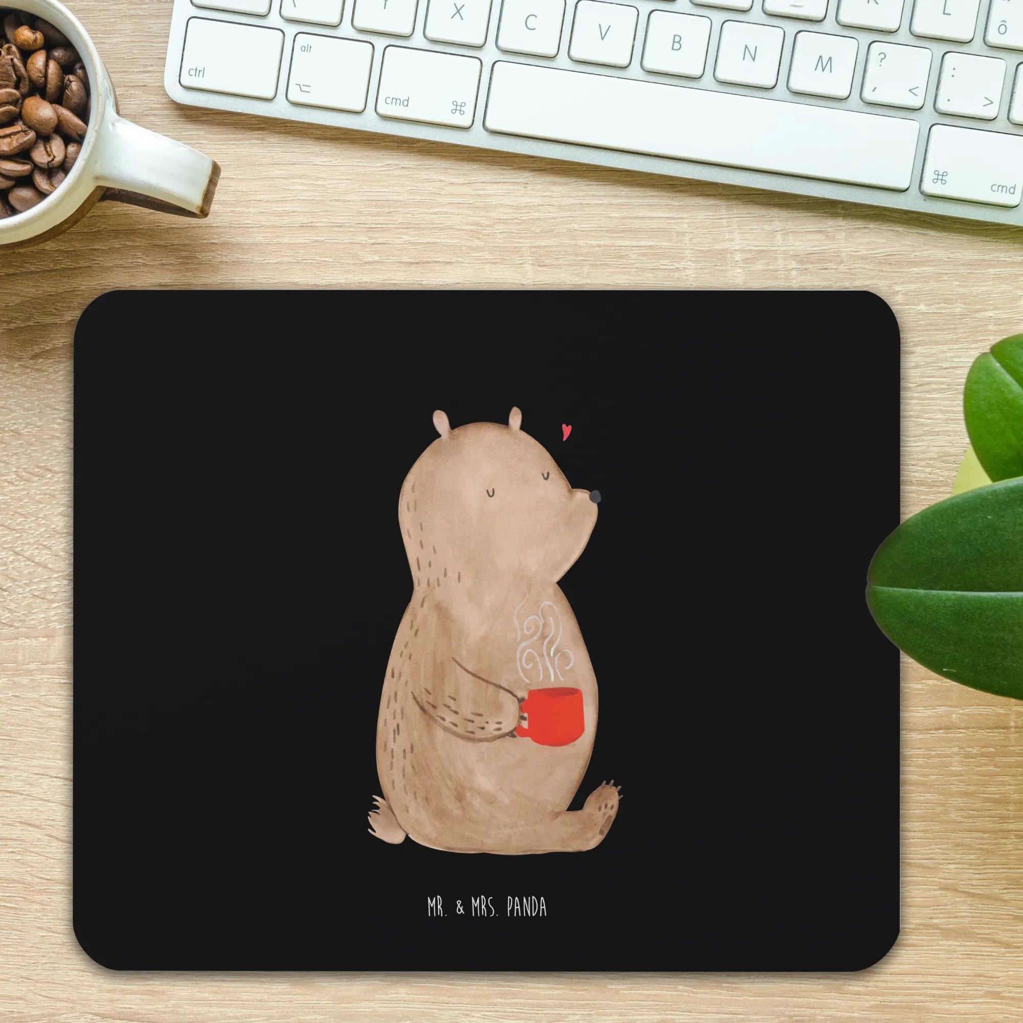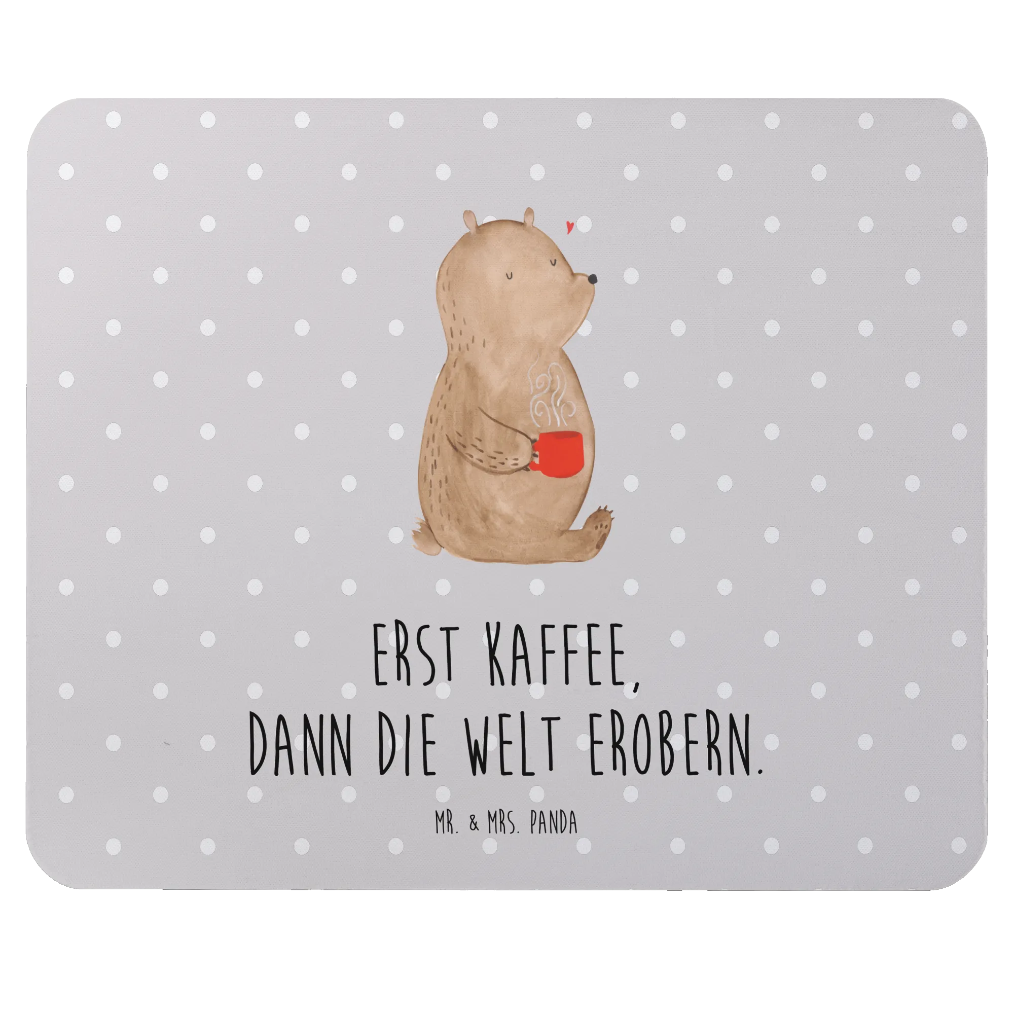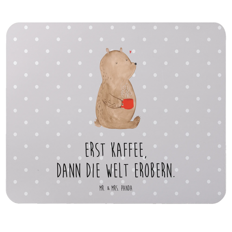 Podkładka pod mysz Niedźwiedź kawa - z napisem - Pastelowy szary