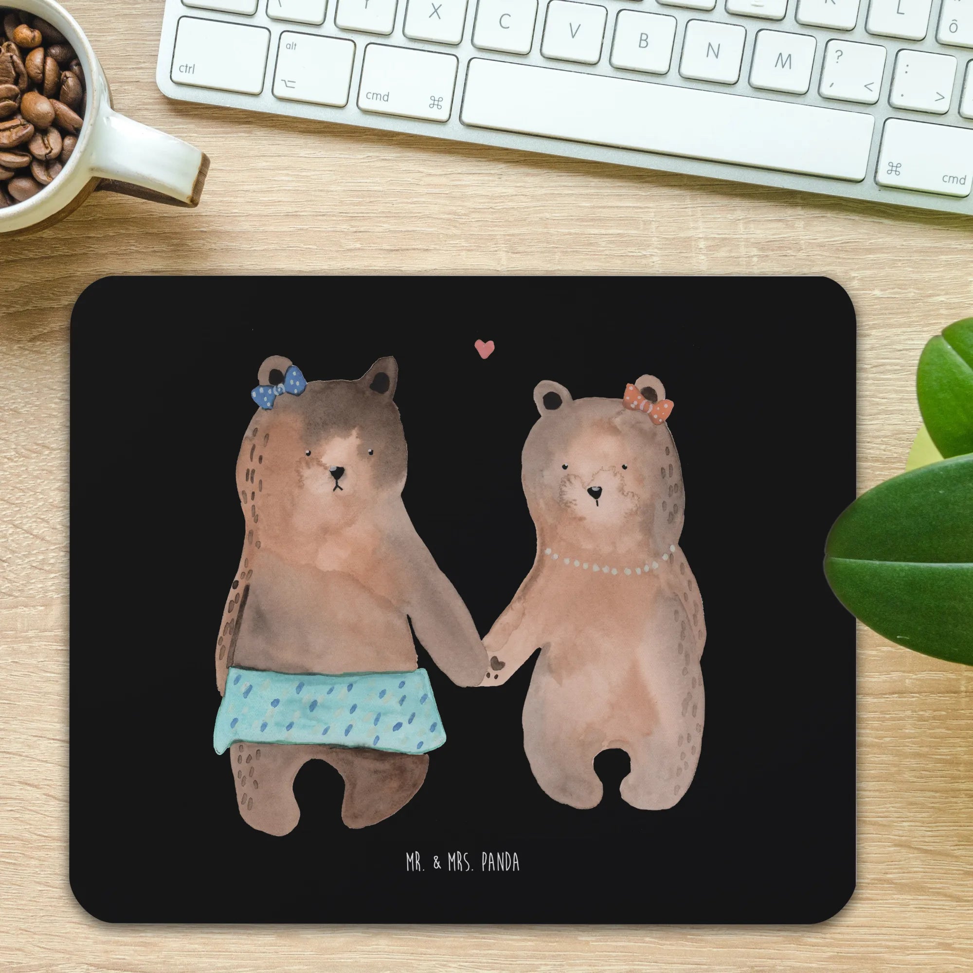 Podkładka pod mysz Niedźwiedź przyjaciółka - z napisem - Czarny