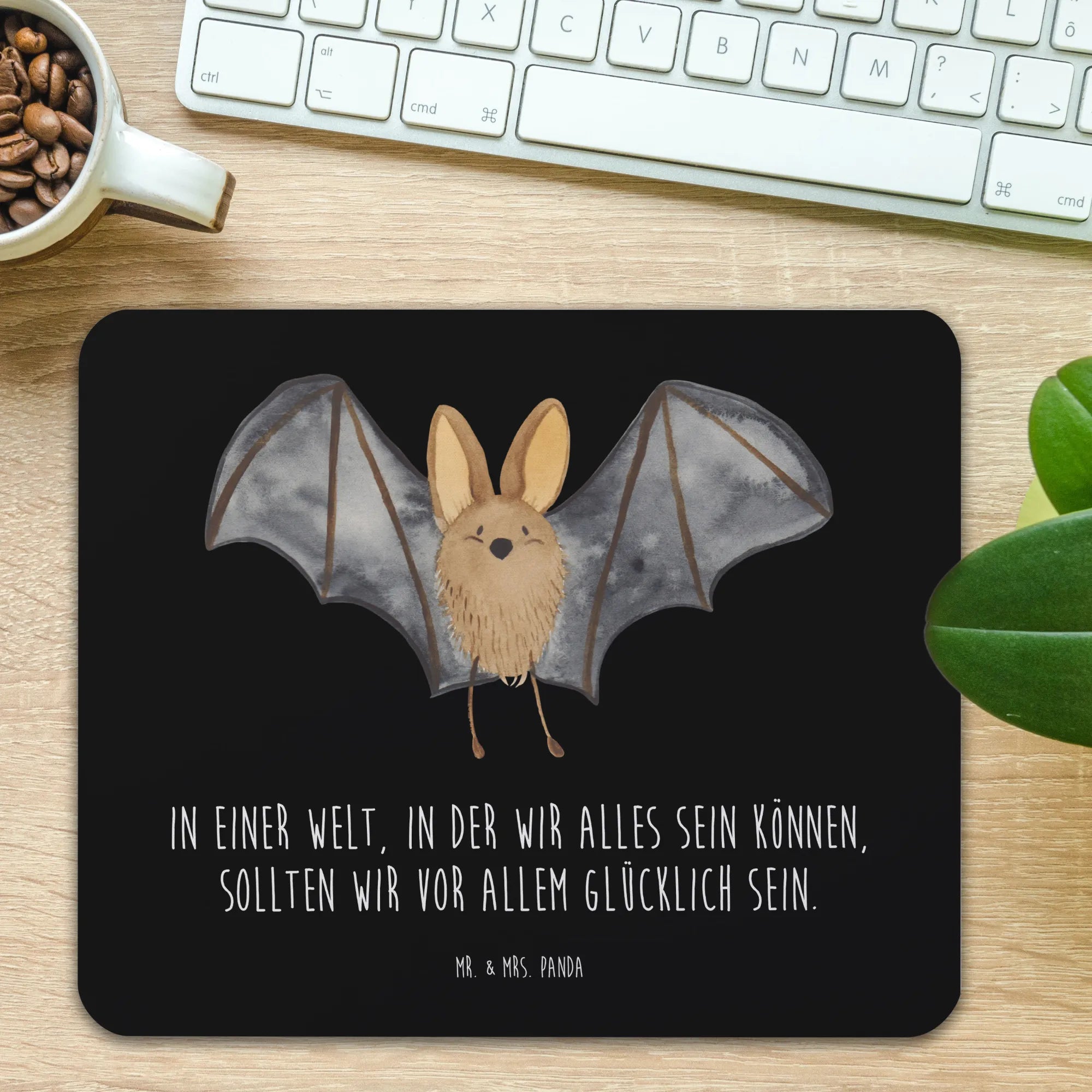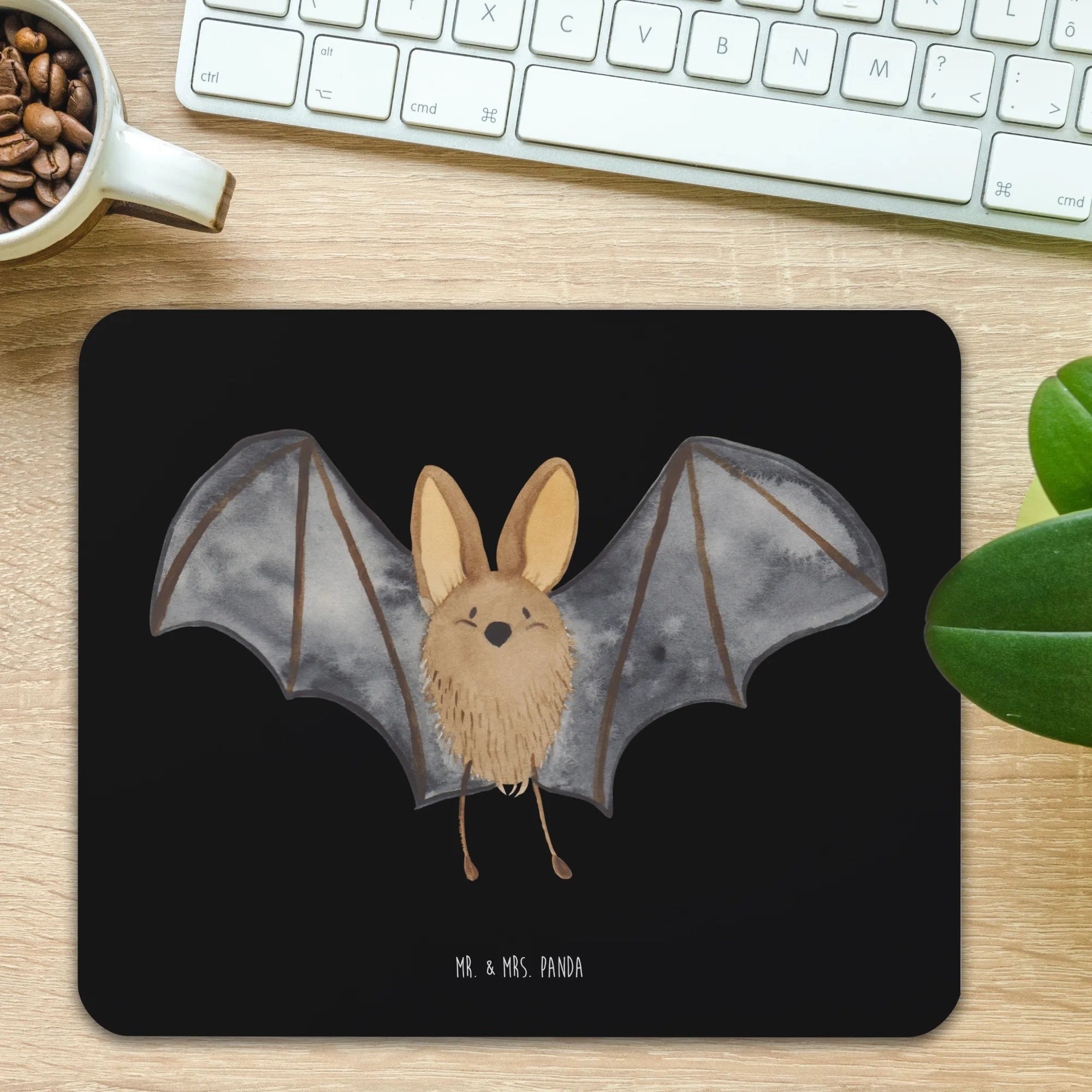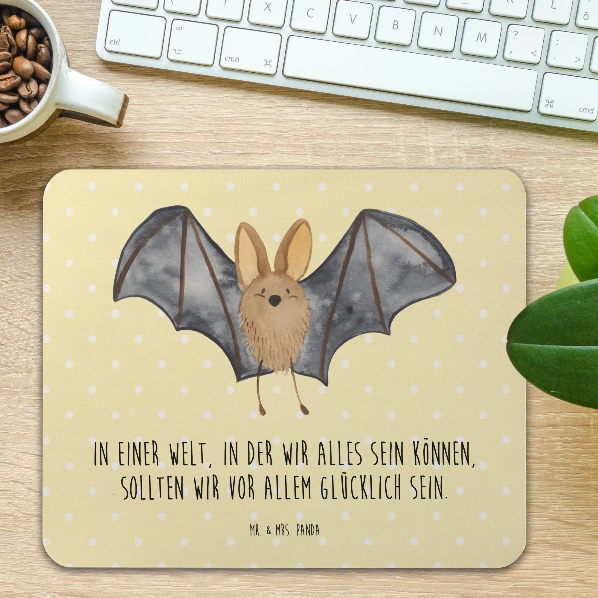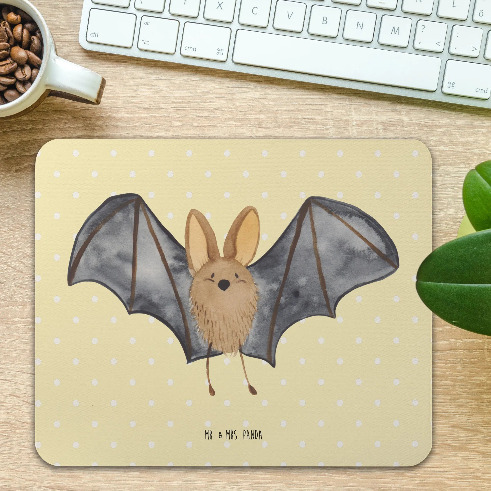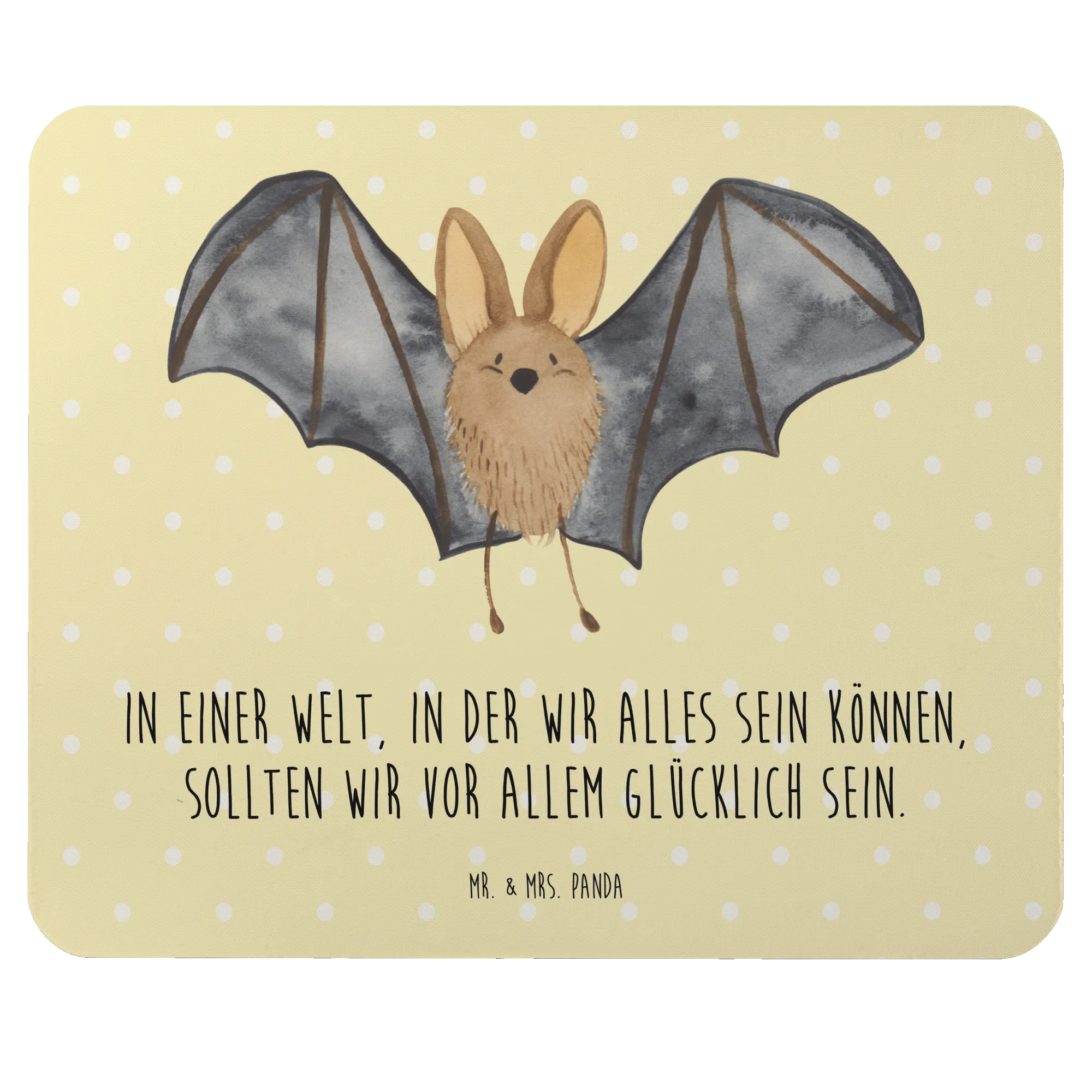 Podkładka pod mysz nietoperz skrzydło - z napisem - Pastelowy żółty