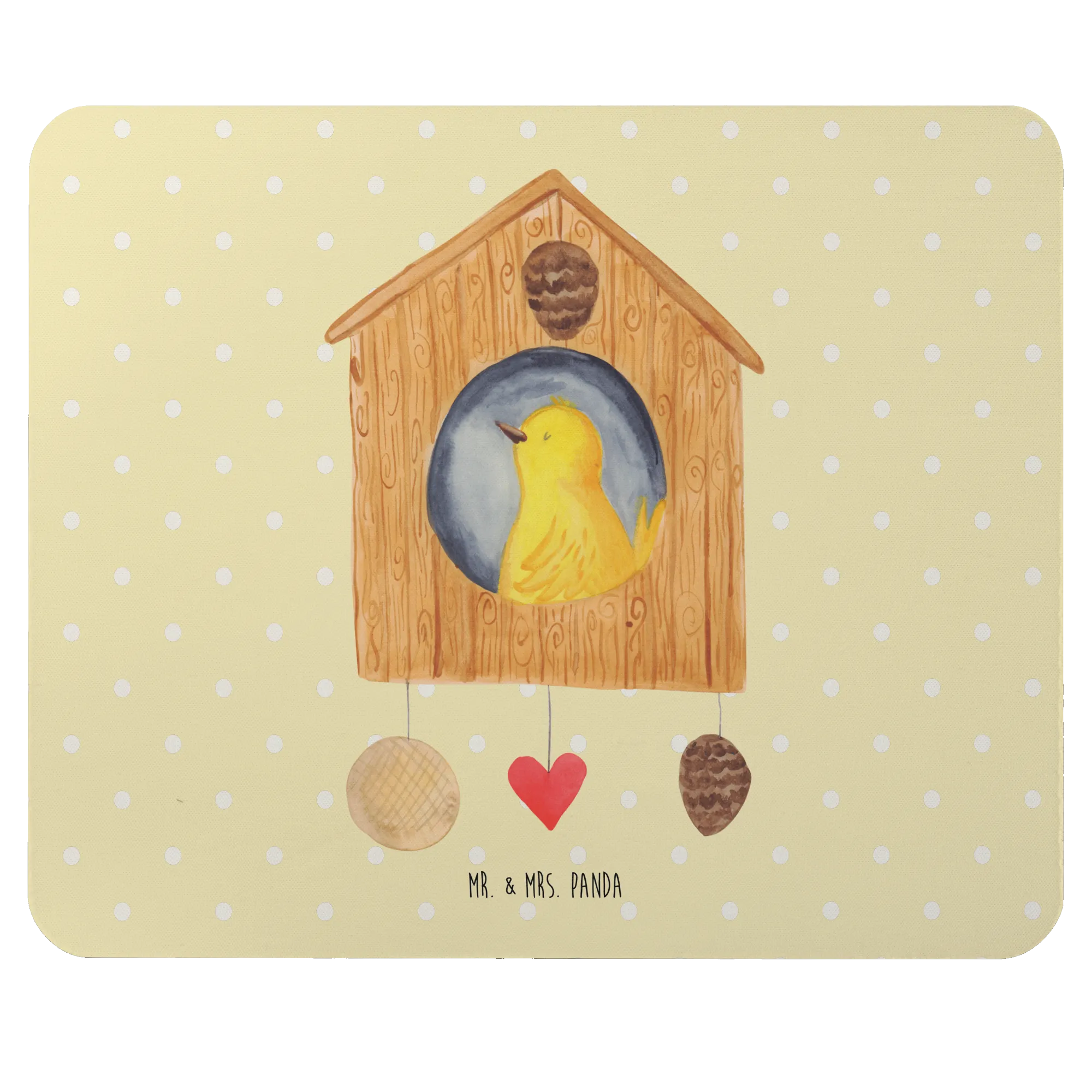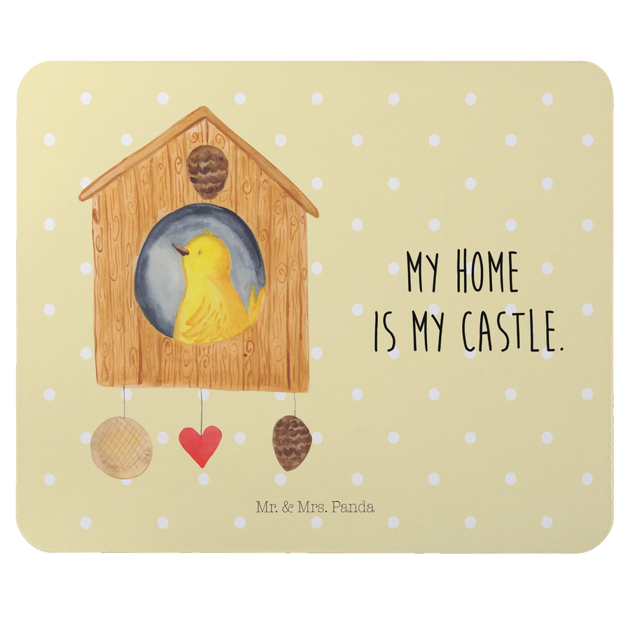 Podkładka pod mysz ptak Dom - z napisem - Pastelowy żółty