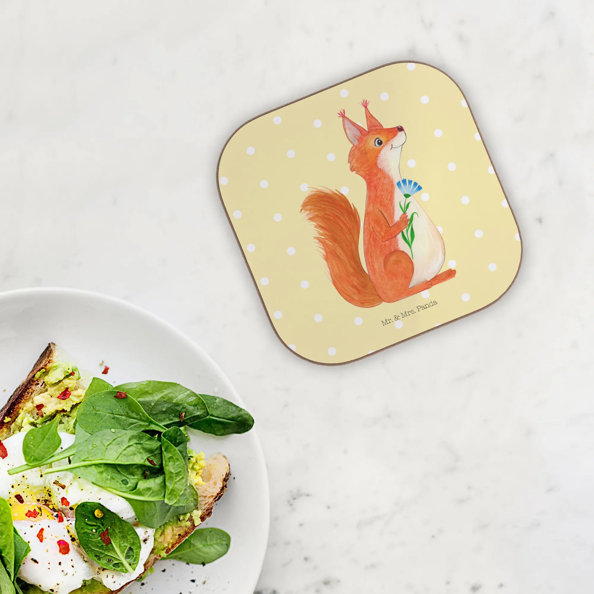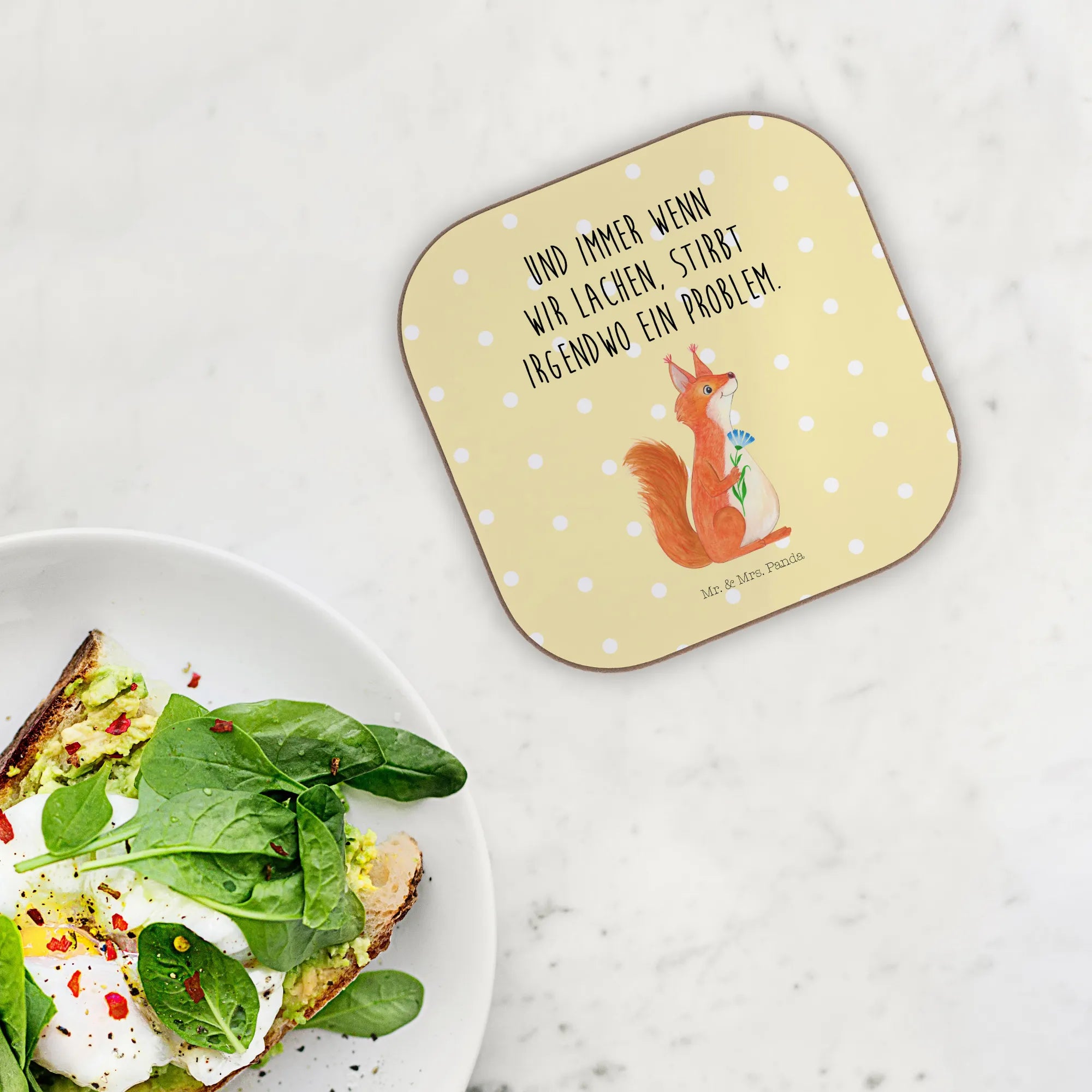 Podkładka wiewiórka kwiat - z napisem - Żółty Pastel