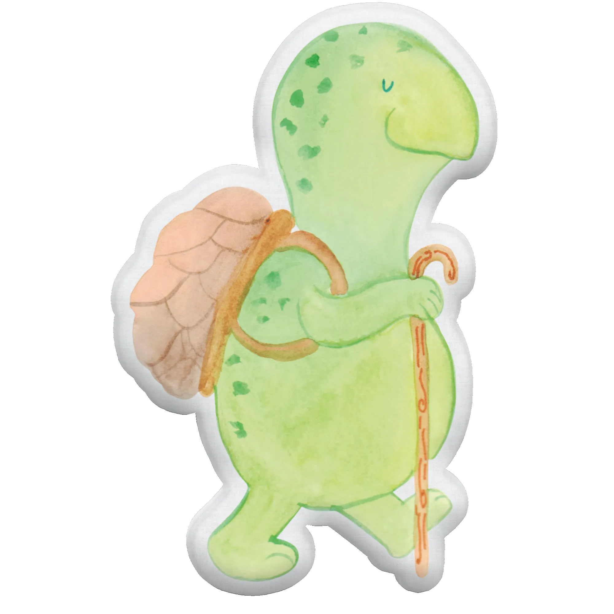 Die süße Schildkröte mit ihrem kleinen Rucksack und Gehstock strahlt Lebensfreude aus und inspiriert dazu, mutig in neue Abenteuer aufzubrechen! Jeder Moment des Kuschelns mit diesem Kissen macht dein Zuhause gemütlicher und verleiht jedem Raum einen Hauch von Gemütlichkeit.