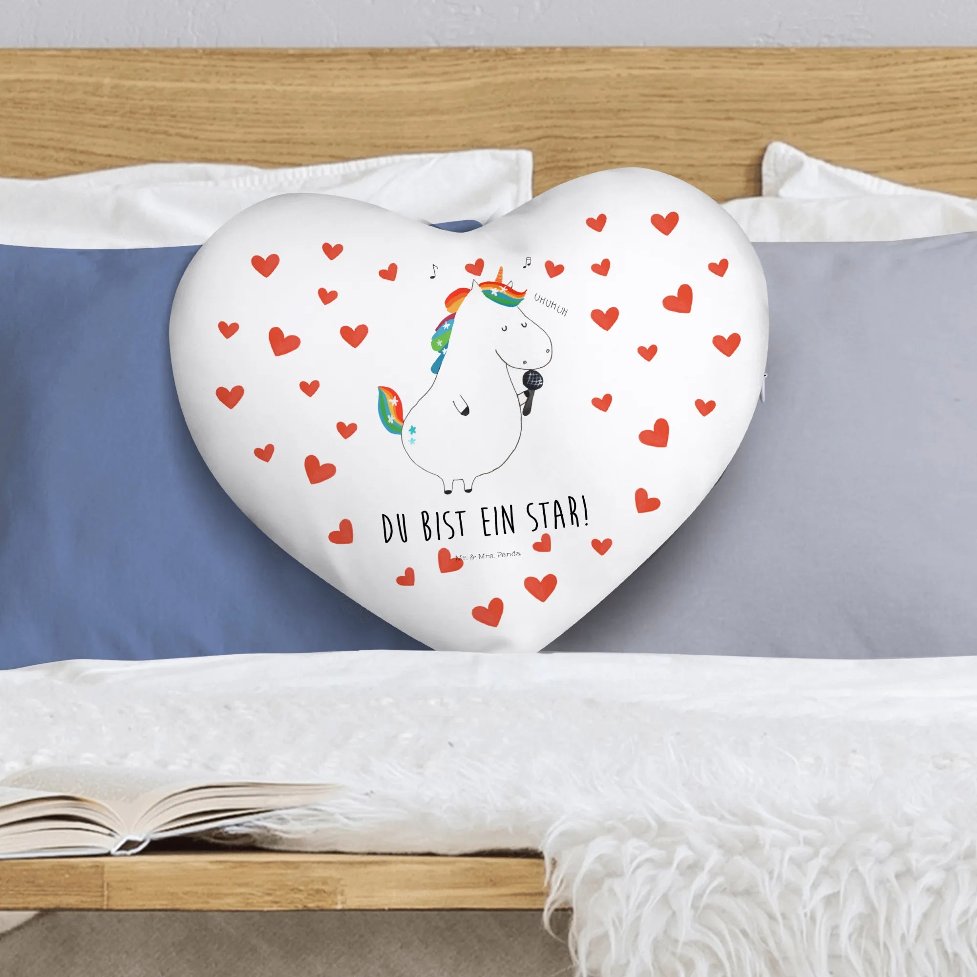 Poduszka w kształcie serca jednorożec Śpiewak - z napisem