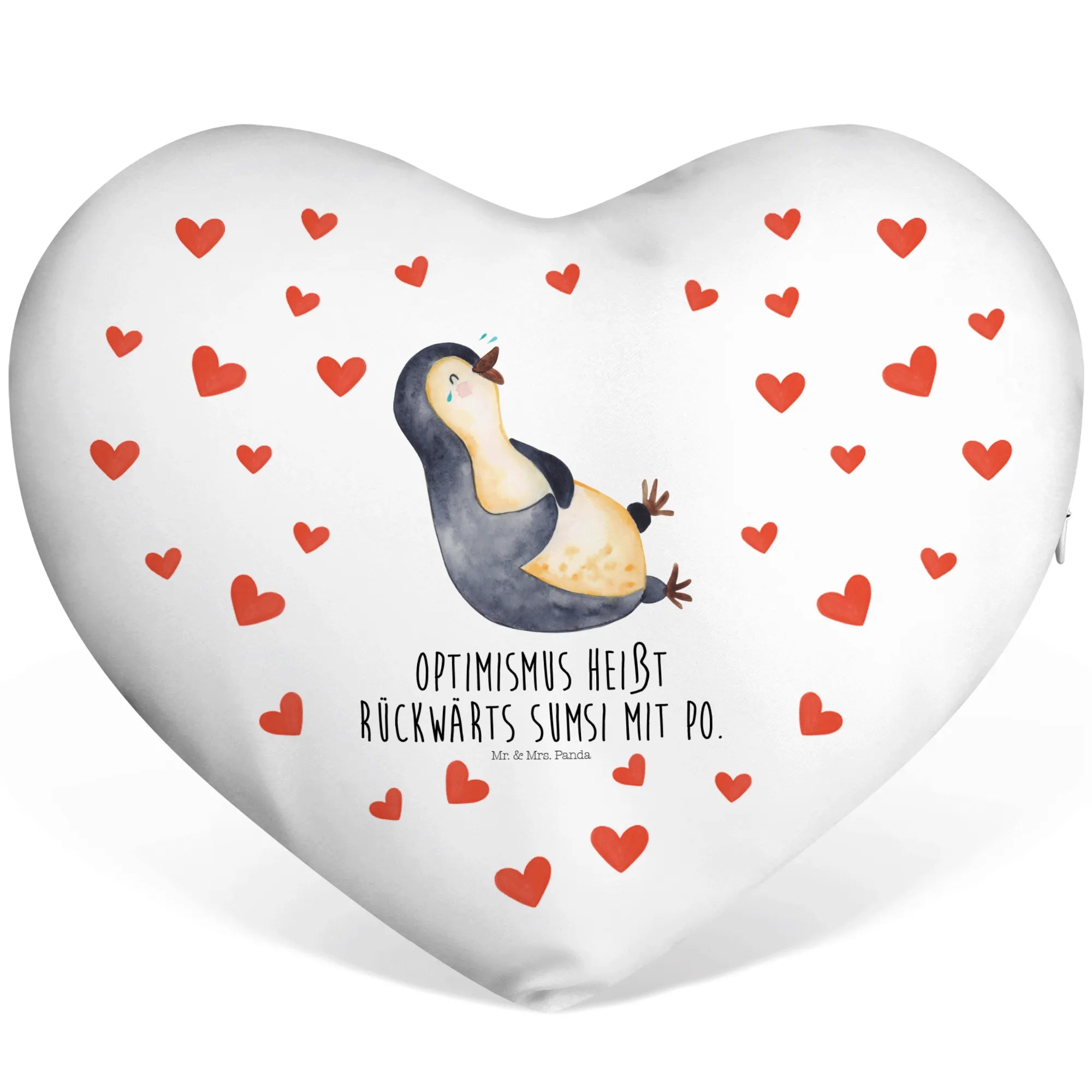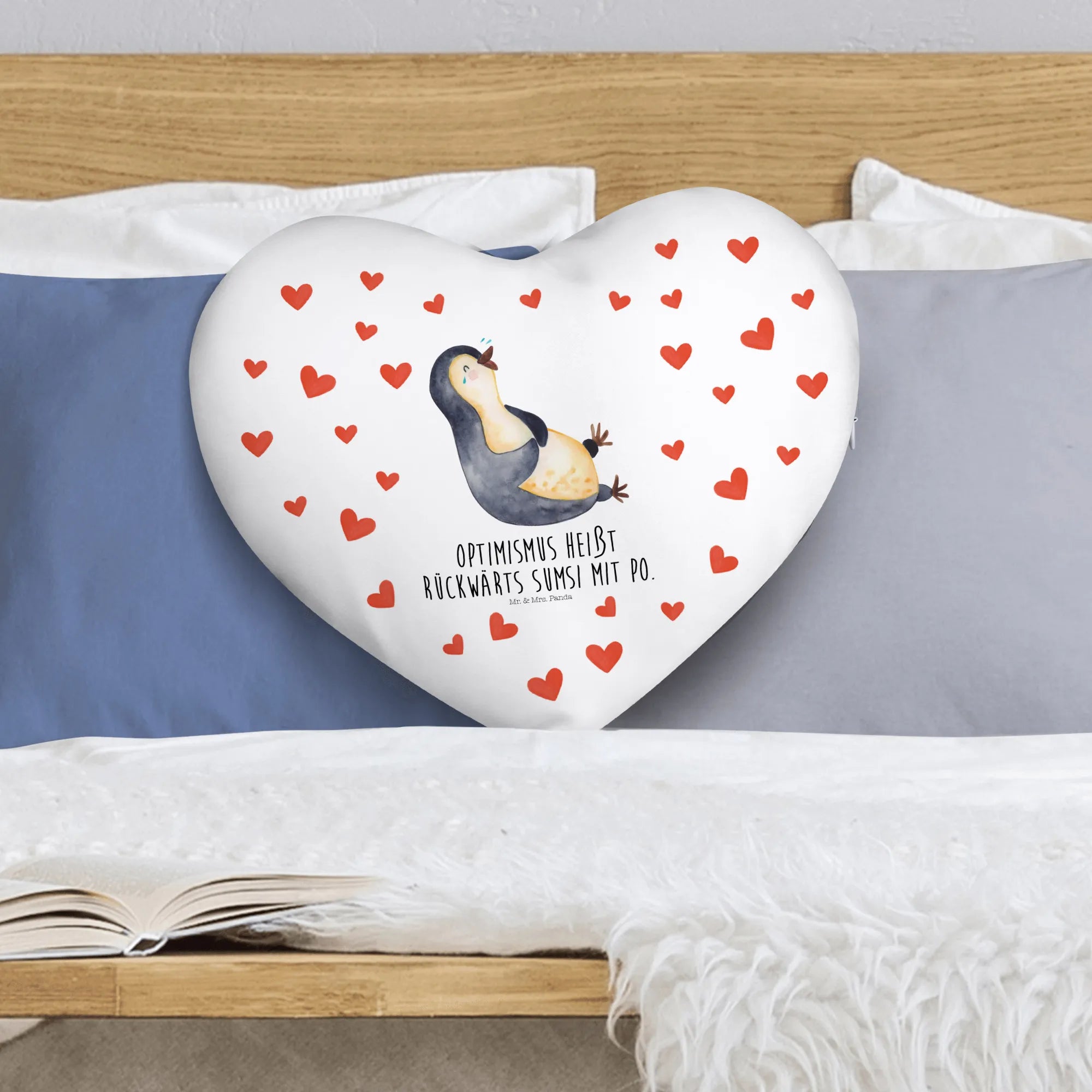 Poduszka w kształcie serca pingwin Śmiech - z napisem