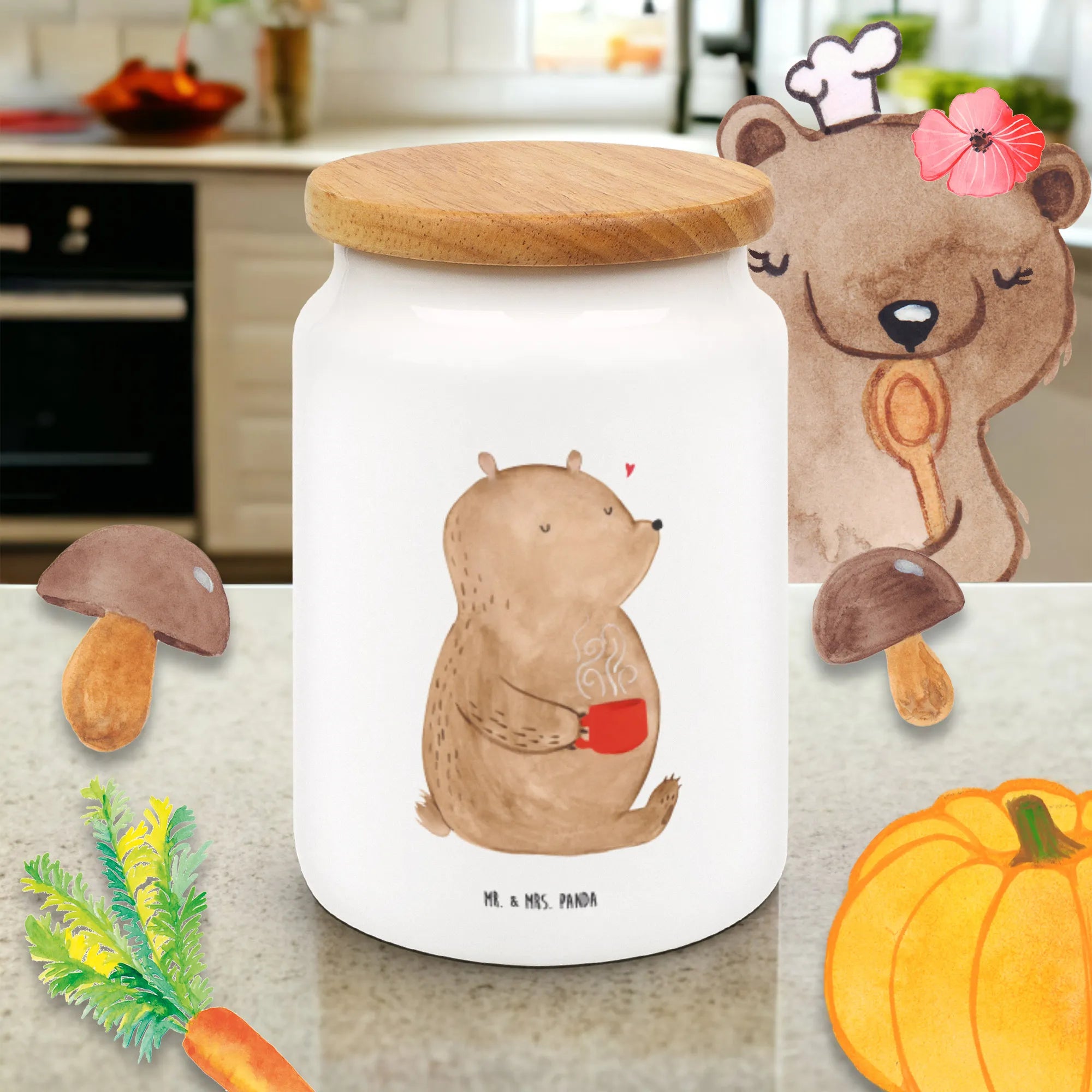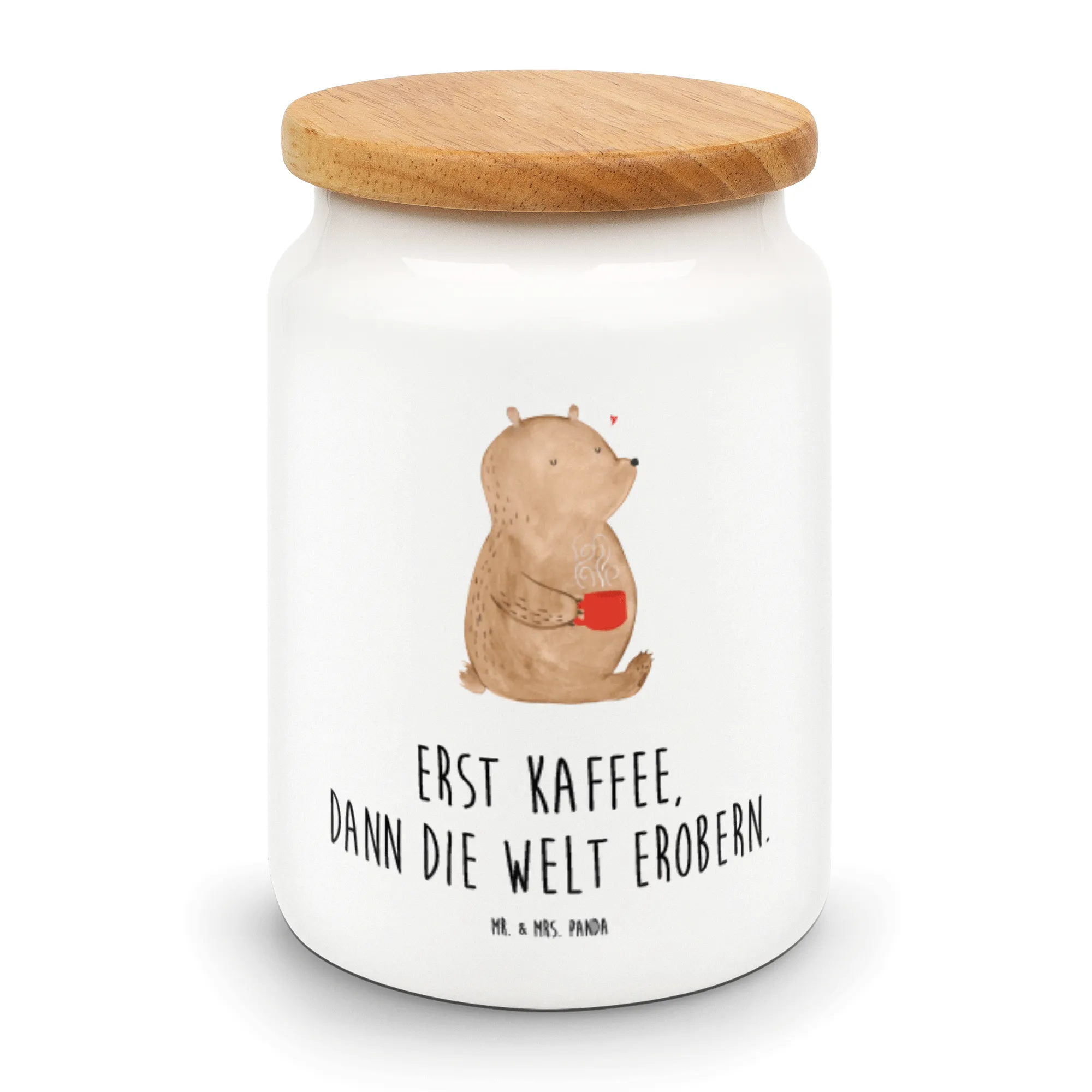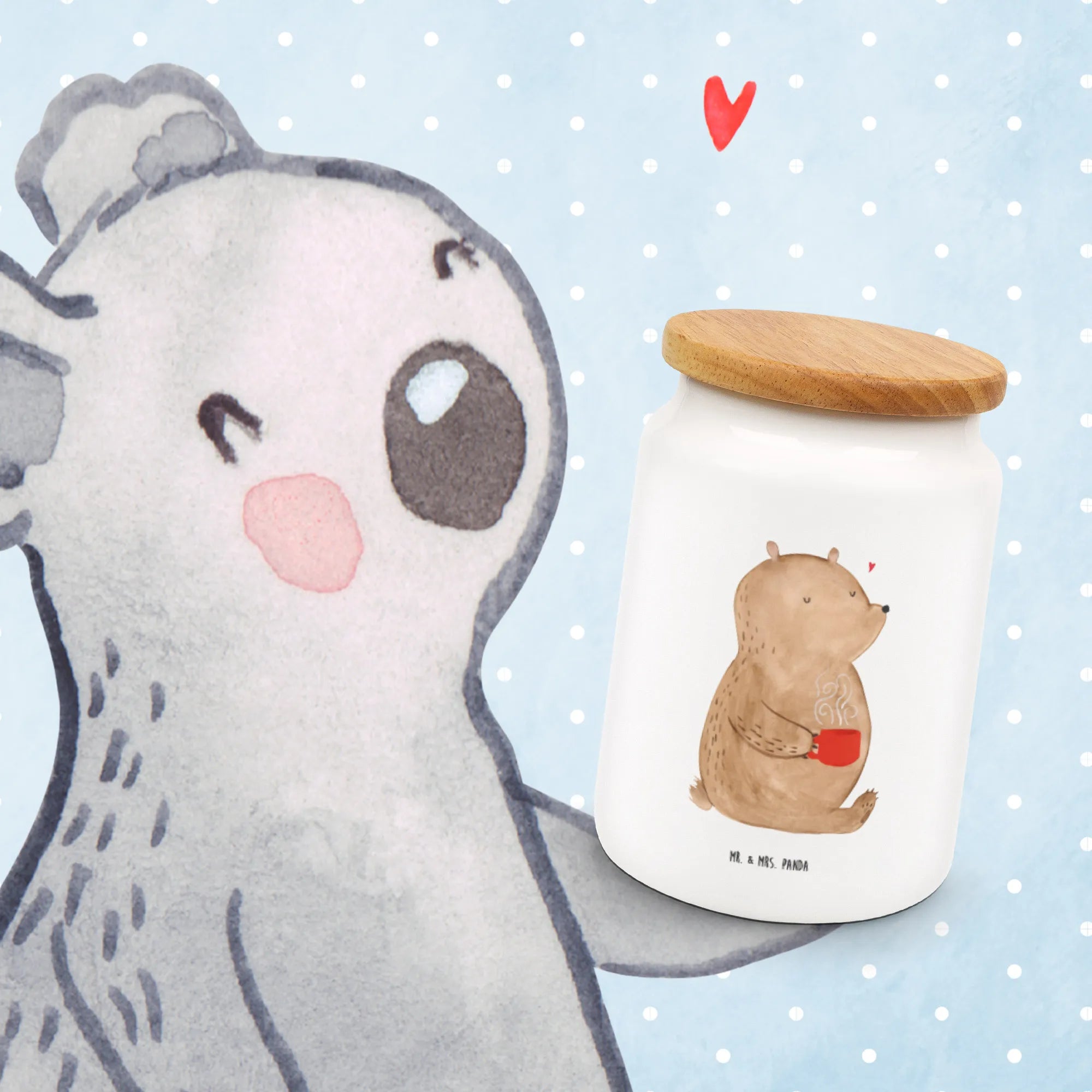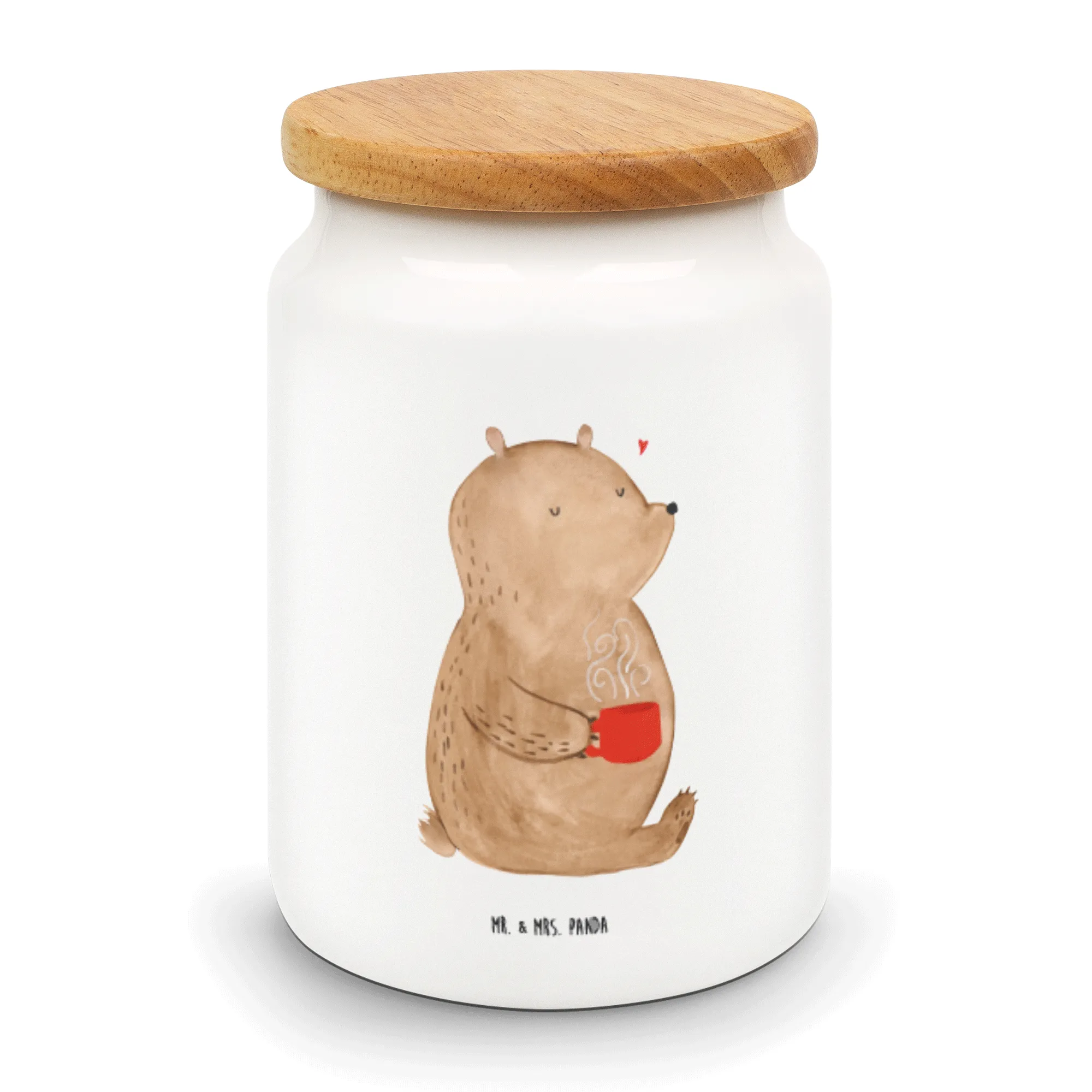 Die Vorratsdose mit dem süßen Bären Kaffee Motiv von Mr. & Mrs. Panda ist das perfekte Geschenk für alle Kaffeeliebhaber und Bärenfreunde.