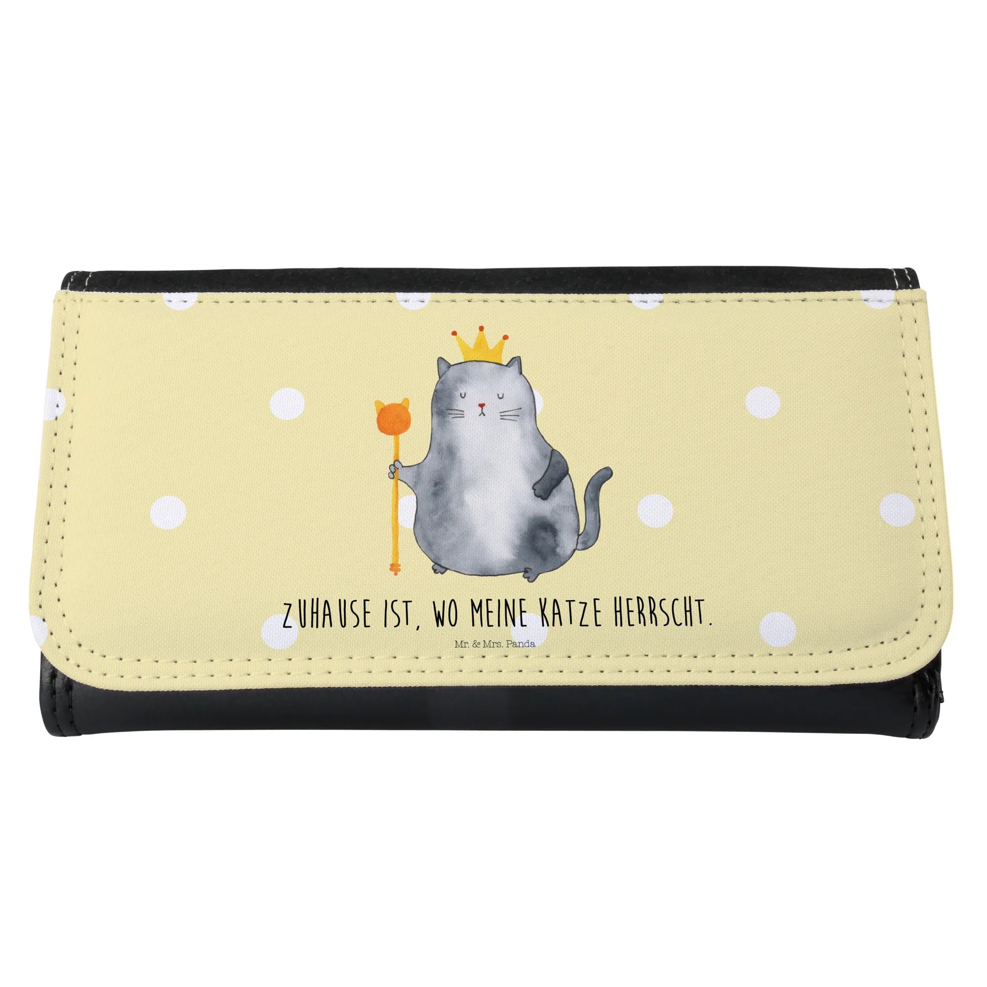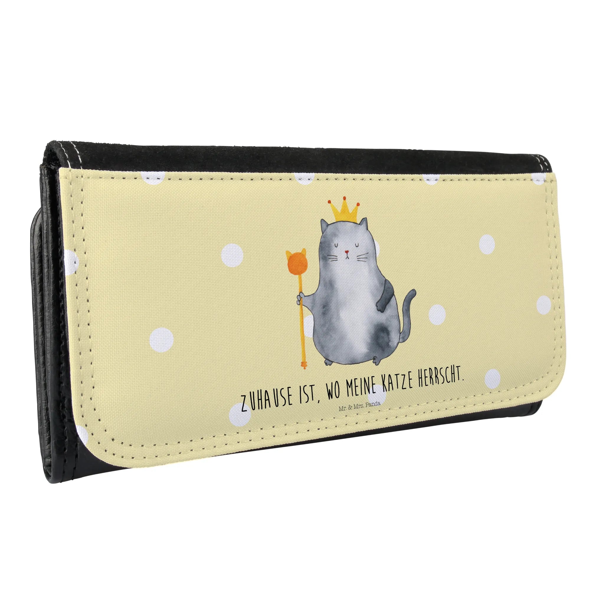 Portfel damski kot Król - z napisem - Żółty Pastel