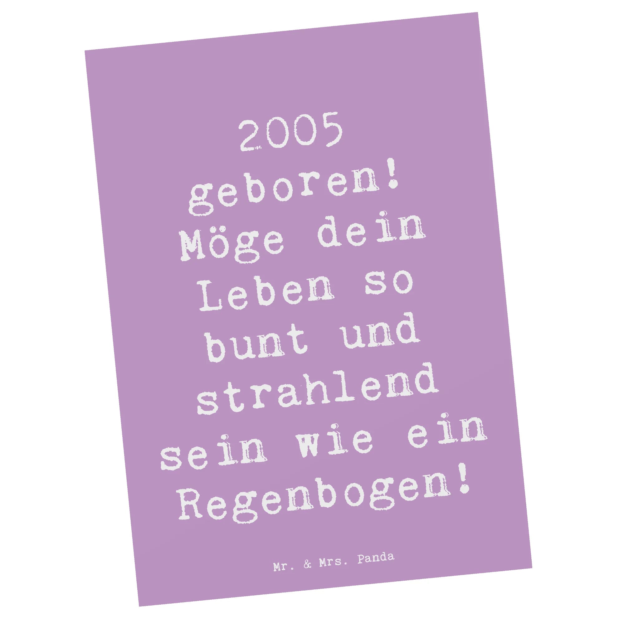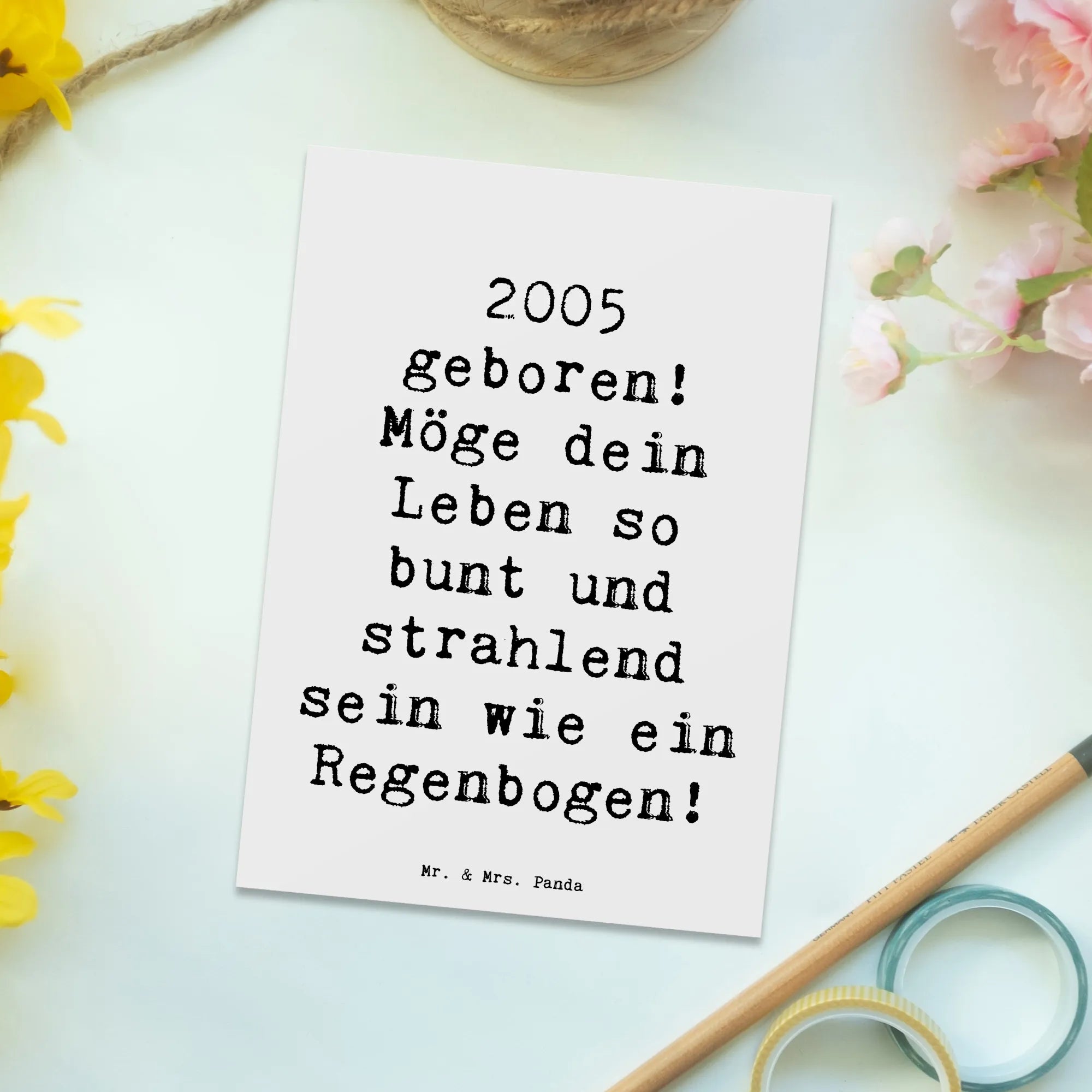 Egal, ob du sie als Einladungs-, Dankes- oder einfach nur als Grußkarte verschenkst, diese Postkarte ist das ideale Geschenk für alle, die 2005 geboren wurden und die bunten Momente des Lebens schätzen. Unsere Geburtstags-Kollektion wurde mit viel Liebe und Leidenschaft von Mr. & Mrs. Panda kreiert. Sie umfasst niedliche Motive und Sprüche, die das Herz höher schlagen lassen.