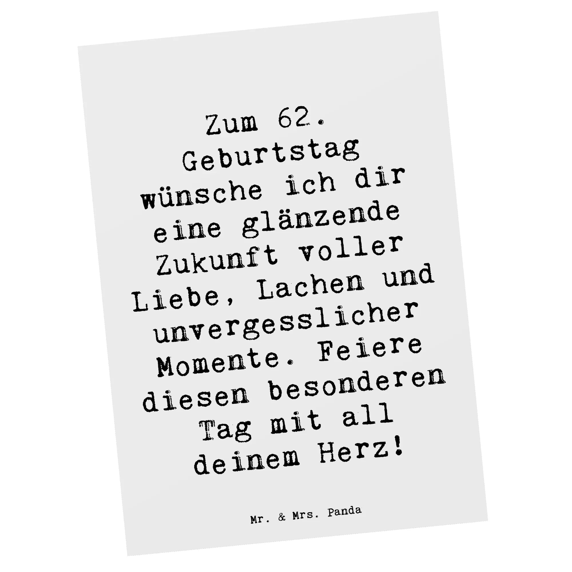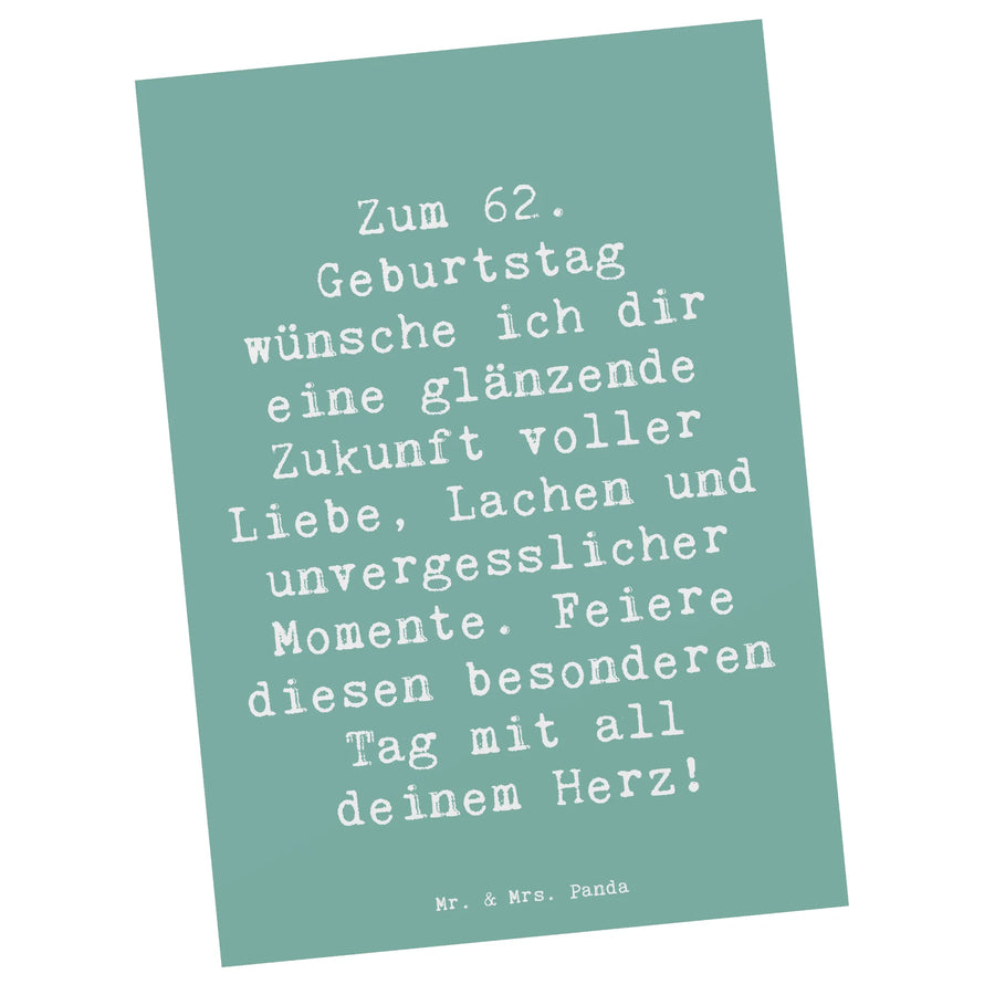 Die einzigartige Postkarte von Mr. & Mrs. Panda zum 62. Geburtstag ist das perfekte Geschenk für deine Liebsten! 🎉 Ob Familienmitglied oder guter Freund, jeder wird sich über die liebevolle Botschaft freuen: "Zum 62. Geburtstag wünsche ich dir eine glänzende Zukunft voller Liebe, Lachen und unvergesslicher Momente. Feiere diesen besonderen Tag mit all deinem Herz!"