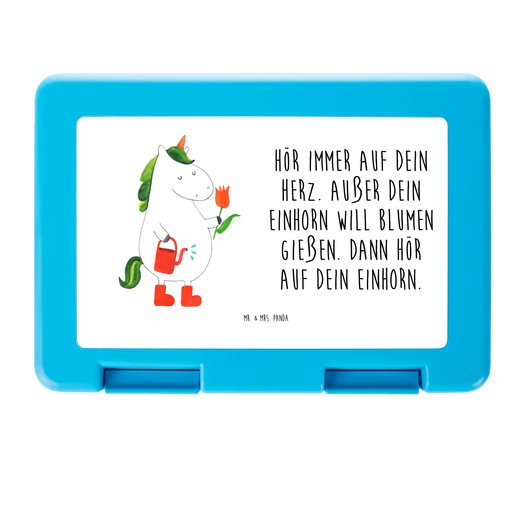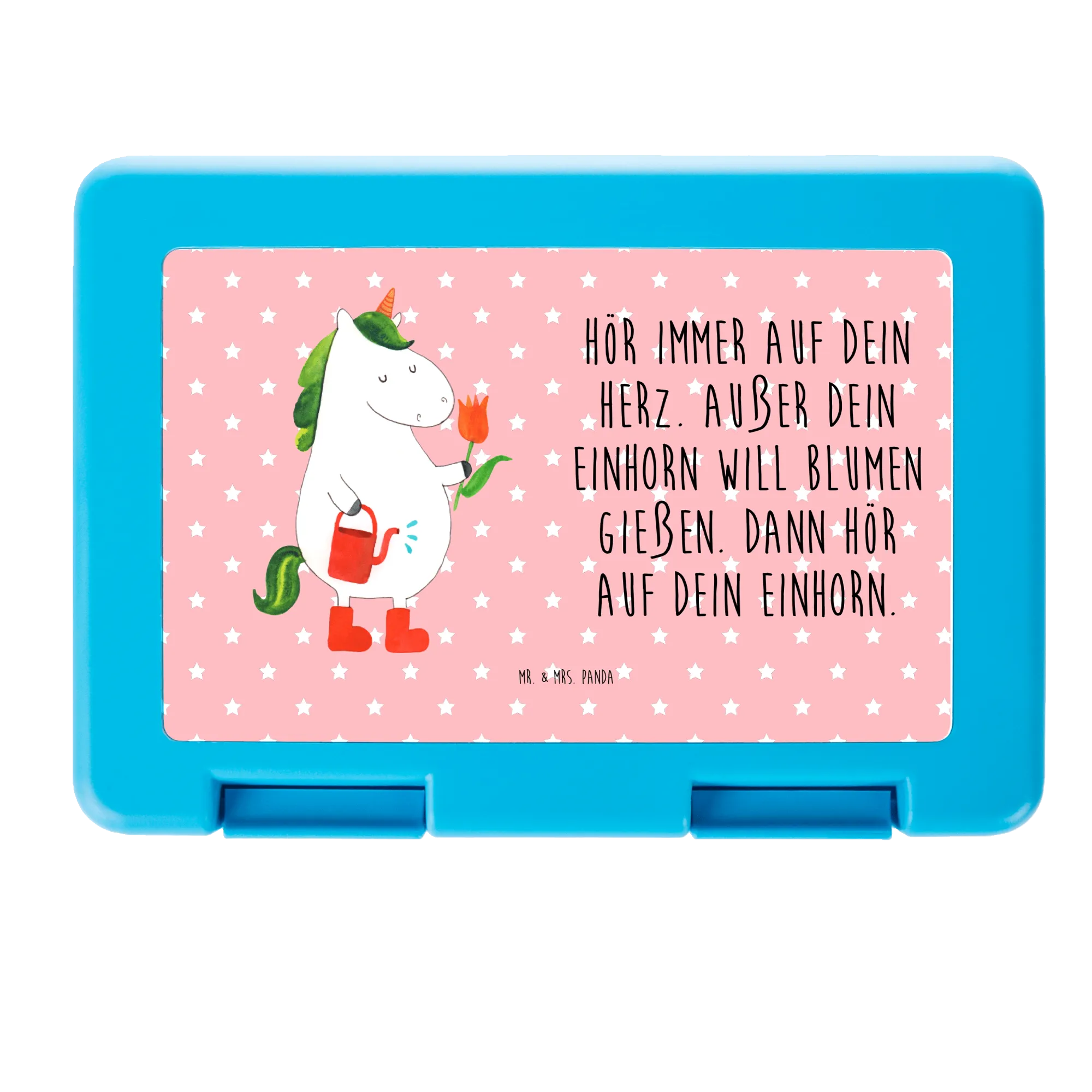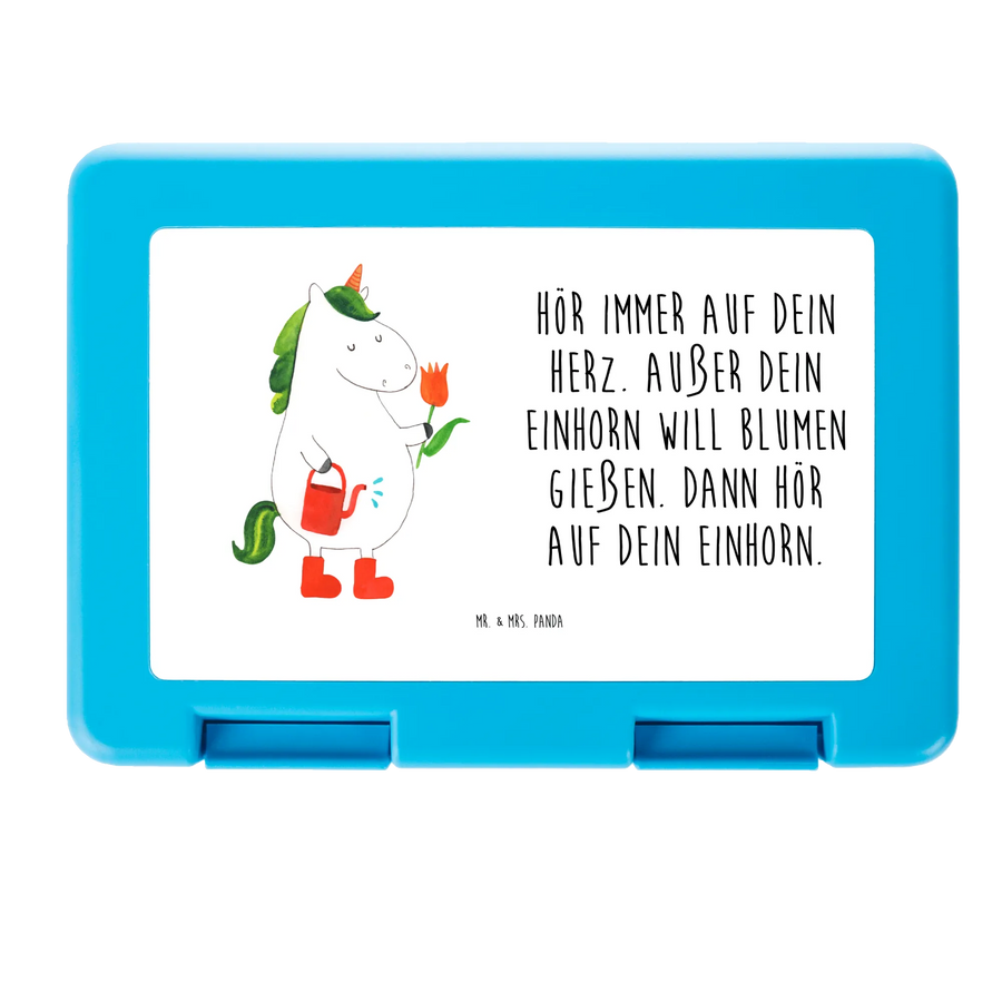 Die wunderschöne Brotdose Einhorn Gärtner von Mr. & Mrs. Panda ist das perfekte Geschenk für alle Einhorn-Fans, besonders für kleine Gartenzwerge und kreative Köpfe. Mit einem zauberhaften Motiv eines niedlichen Einhorns, das liebevoll die Blumen gießt, bringt diese Brotdose Freude in die Pause - sei es in der Schule, beim Sport oder auf Ausflügen. Der Spruch „Hör immer auf dein Herz. Außer dein Einhorn will Blumen gießen. Dann hör auf dein Einhorn.“ sorgt für ein Lächeln auf den Lippen und entführt in die zauberhafte Welt der Einhörner.