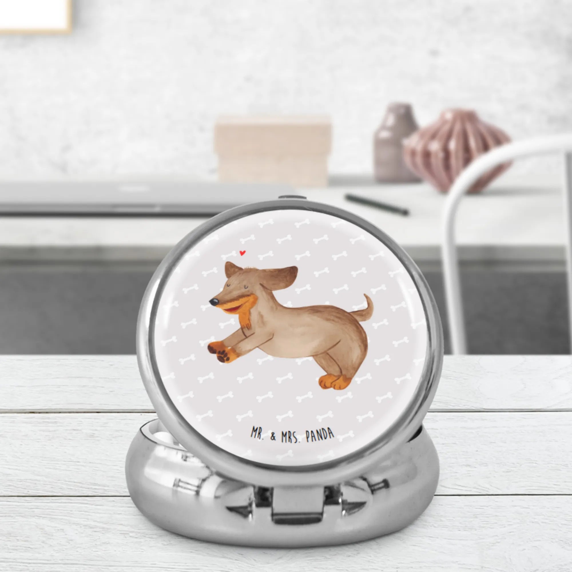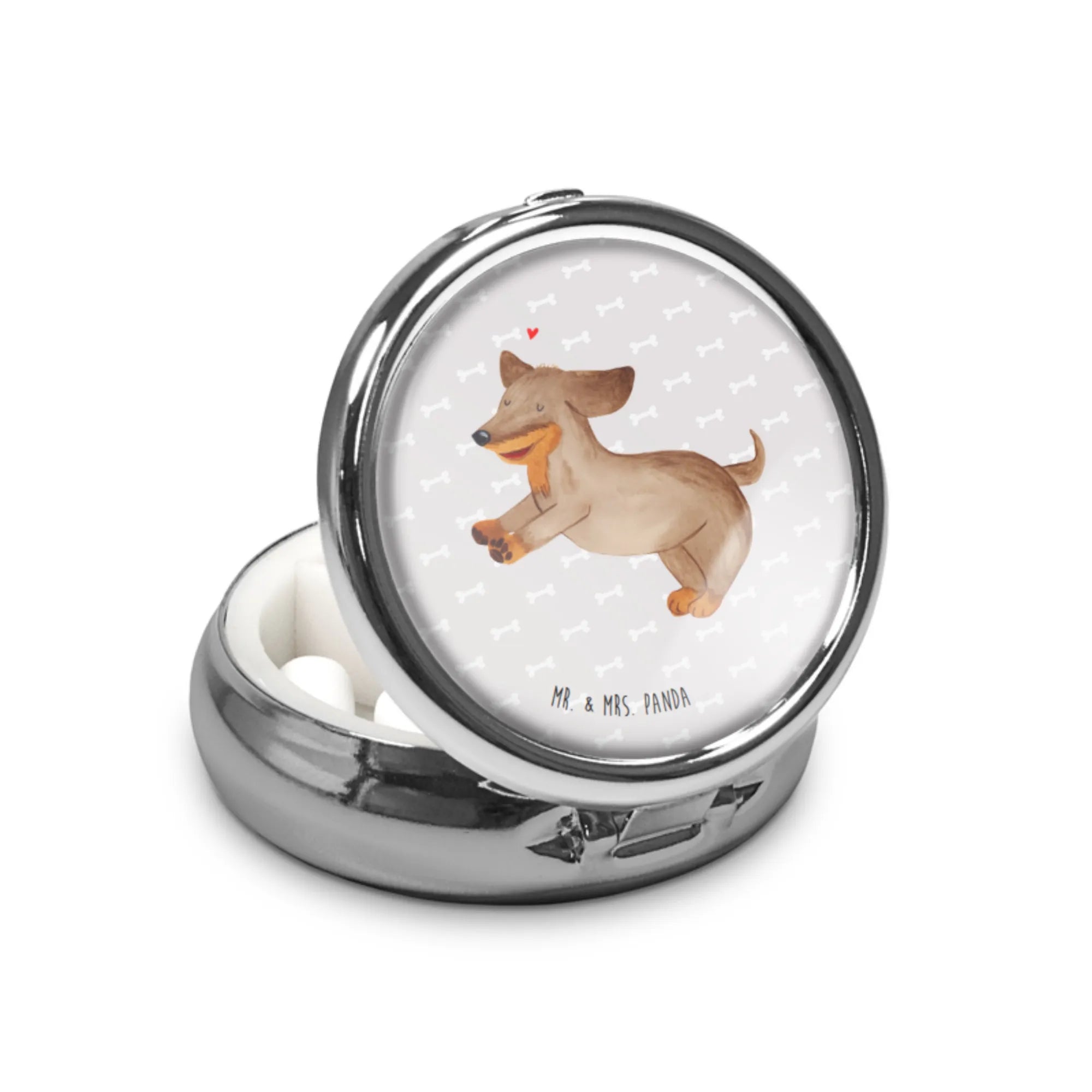 Pudełko na tabletki pies Jamnik - Pastelowy szary