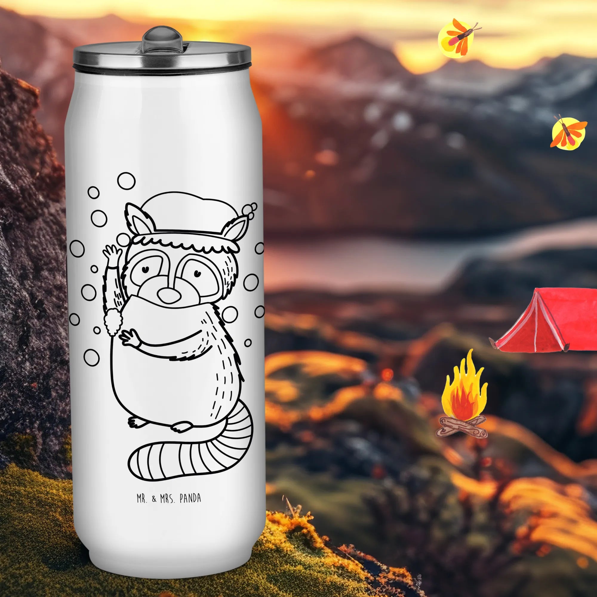Die wunderschöne Edelstahl Getränkedosen Trinkflasche mit dem niedlichen Waschbär-Motiv aus der Small World Kollektion von Mr. & Mrs. Panda ist das perfekte Geschenk für alle Tierliebhaber und fröhlichen Menschen! Mit dem Slogan "Mein Plan für heute: Tagträumen und fröhlich sein." zaubert sie jedem ein Lächeln ins Gesicht.