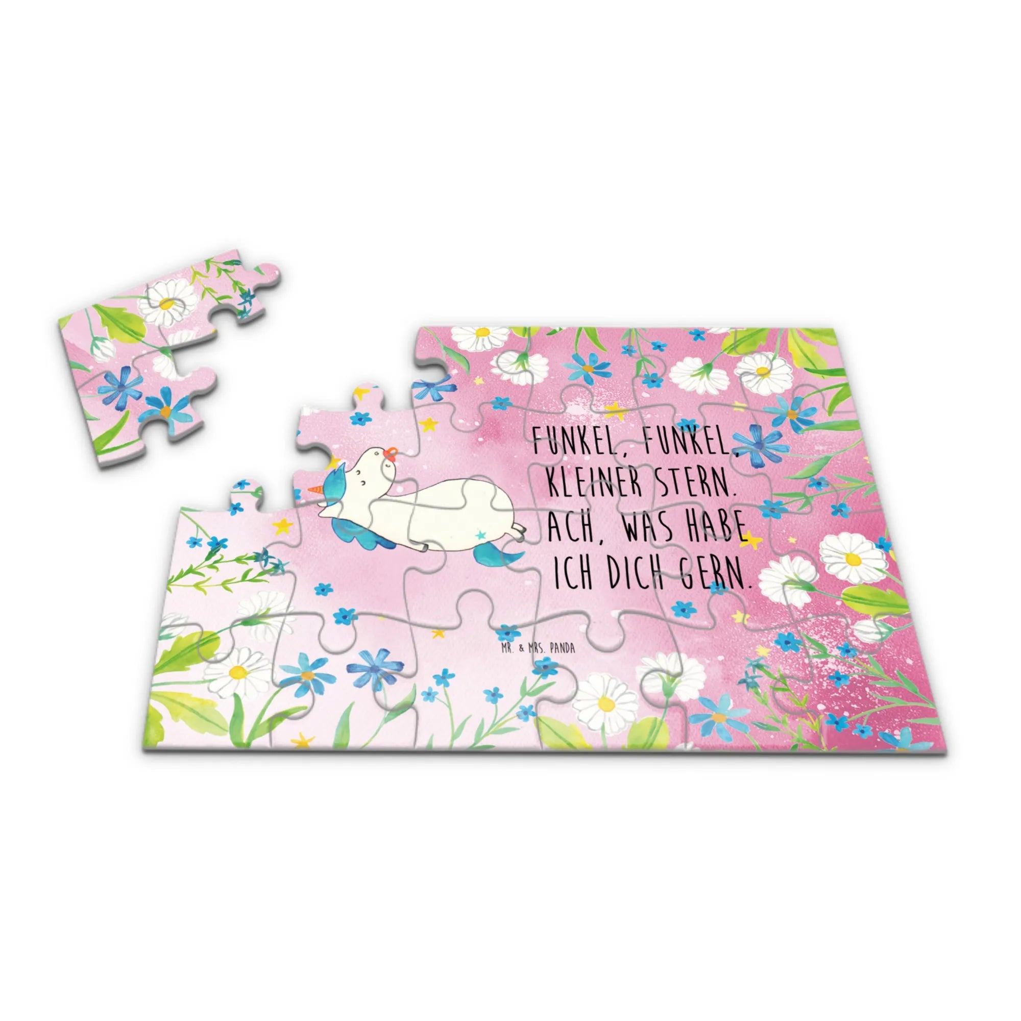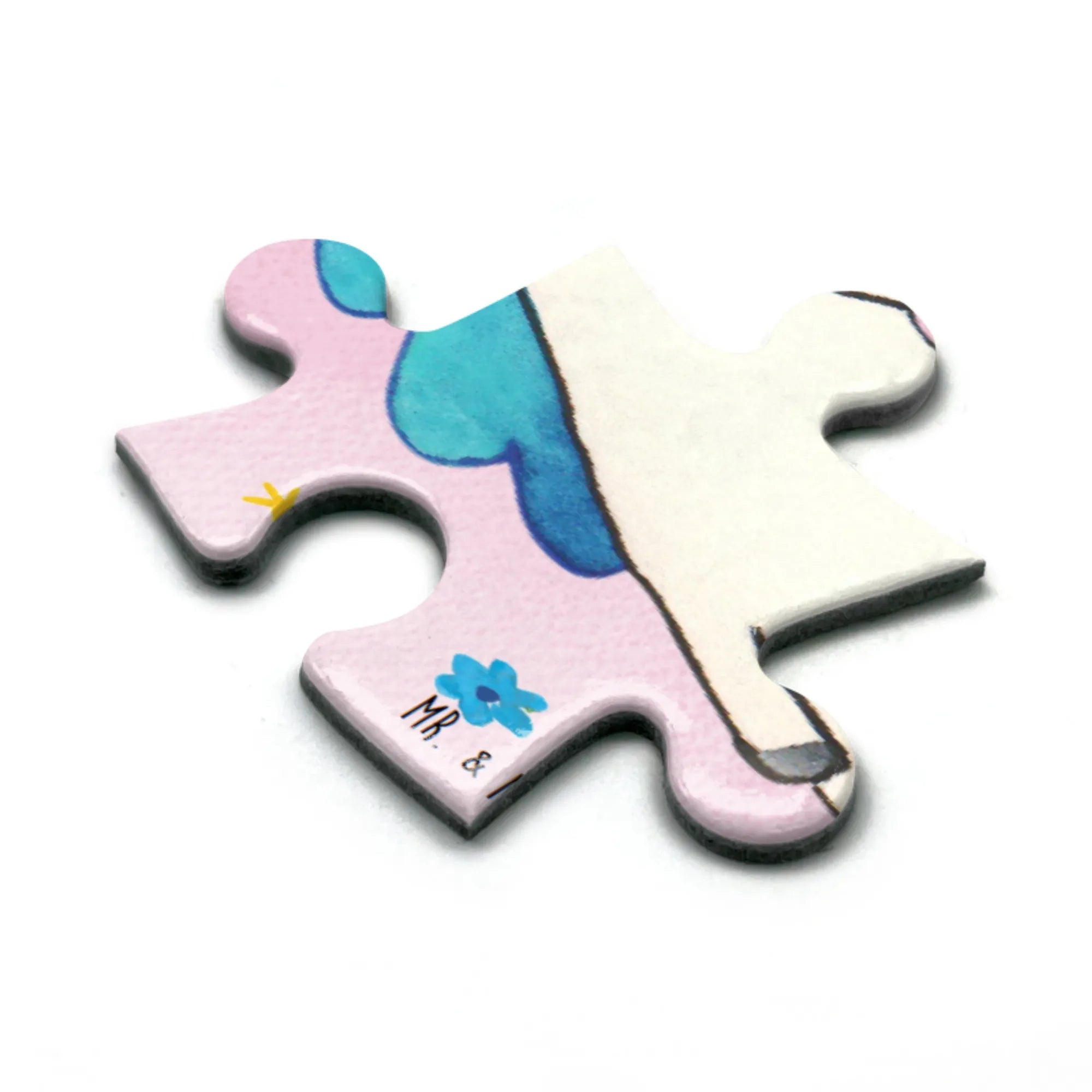 Du suchst ein liebevolles Geschenk zur Geburt, Taufe oder zum ersten Geburtstag? Unser Puzzle „Einhorn Schnullie“ aus der Einhorn - Kollektion von Mr. & Mrs. Panda vereint Zärtlichkeit, Spielspaß und liebevolle Handarbeit. Das Motiv zeigt ein schlafendes Baby-Einhorn mit Schnuller in sanften Pastellrot-Tönen – ideal für Babys, Säuglinge und Kleinkinder.