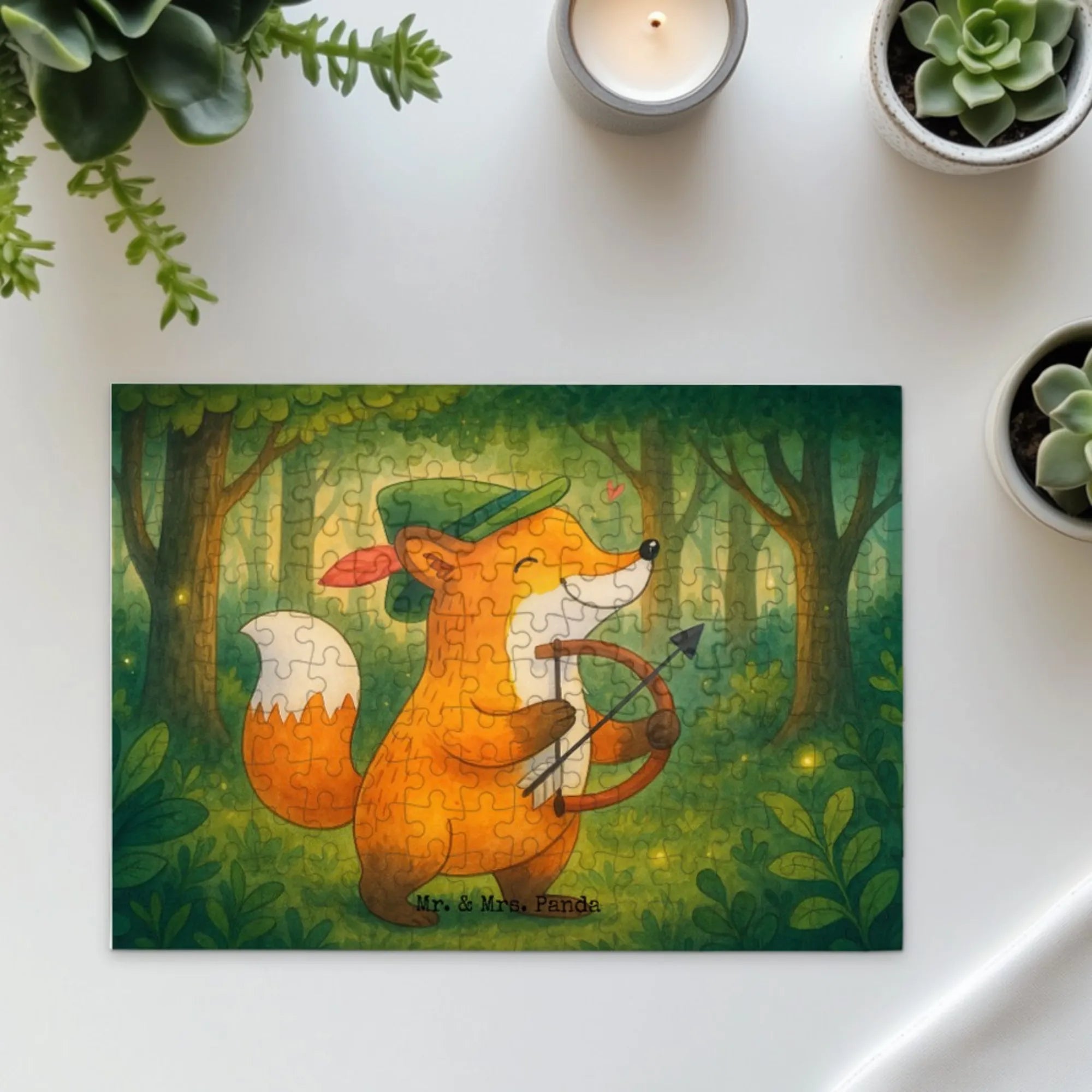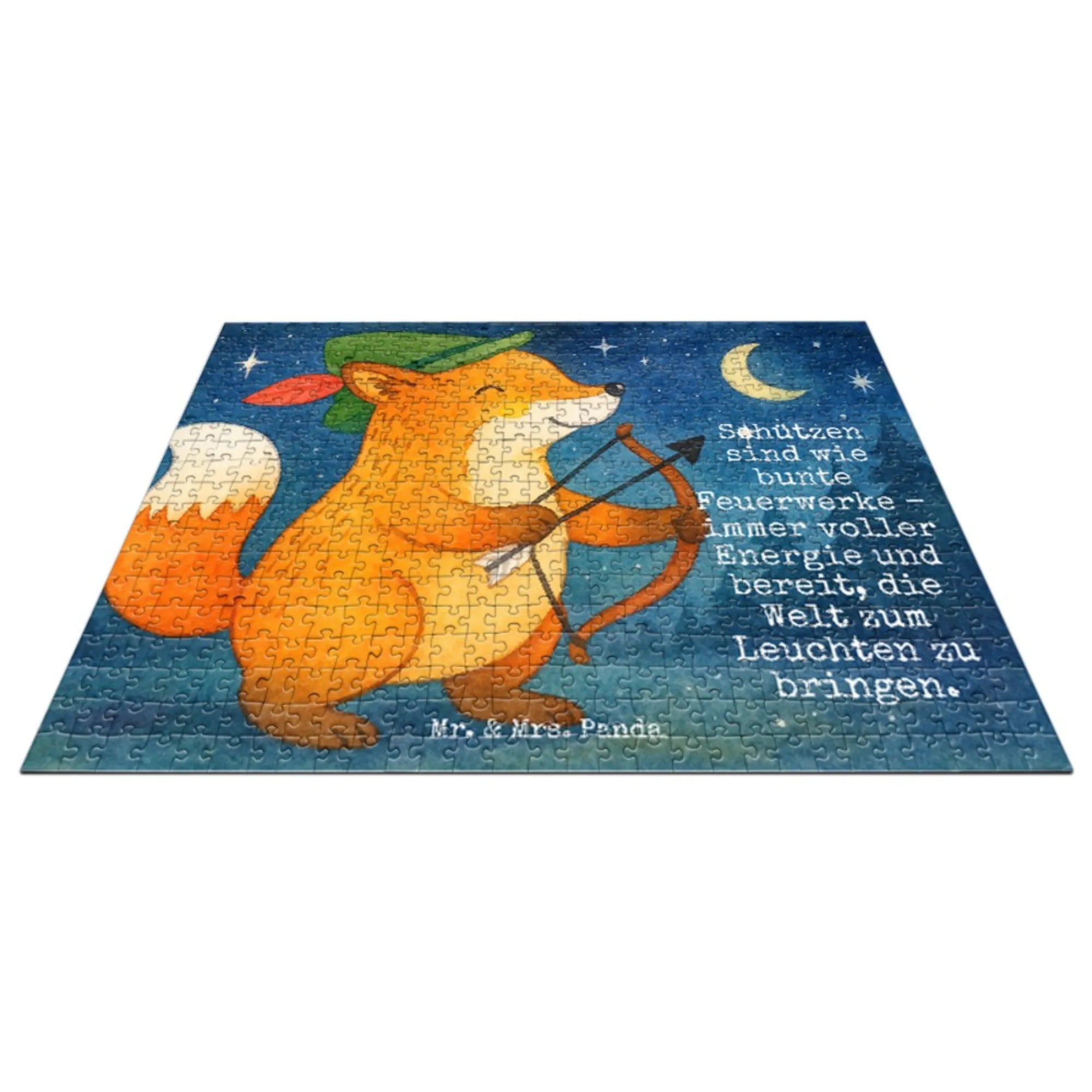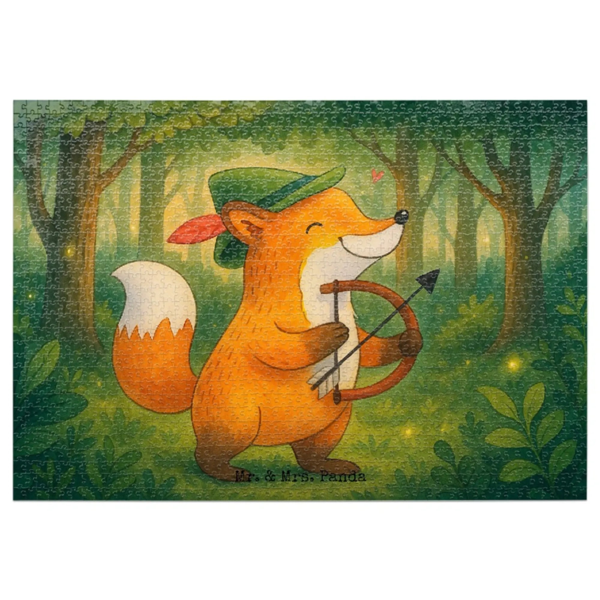 Dieses bezaubernde Puzzle aus unserer Sternzeichen-Kollektion zeigt einen verschmitzten orange-braunen Fuchs, der sich als Schütze verkleidet hat: mit grünem Hut, roter Feder und Pfeil und Bogen. Das Motiv ist handgezeichnet von Mrs. Panda und strotzt vor warmen Farben und charmanten Details – ideal als Geschenkidee für alle, die Astrologie und Horoskope lieben.