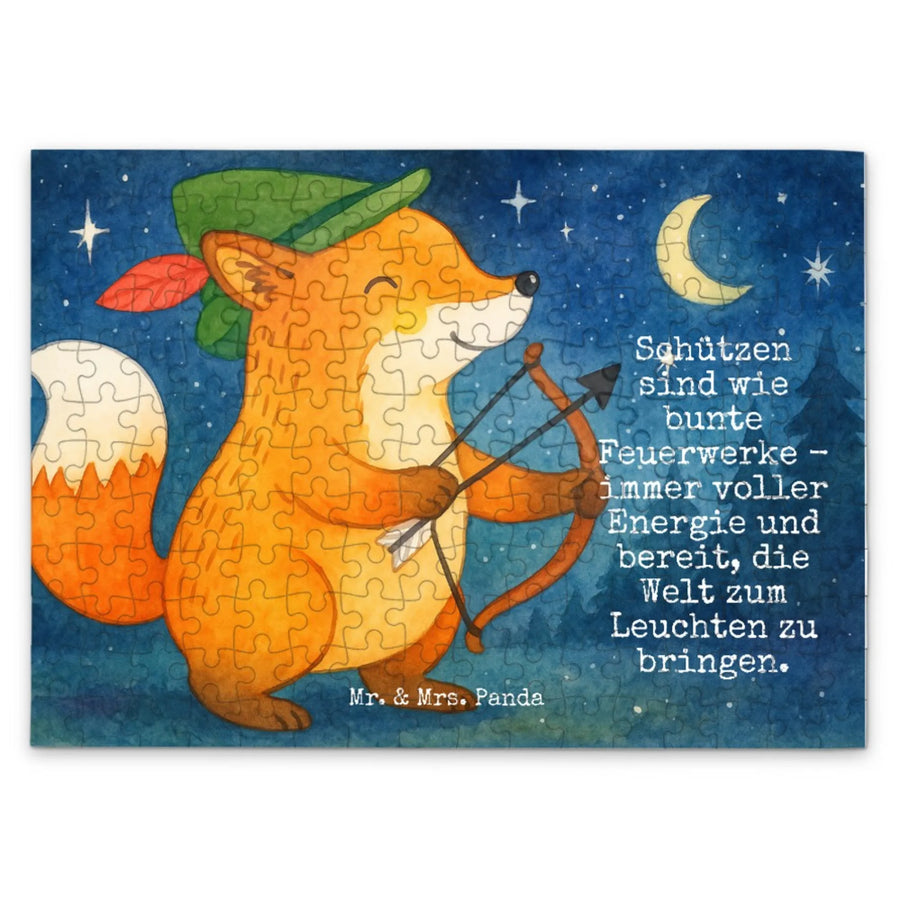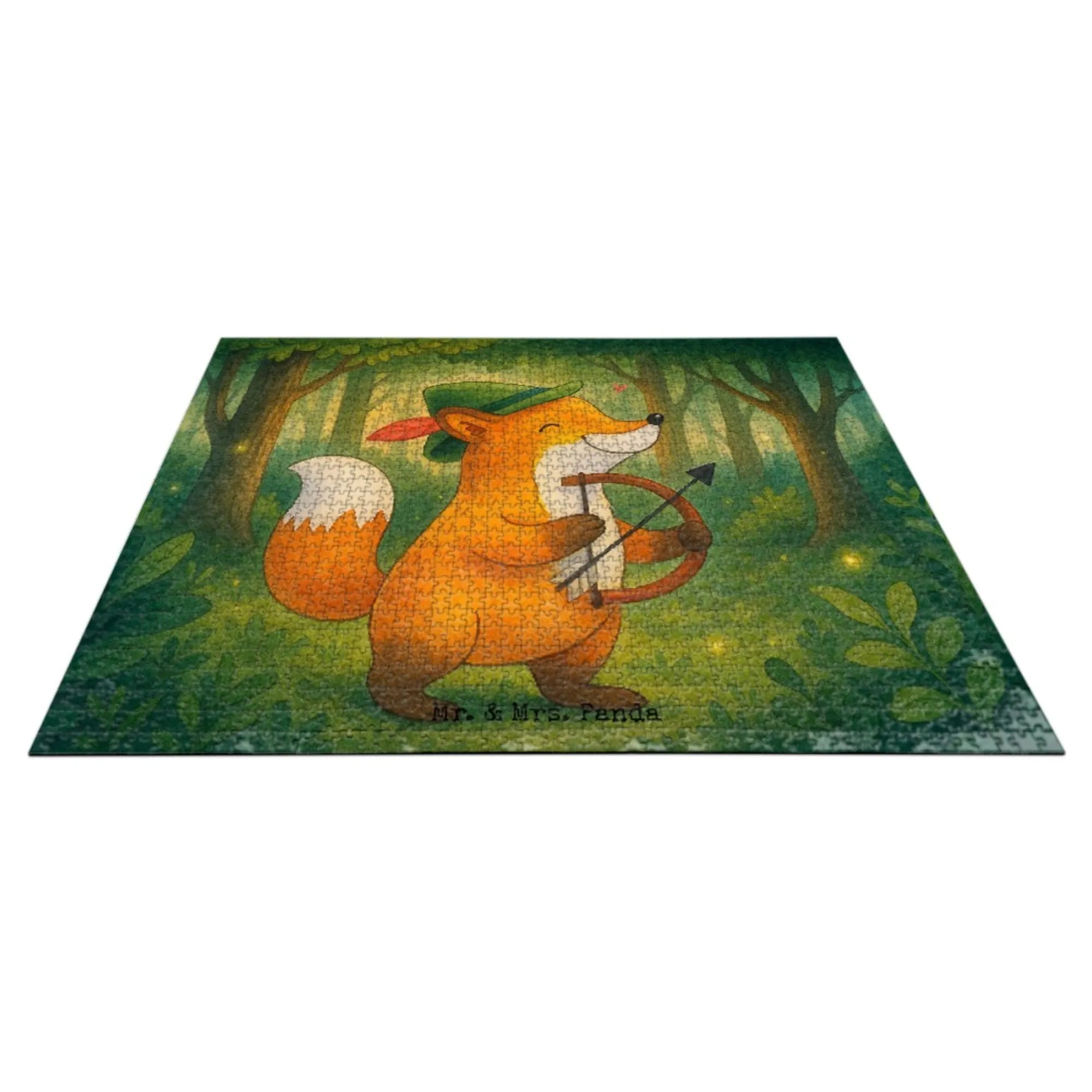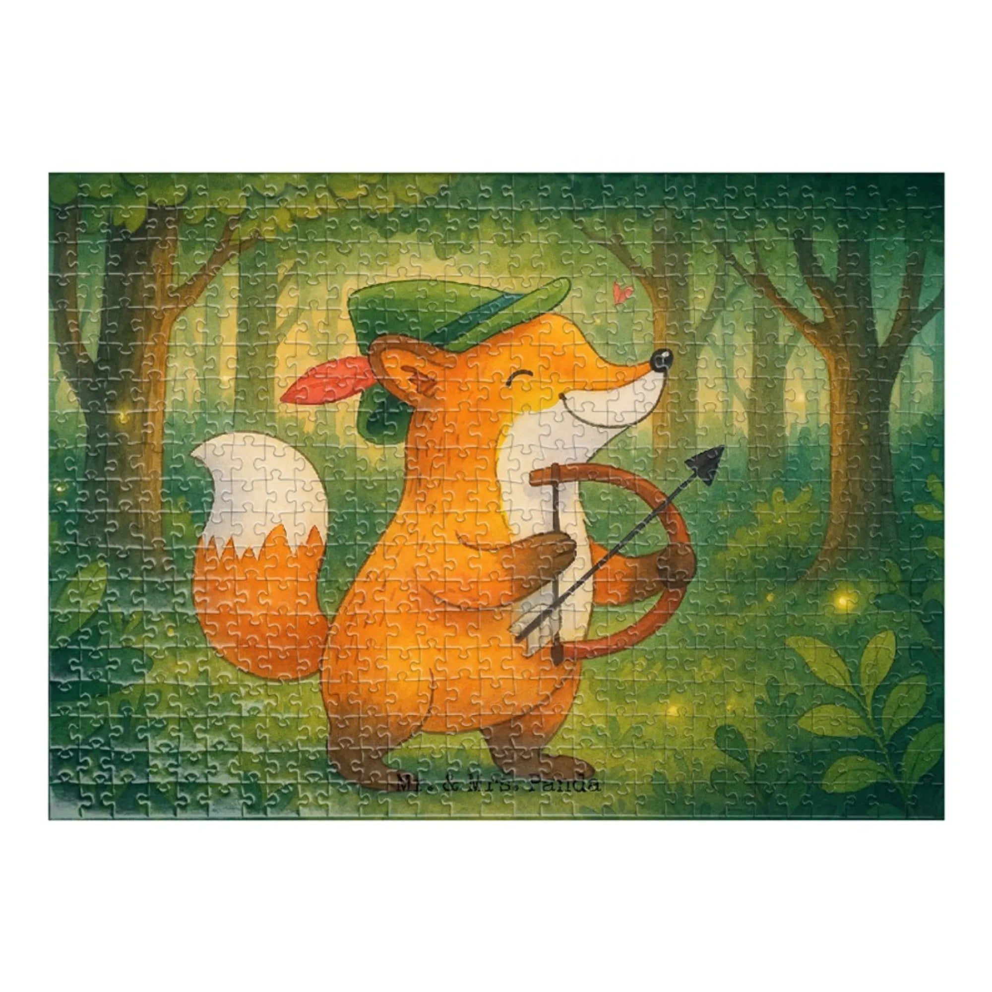 Dieses bezaubernde Puzzle aus unserer Sternzeichen-Kollektion zeigt einen verschmitzten orange-braunen Fuchs, der sich als Schütze verkleidet hat: mit grünem Hut, roter Feder und Pfeil und Bogen. Das Motiv ist handgezeichnet von Mrs. Panda und strotzt vor warmen Farben und charmanten Details – ideal als Geschenkidee für alle, die Astrologie und Horoskope lieben.