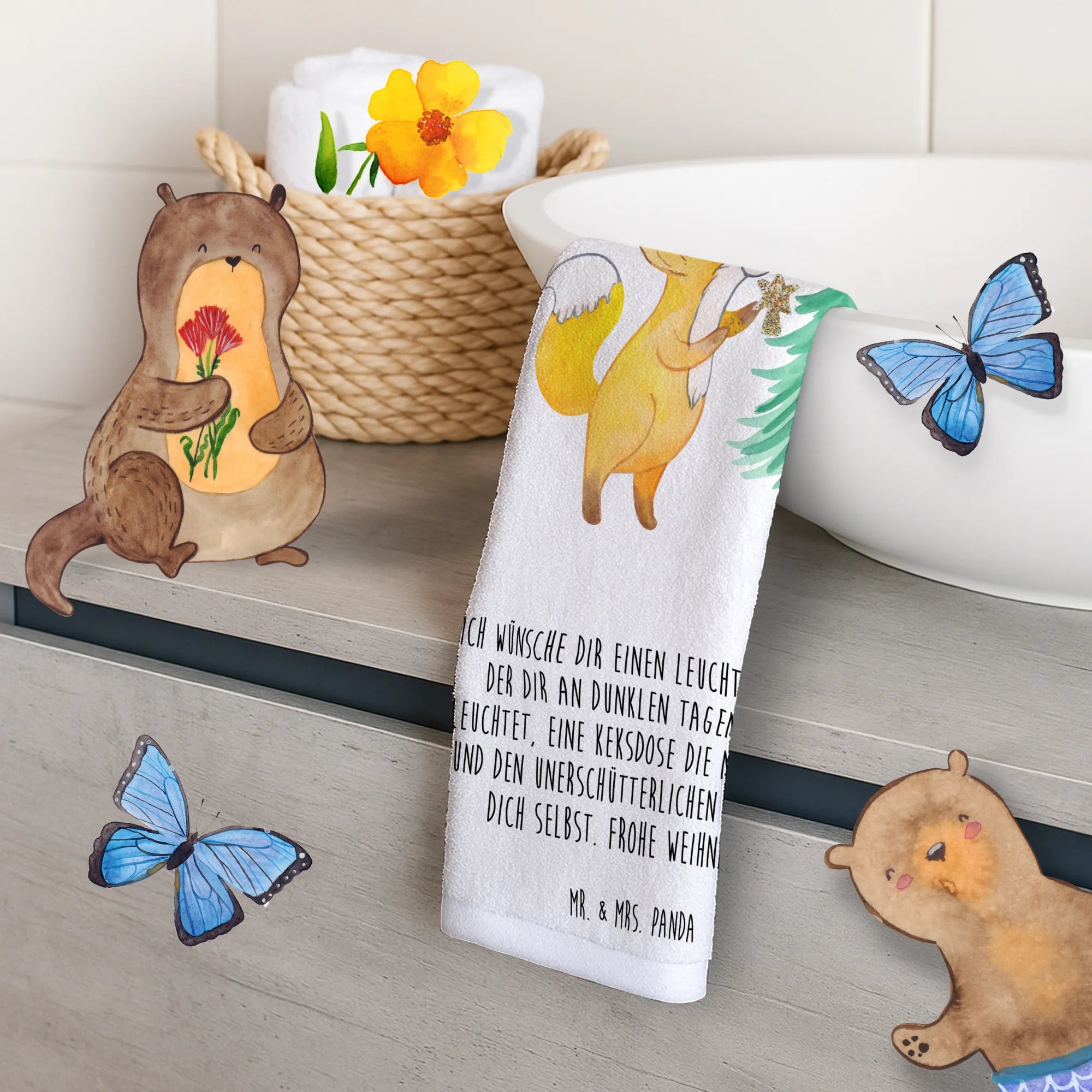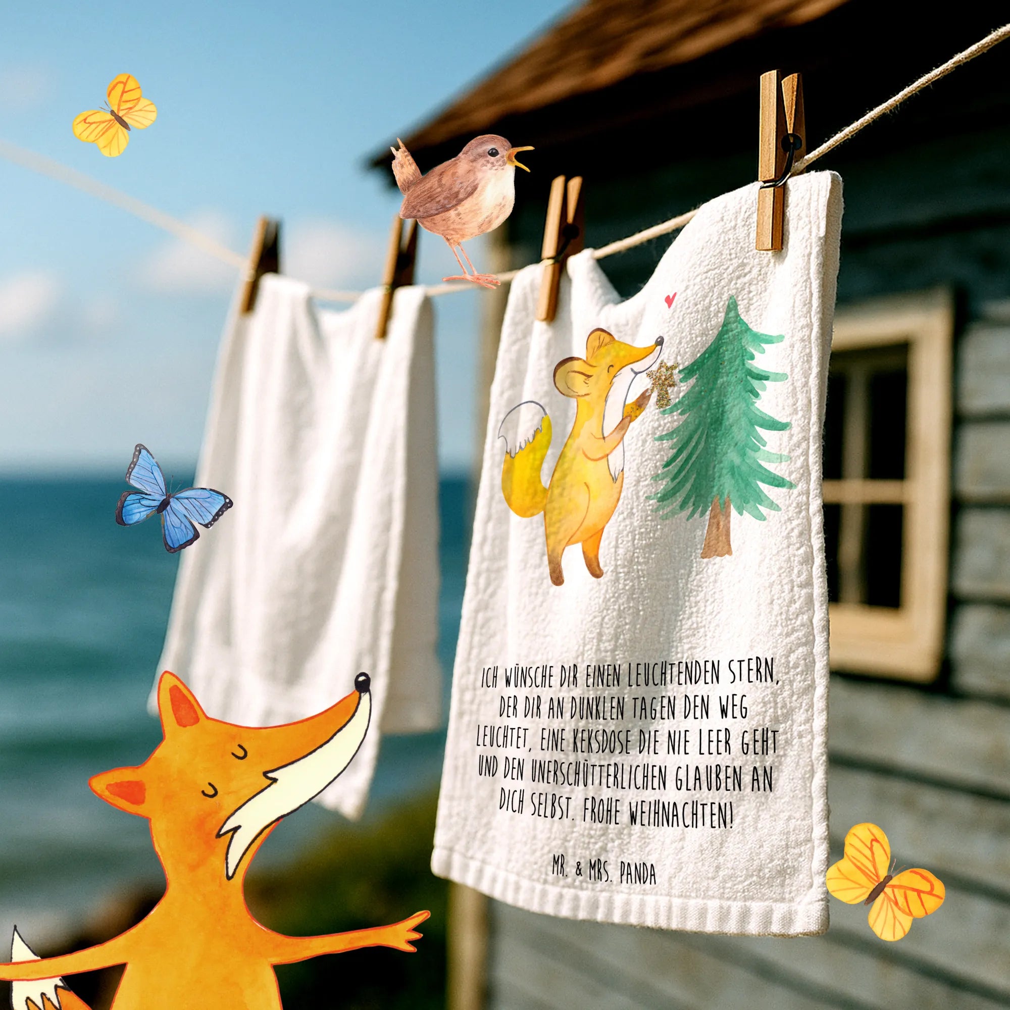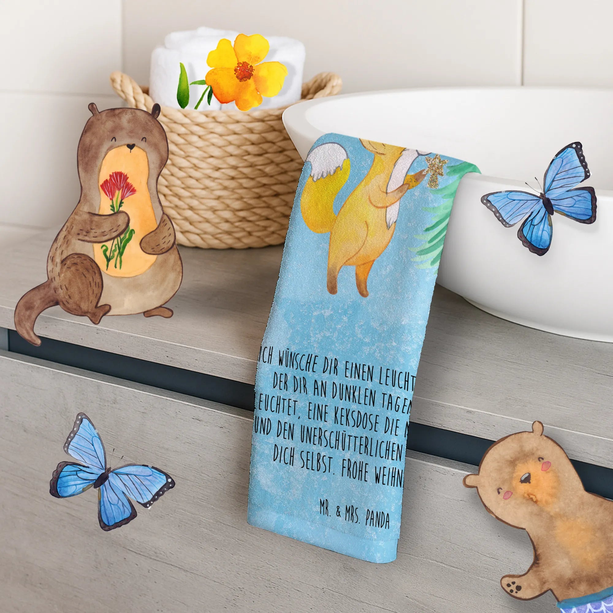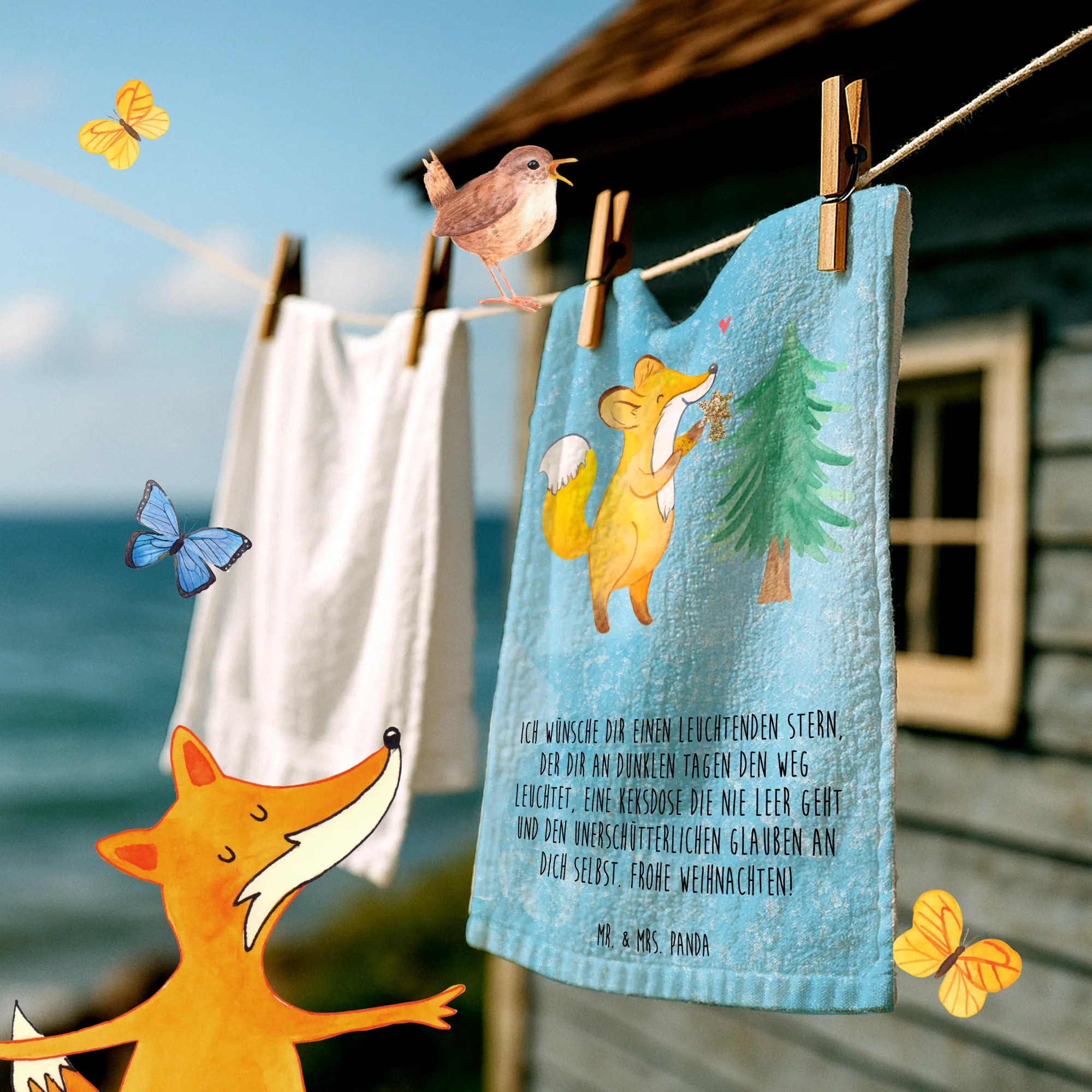 Ręcznik dla gości lis Choinka - lodowoniebieski