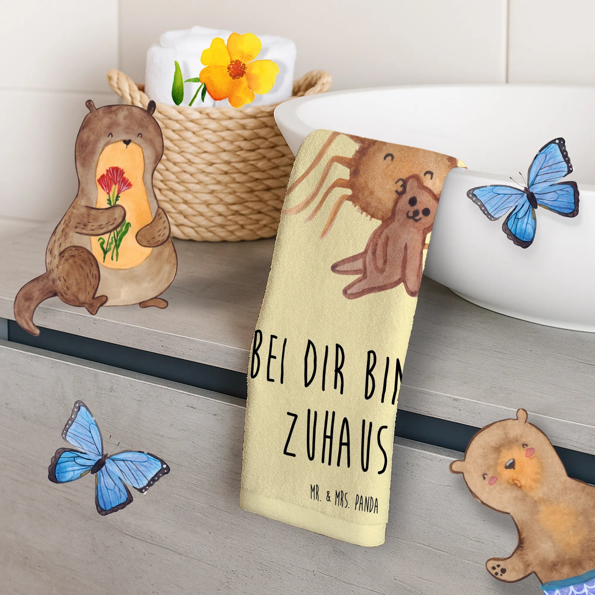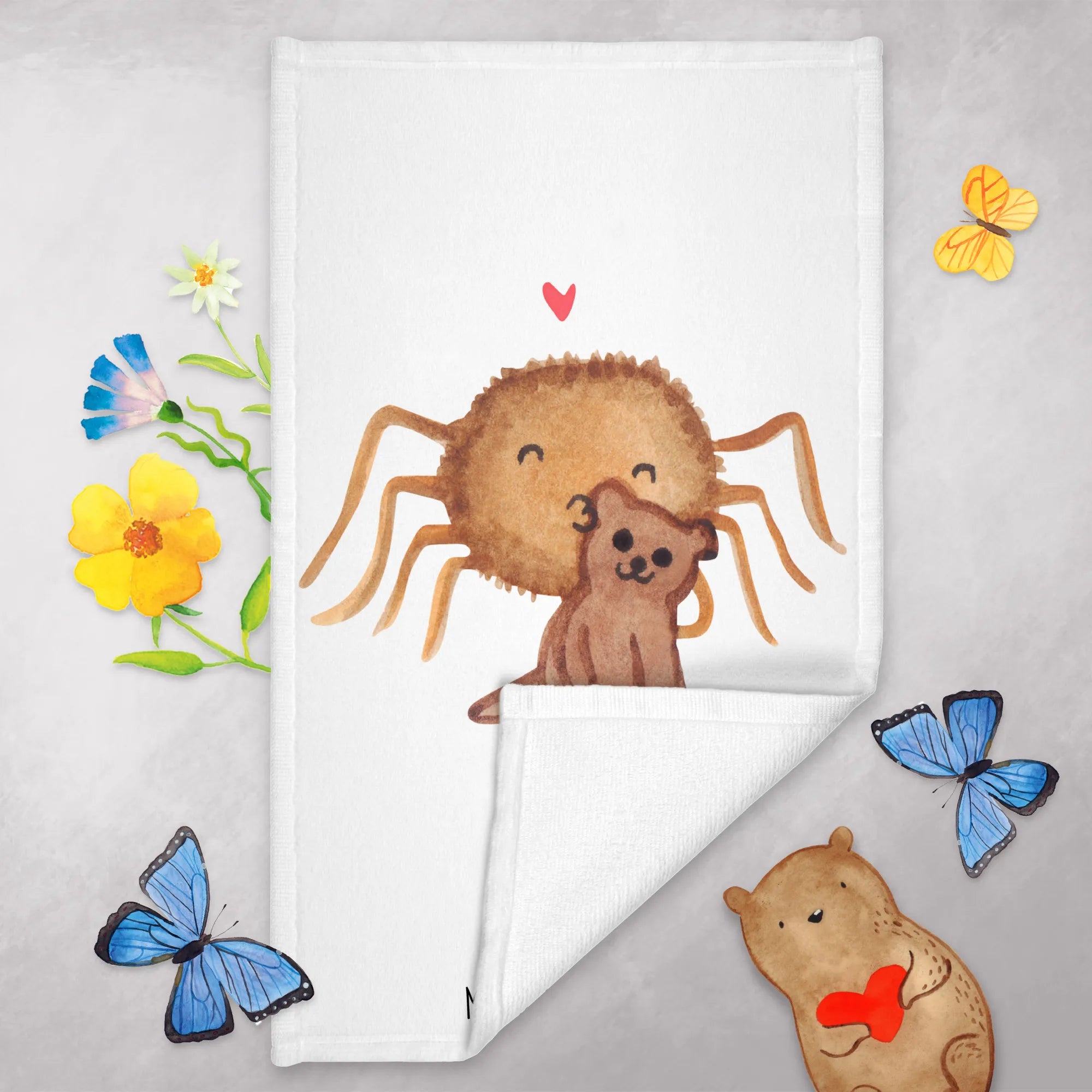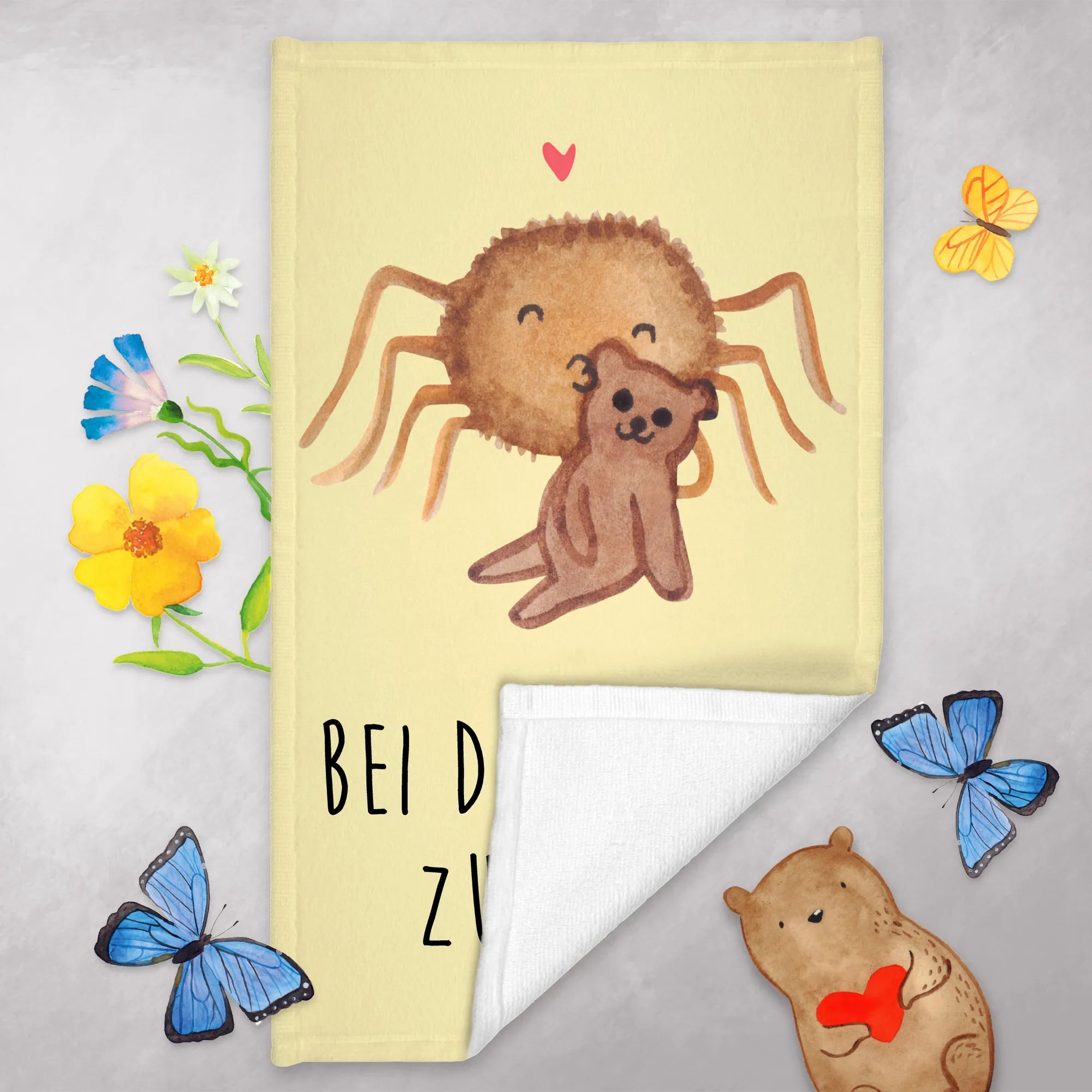 Ręcznik dla gości Pająk Agata Miś - z napisem - Pastelowy żółty