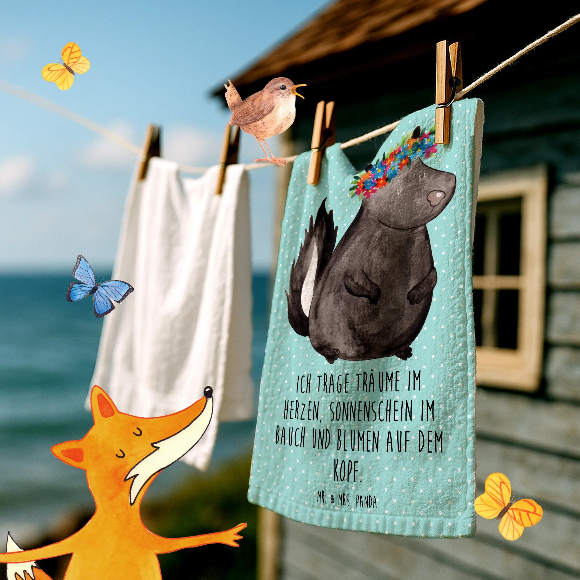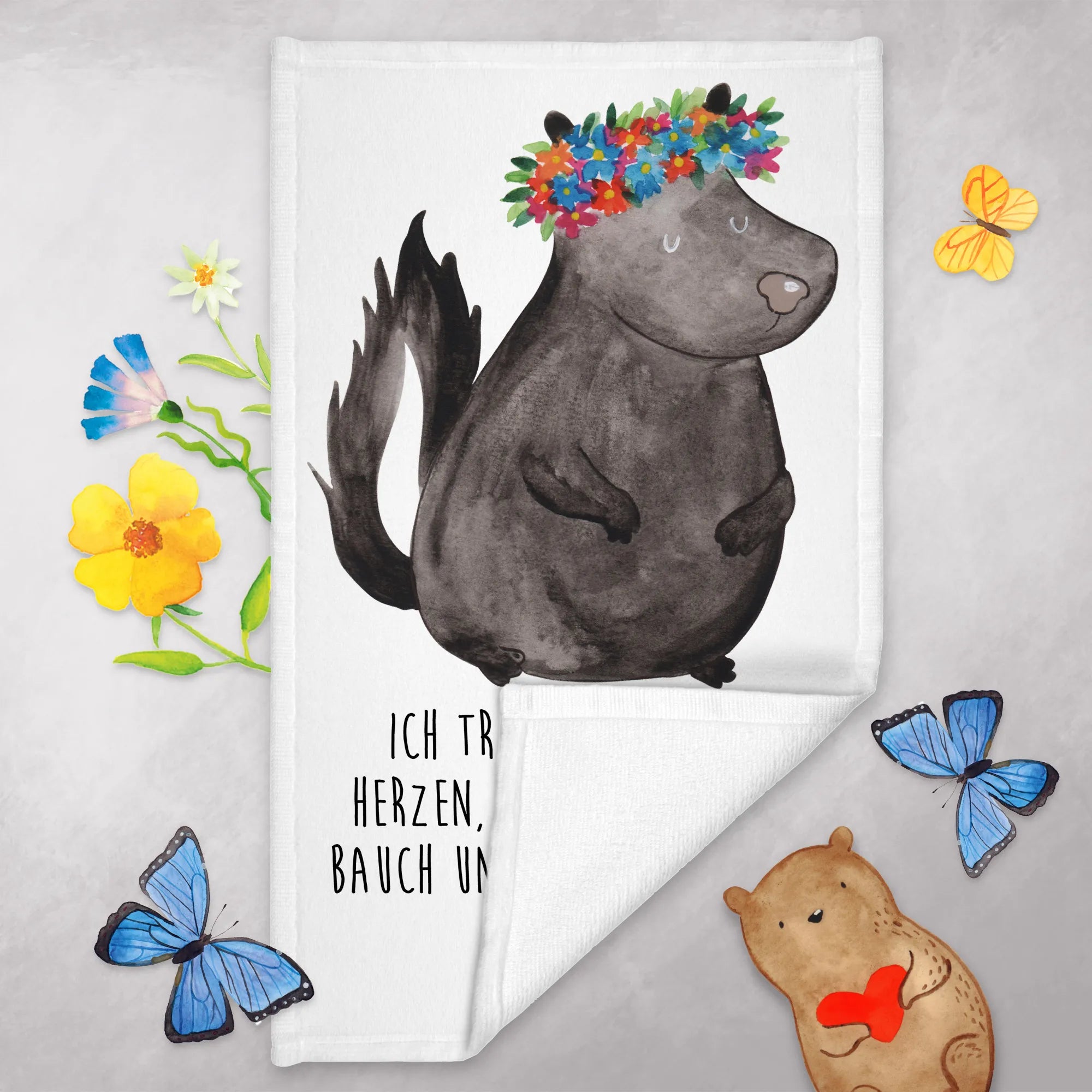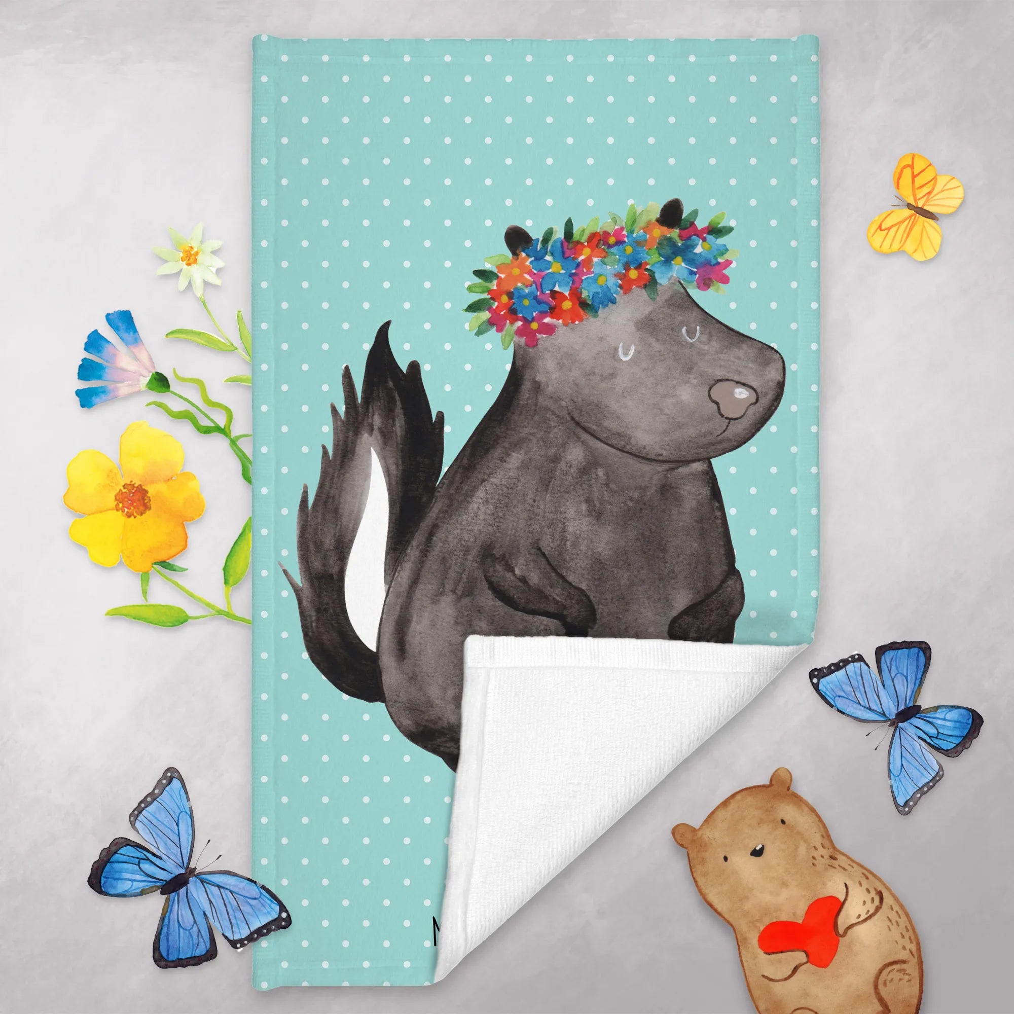 Ręcznik dla gości skunks dziewczynka - z napisem - pastelowy turkus