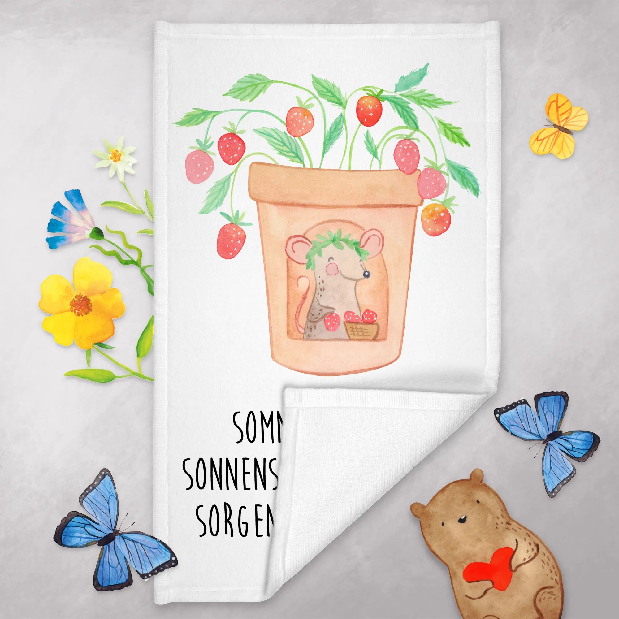 Ręcznik dla gości Sommer, Sonne, Sonnenschein, lass die Sorgen einfach sein! - biały