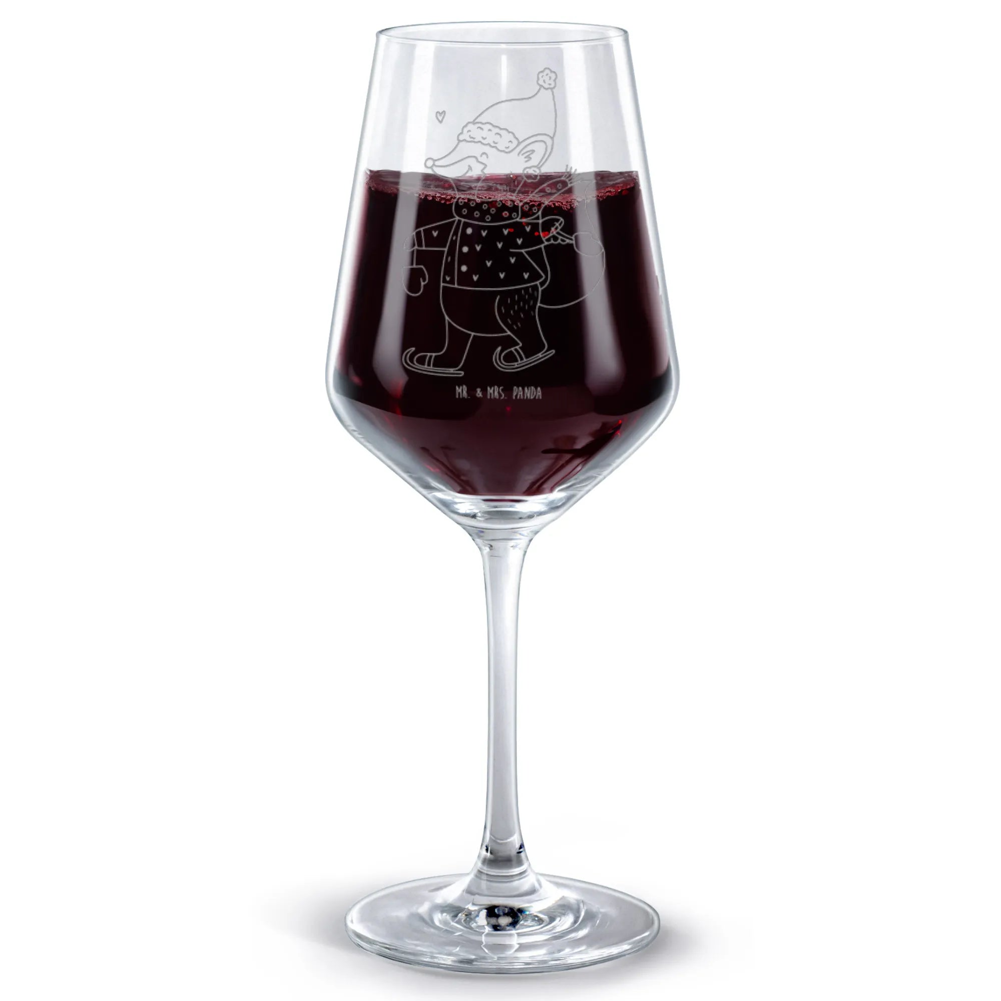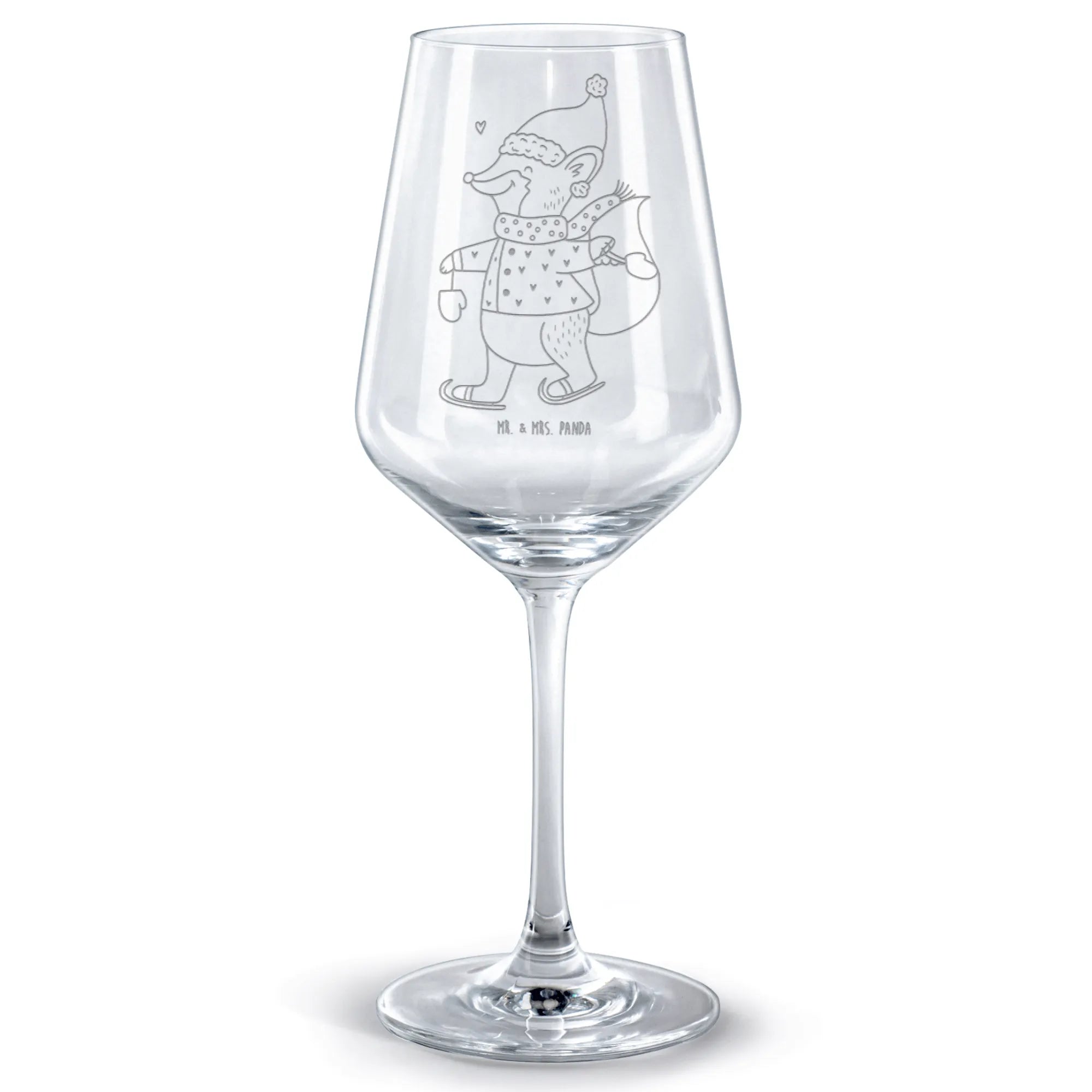 Rotweinglas mit Gravur Fuchs Schlittschuhe - mit Spruch