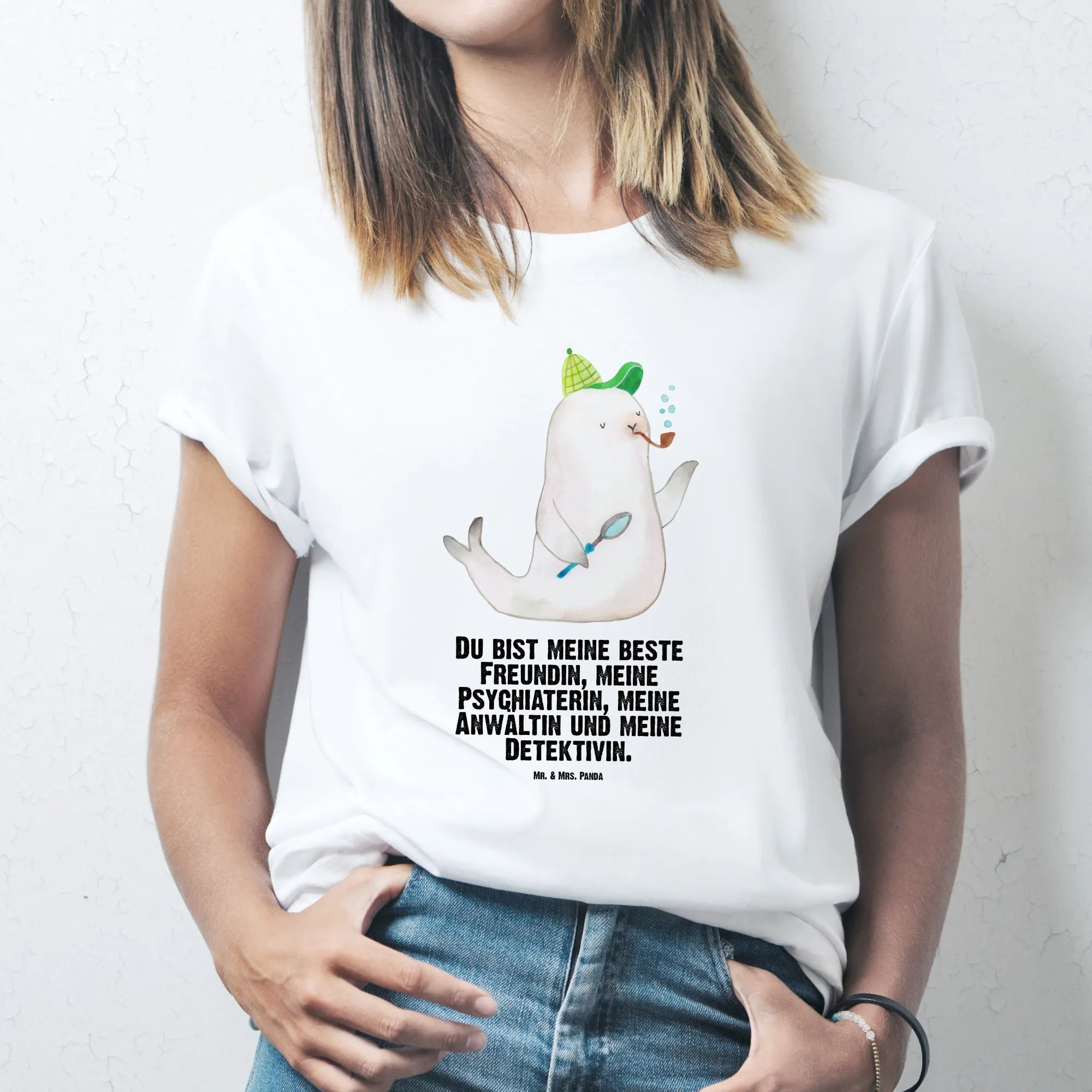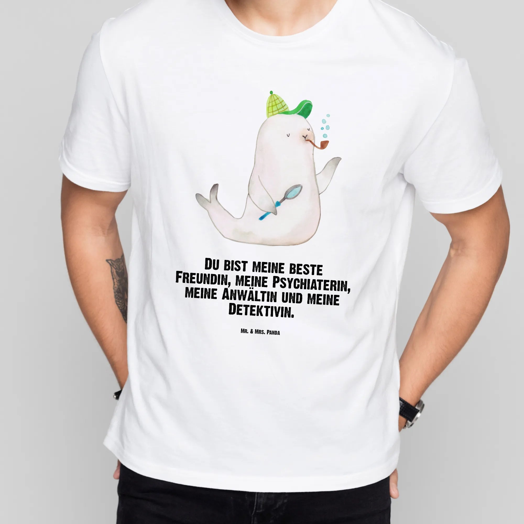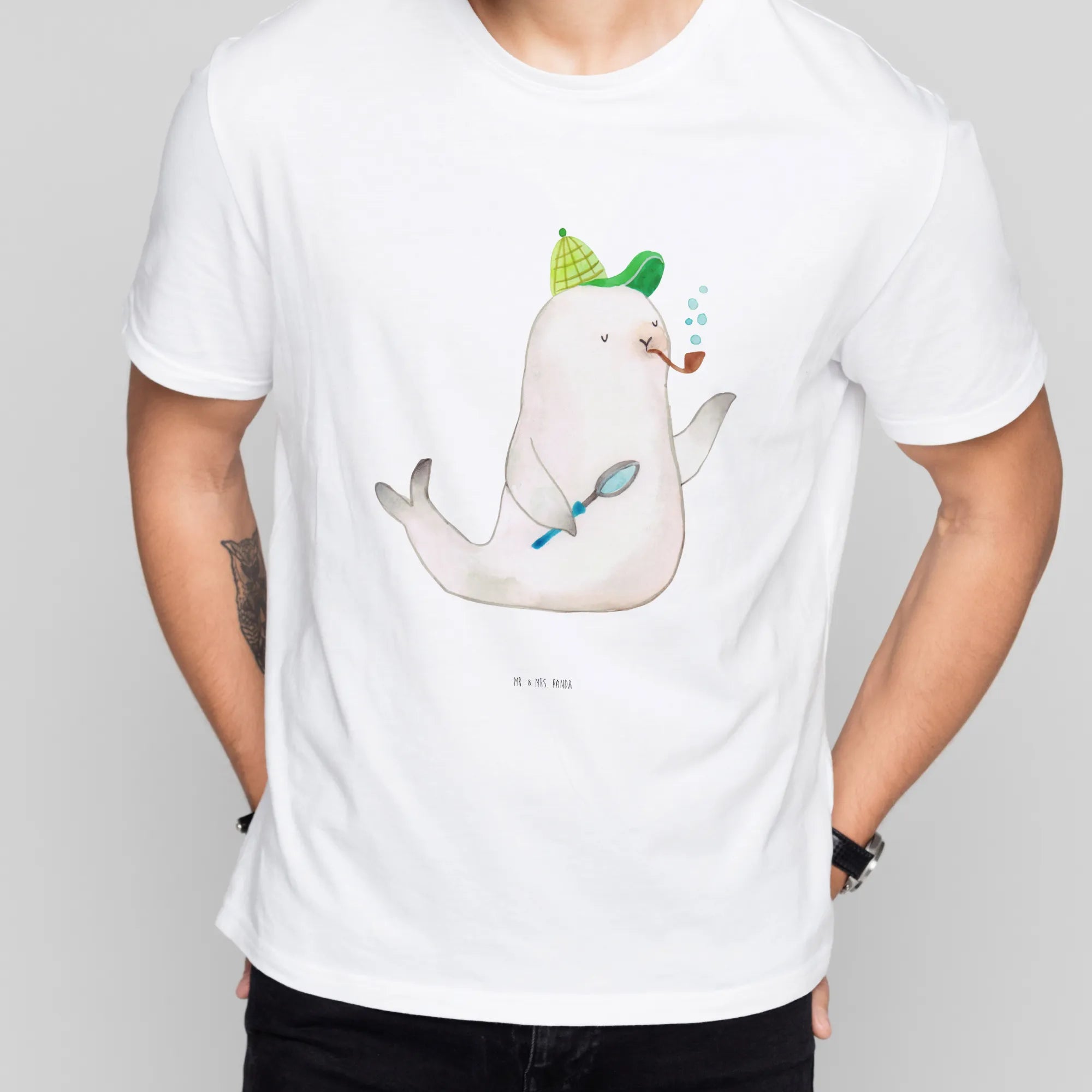 Rozmiar M T-shirt foka Sherlock - Größe XXL T-Shirt - z napisem - biały