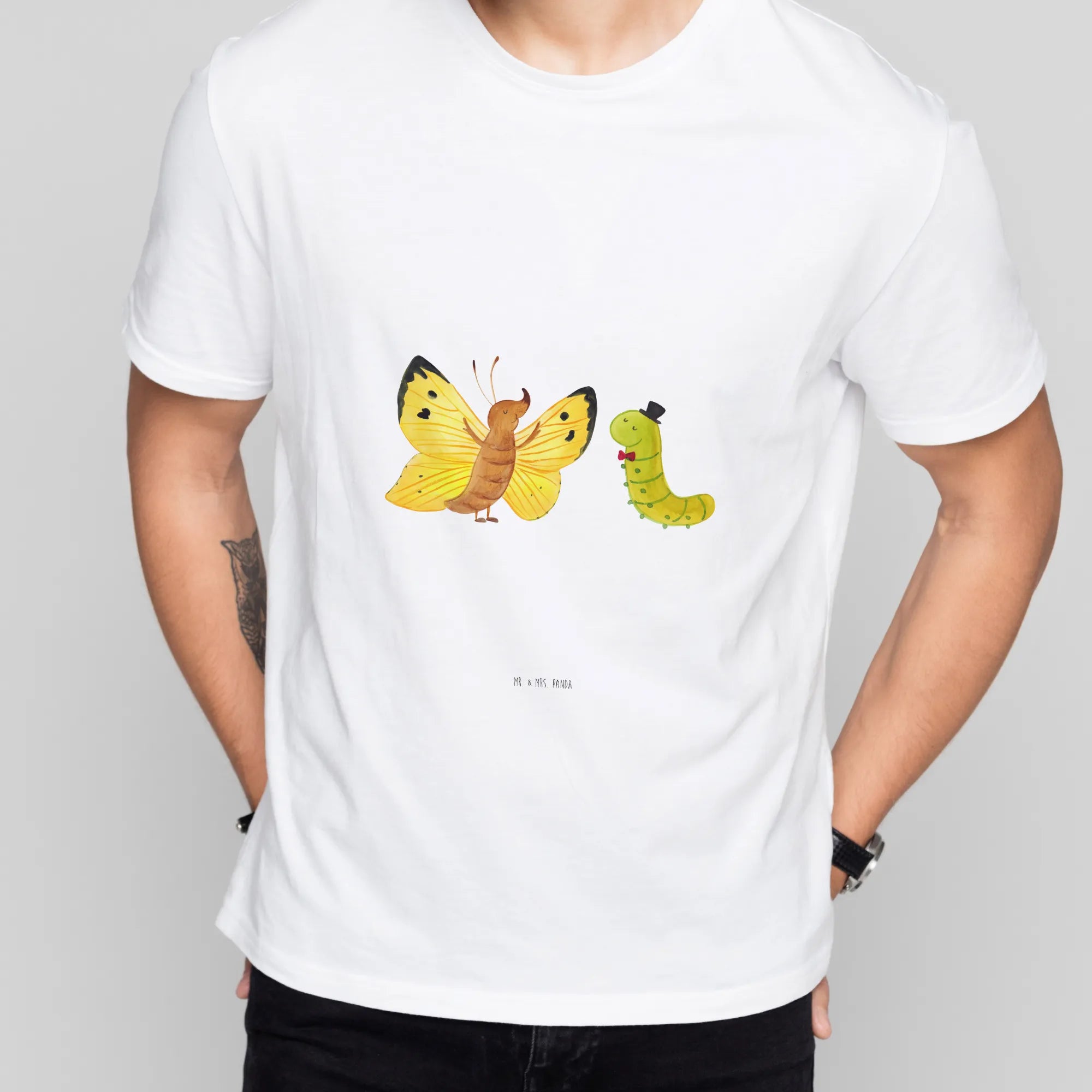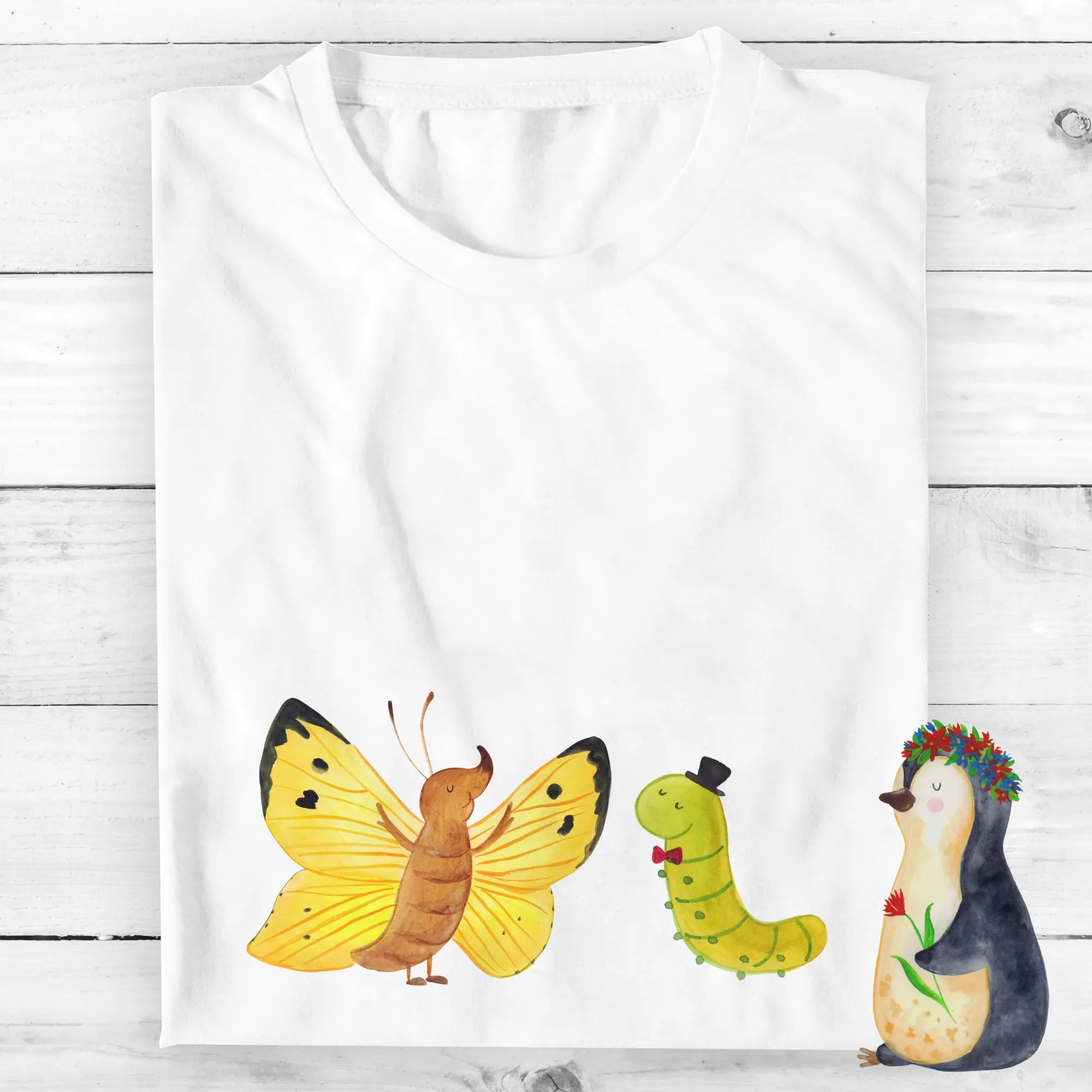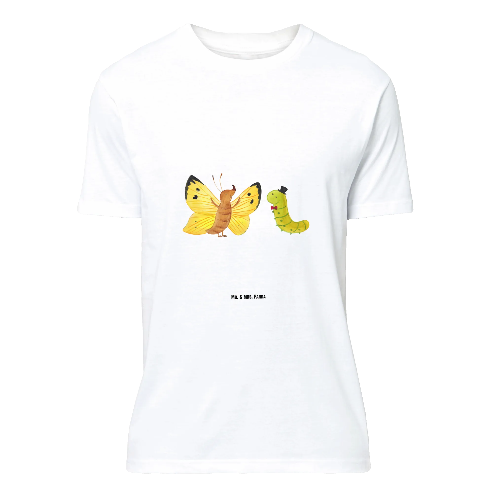 Rozmiar M T-shirt gąsienica motyl - Größe XXL T-Shirt - z napisem - biały