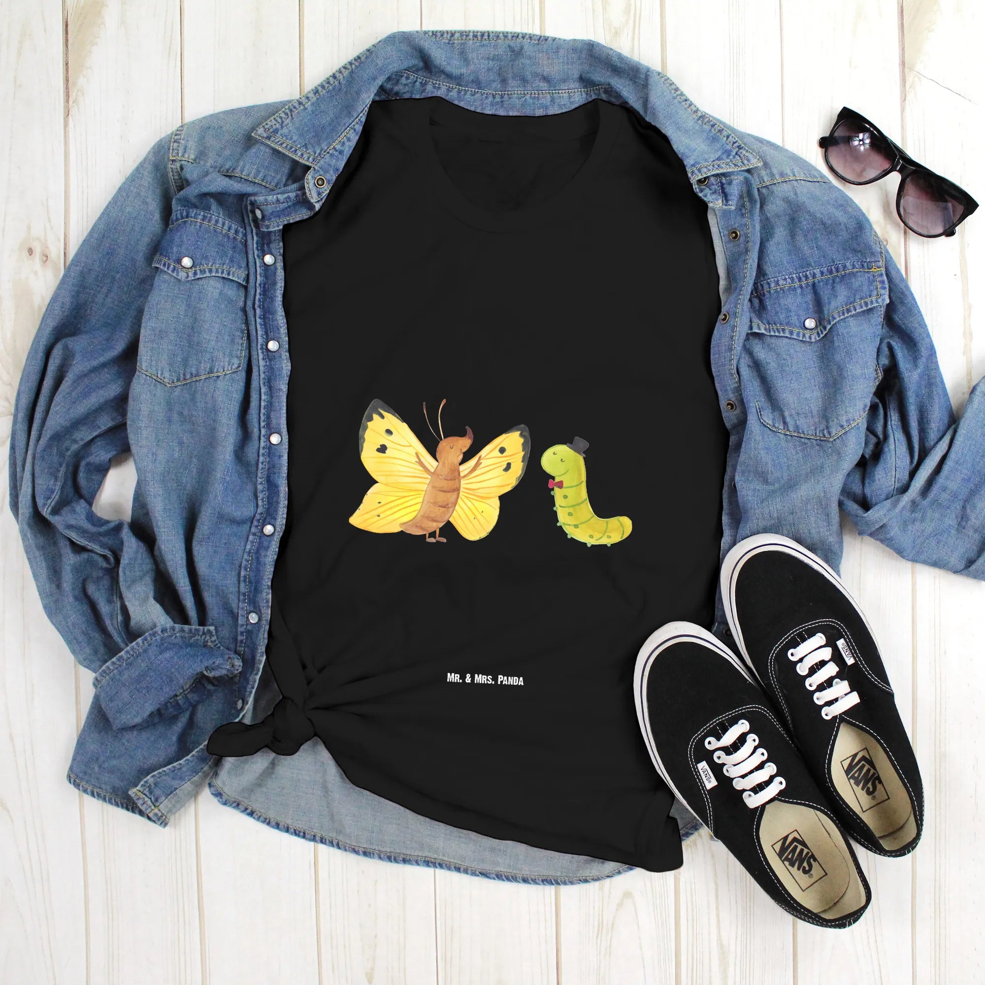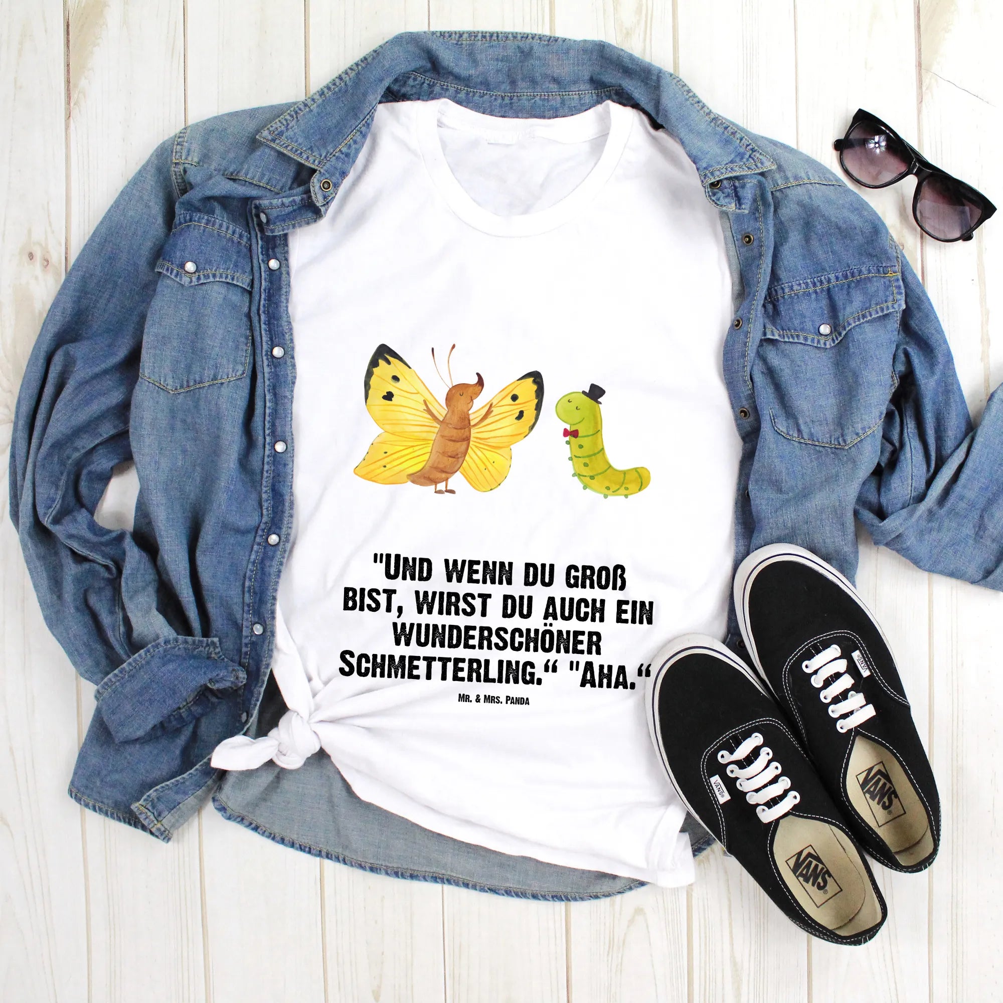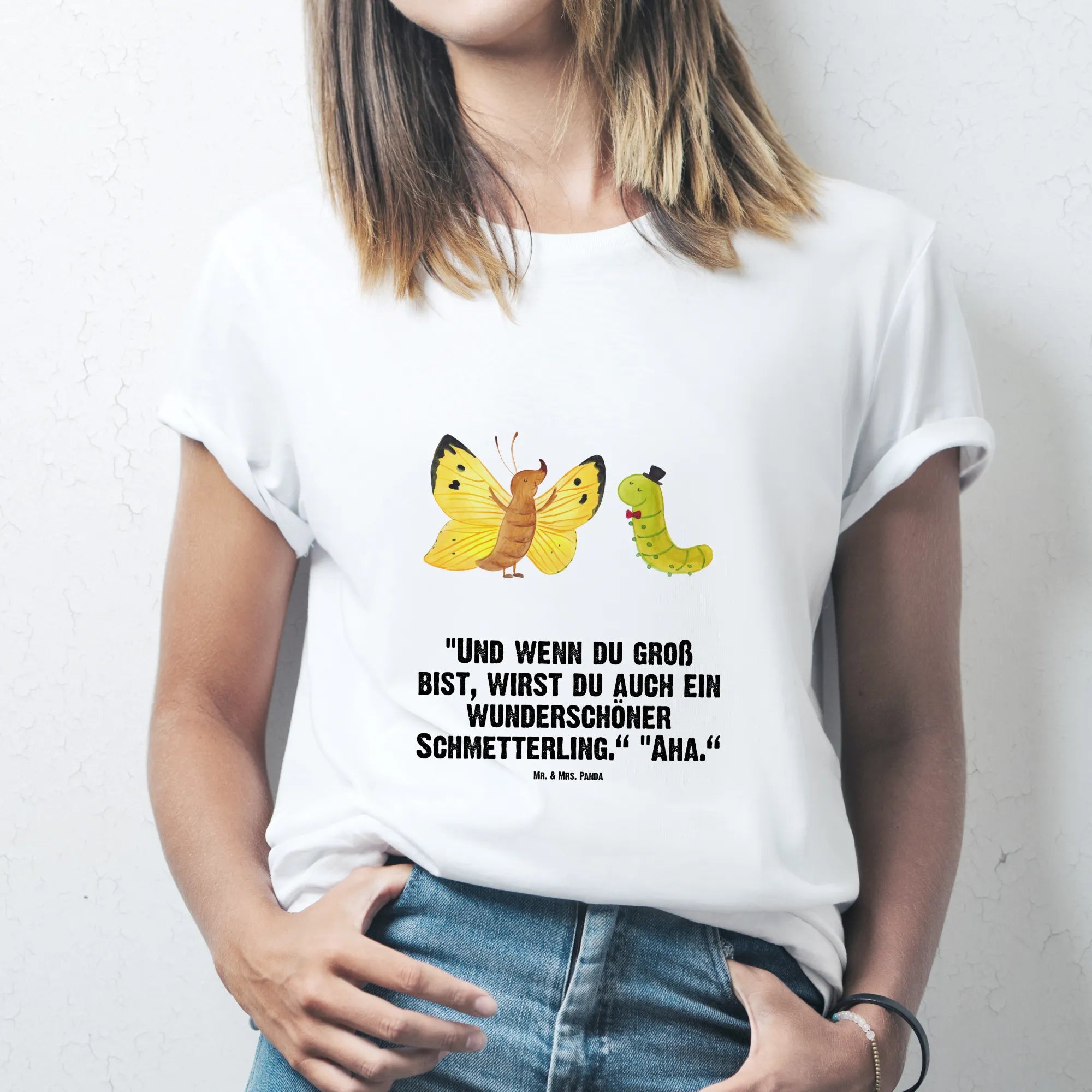 Rozmiar M T-shirt gąsienica motyl - Größe XXL T-Shirt - z napisem - biały