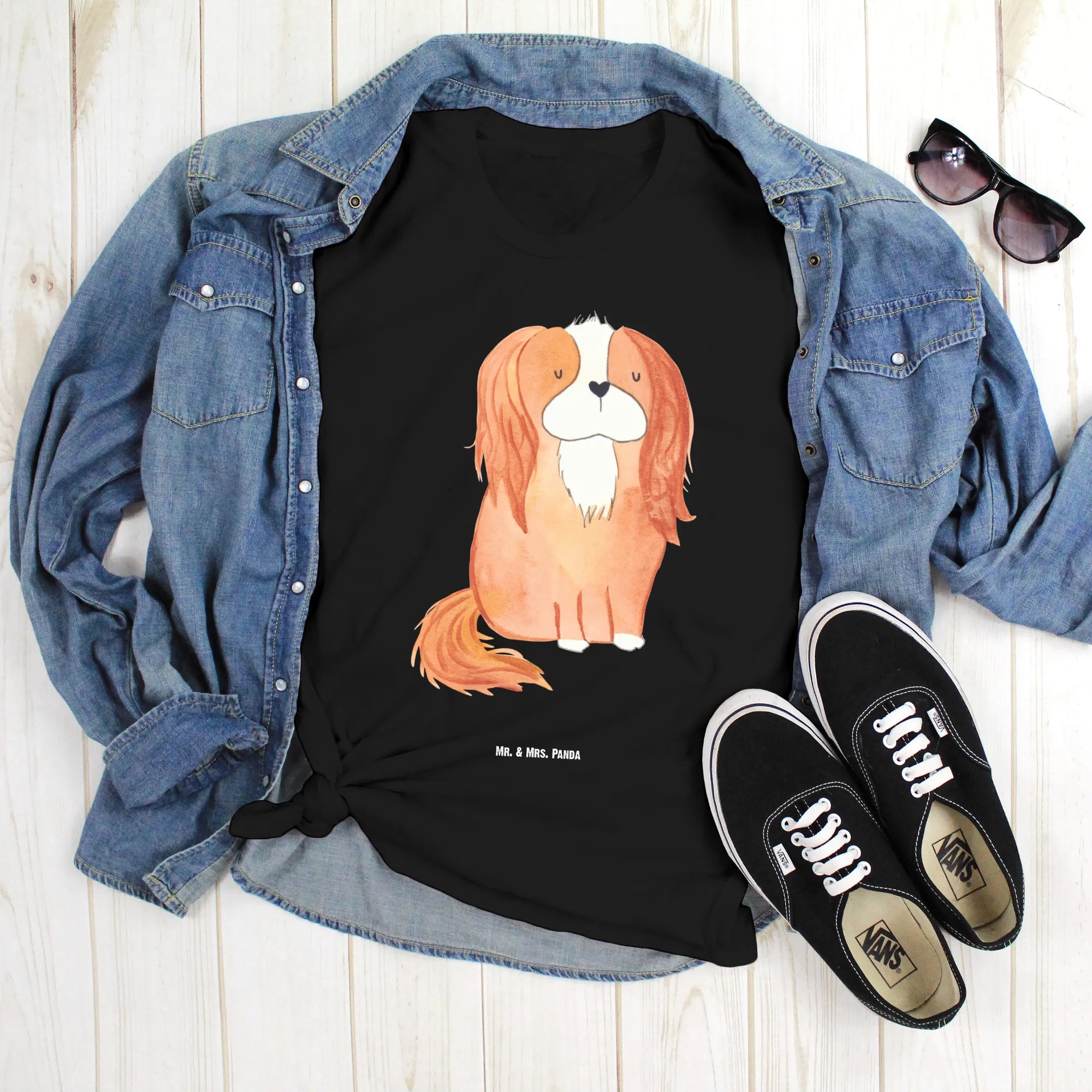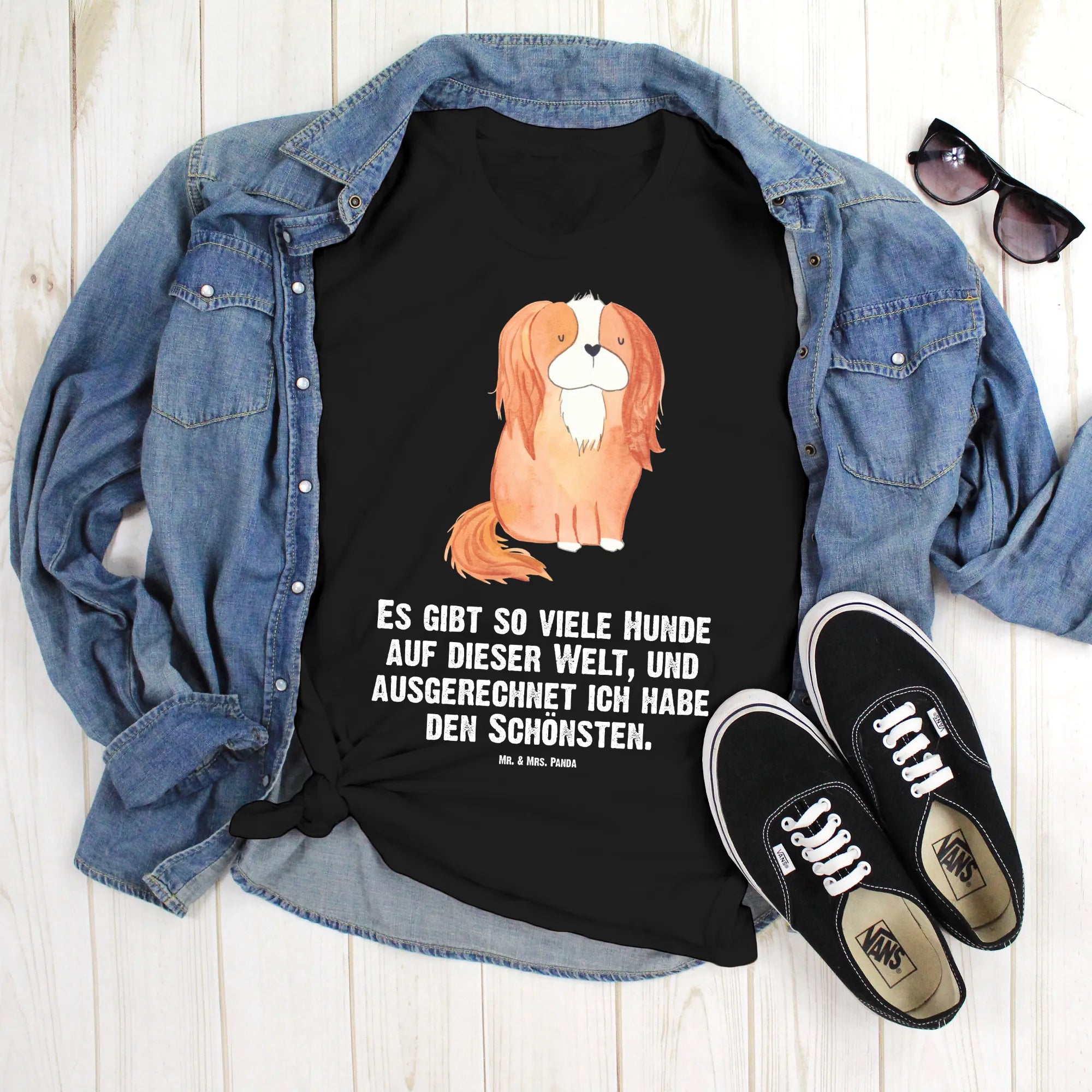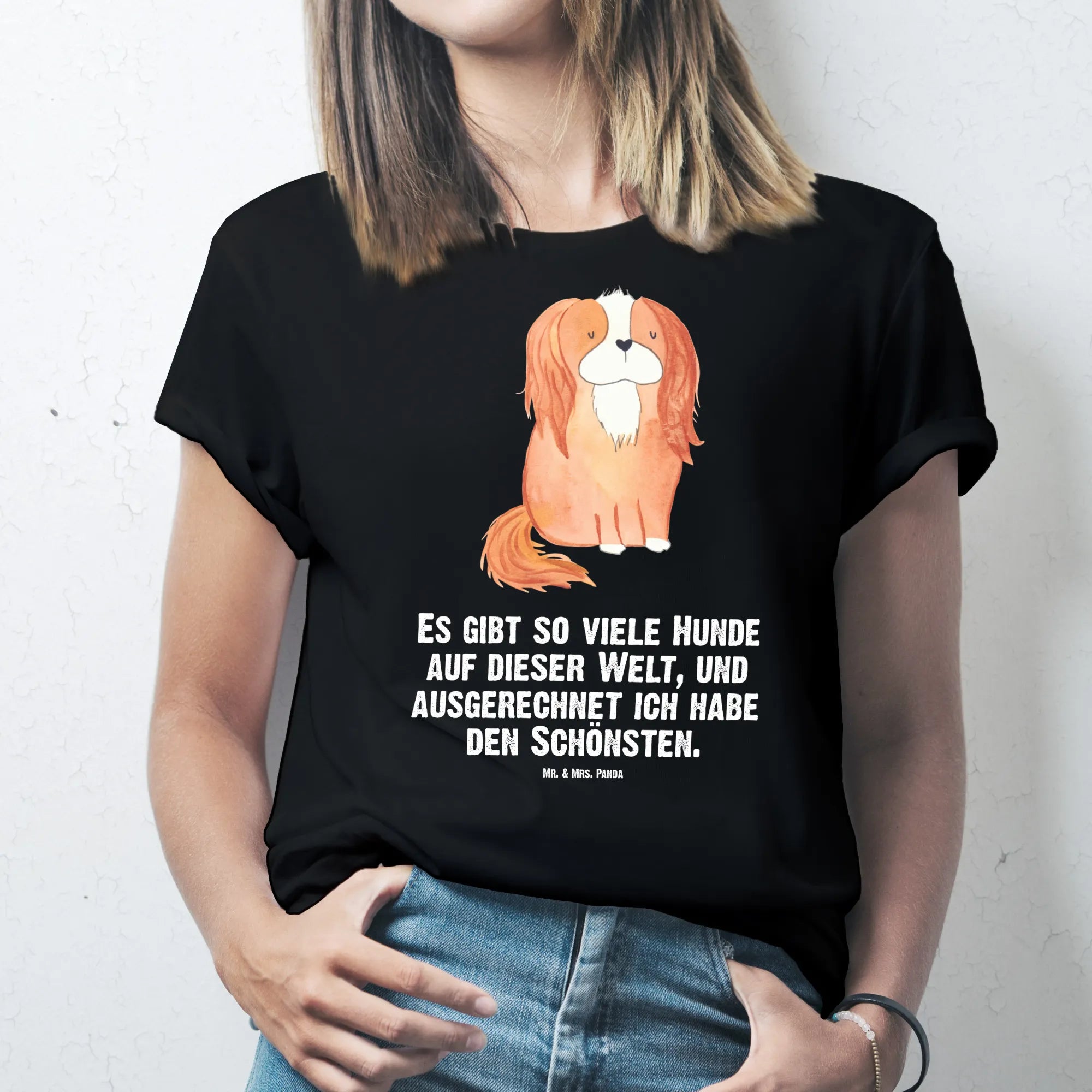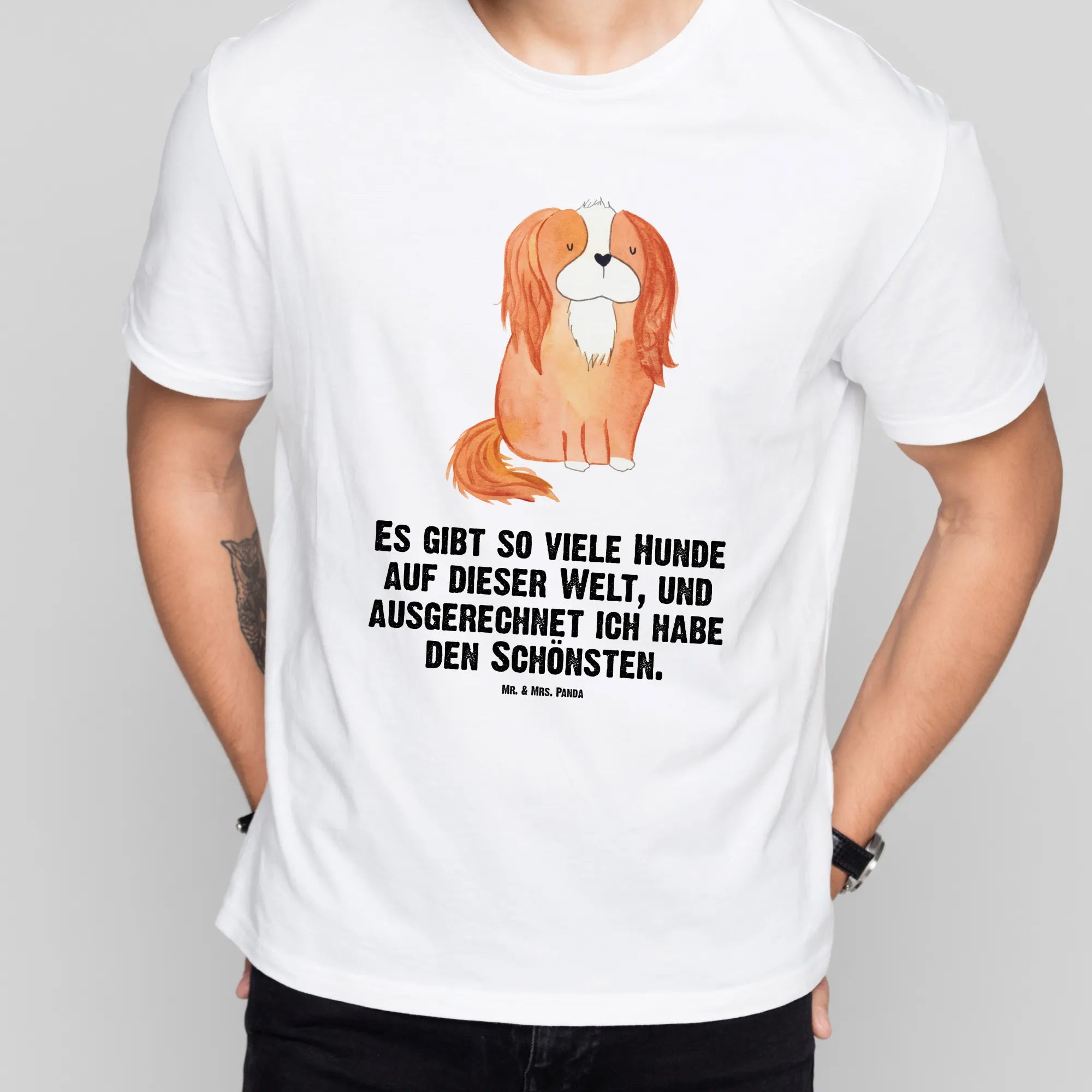 Rozmiar M T-shirt pies Cavalier King Charles Spaniel - Größe L T-Shirt - z napisem - biały