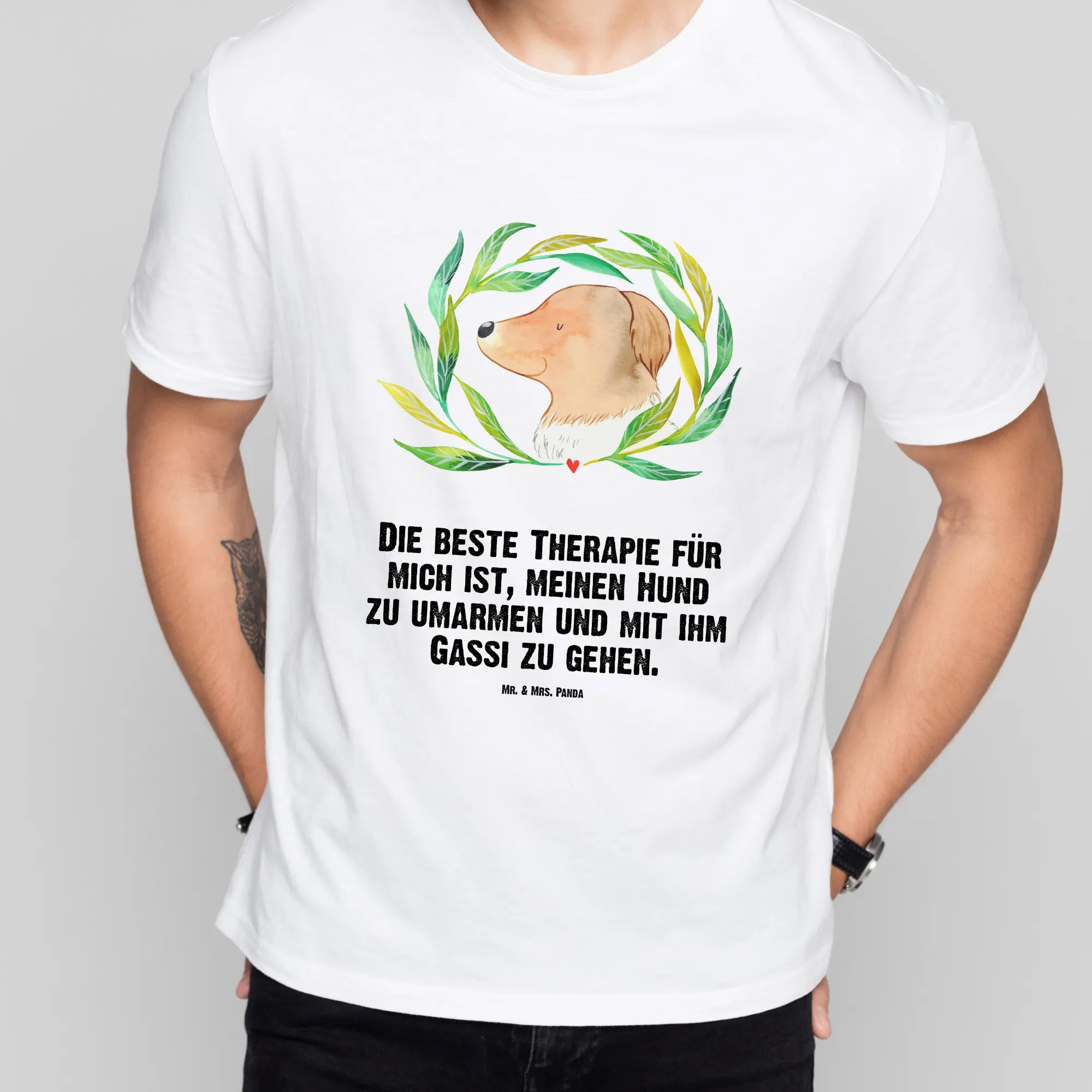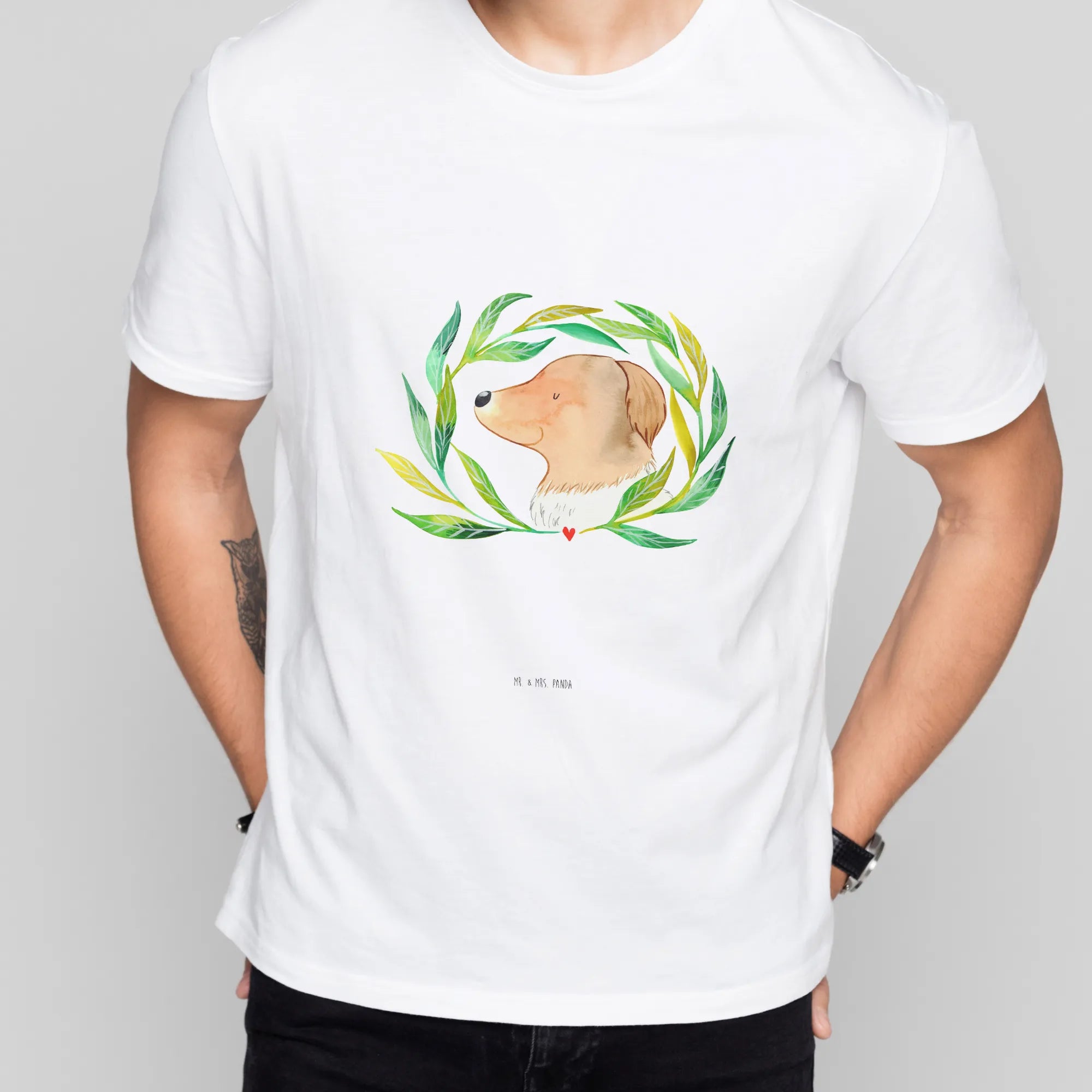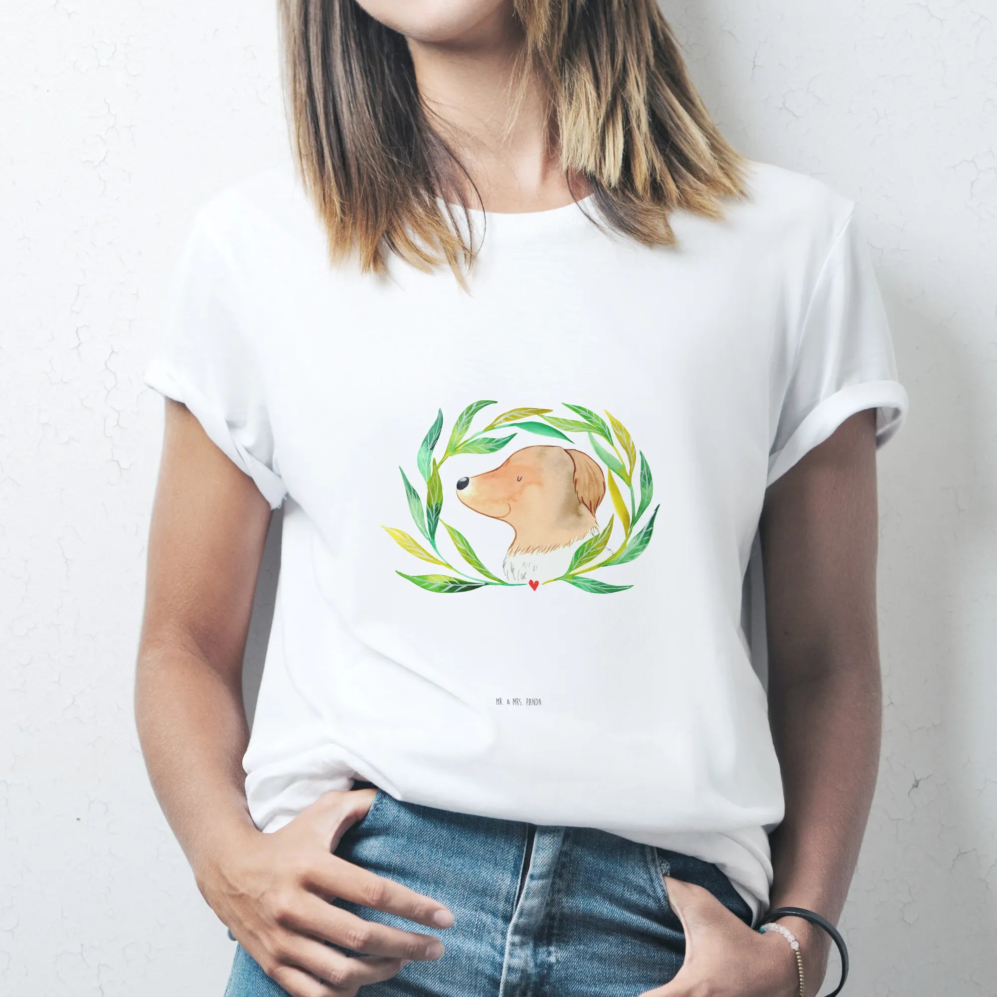 Rozmiar M T-shirt pies kwiaty - Größe L T-Shirt - z napisem - biały