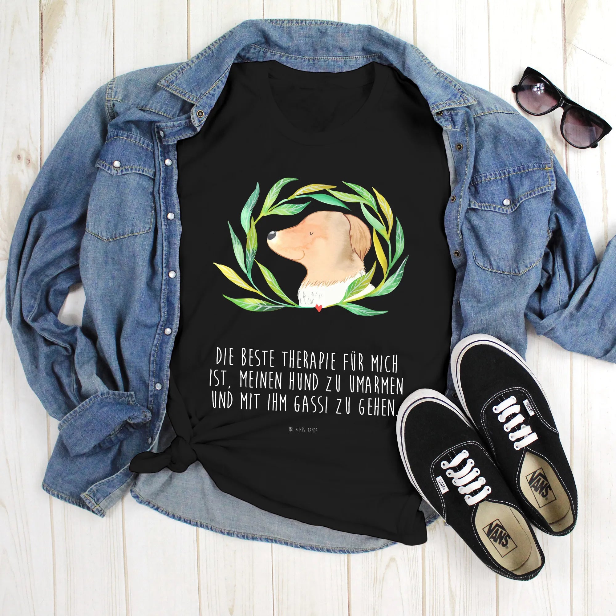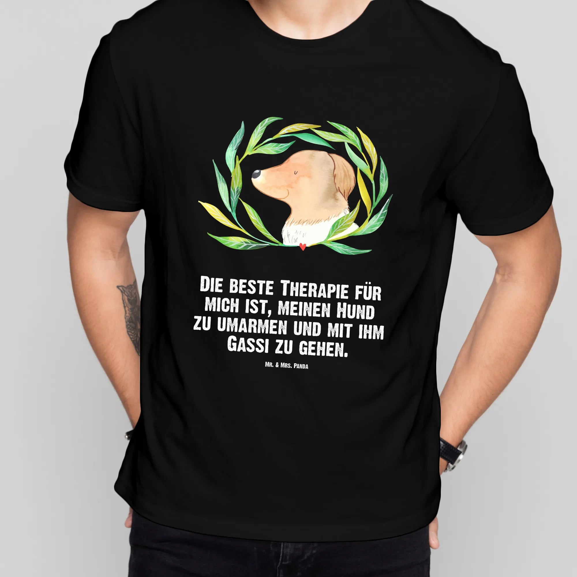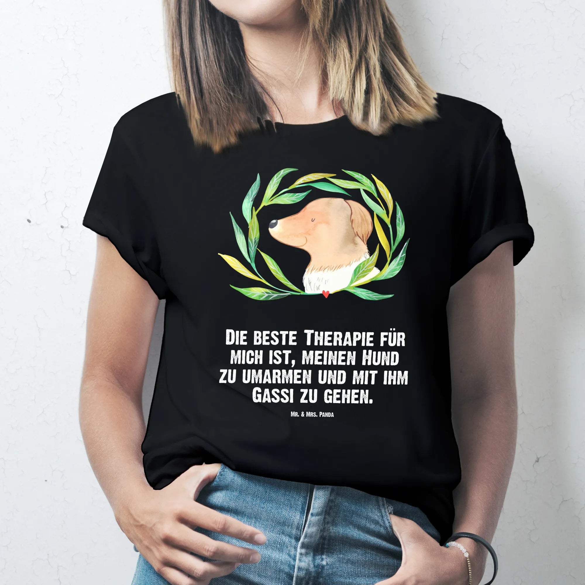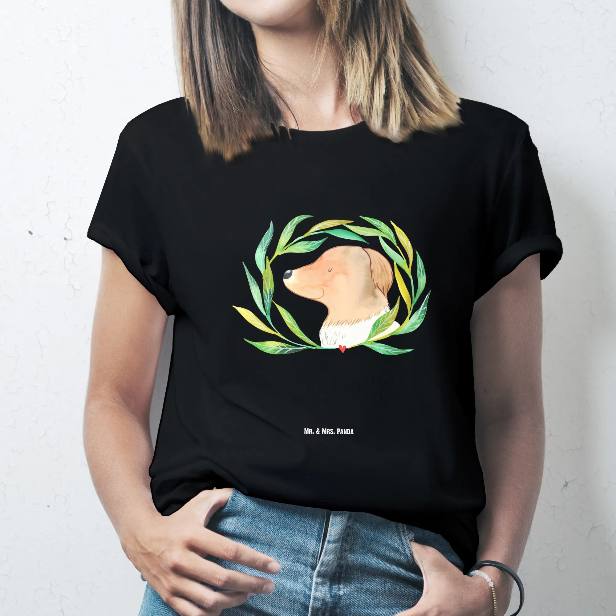 Rozmiar M T-shirt pies kwiaty - Größe L T-Shirt - z napisem - biały