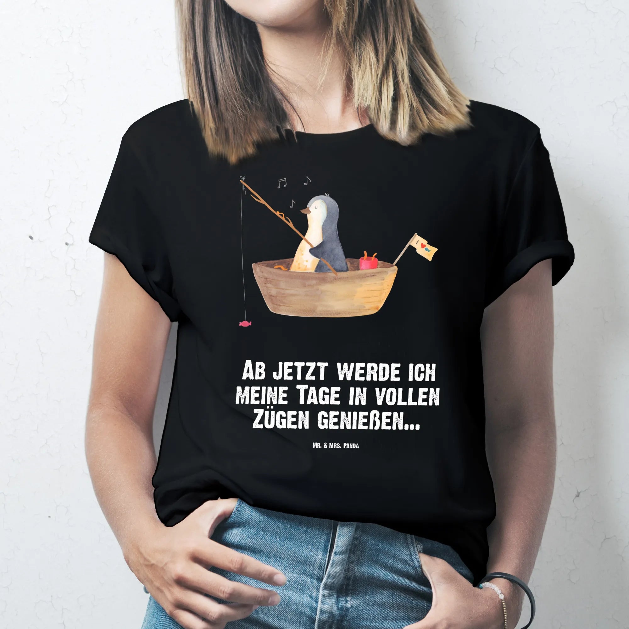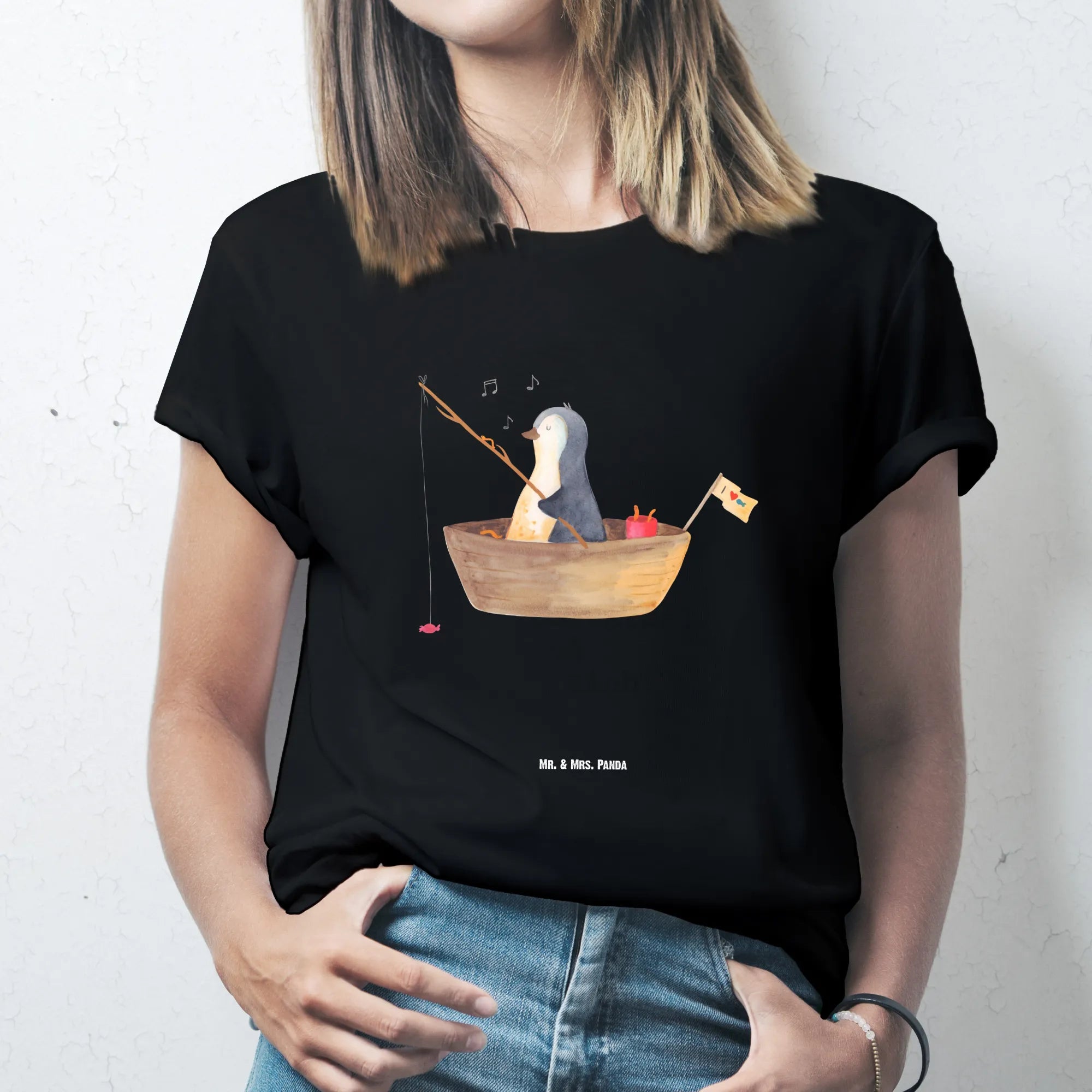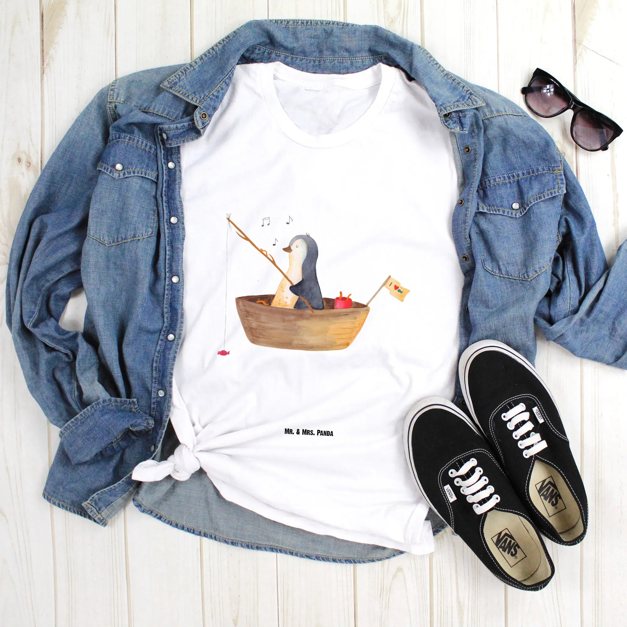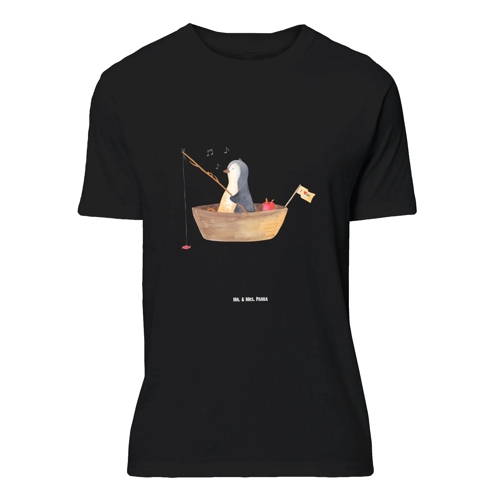 Rozmiar M T-shirt pingwin łódka wędkarska - Größe XXL T-Shirt - z napisem - biały