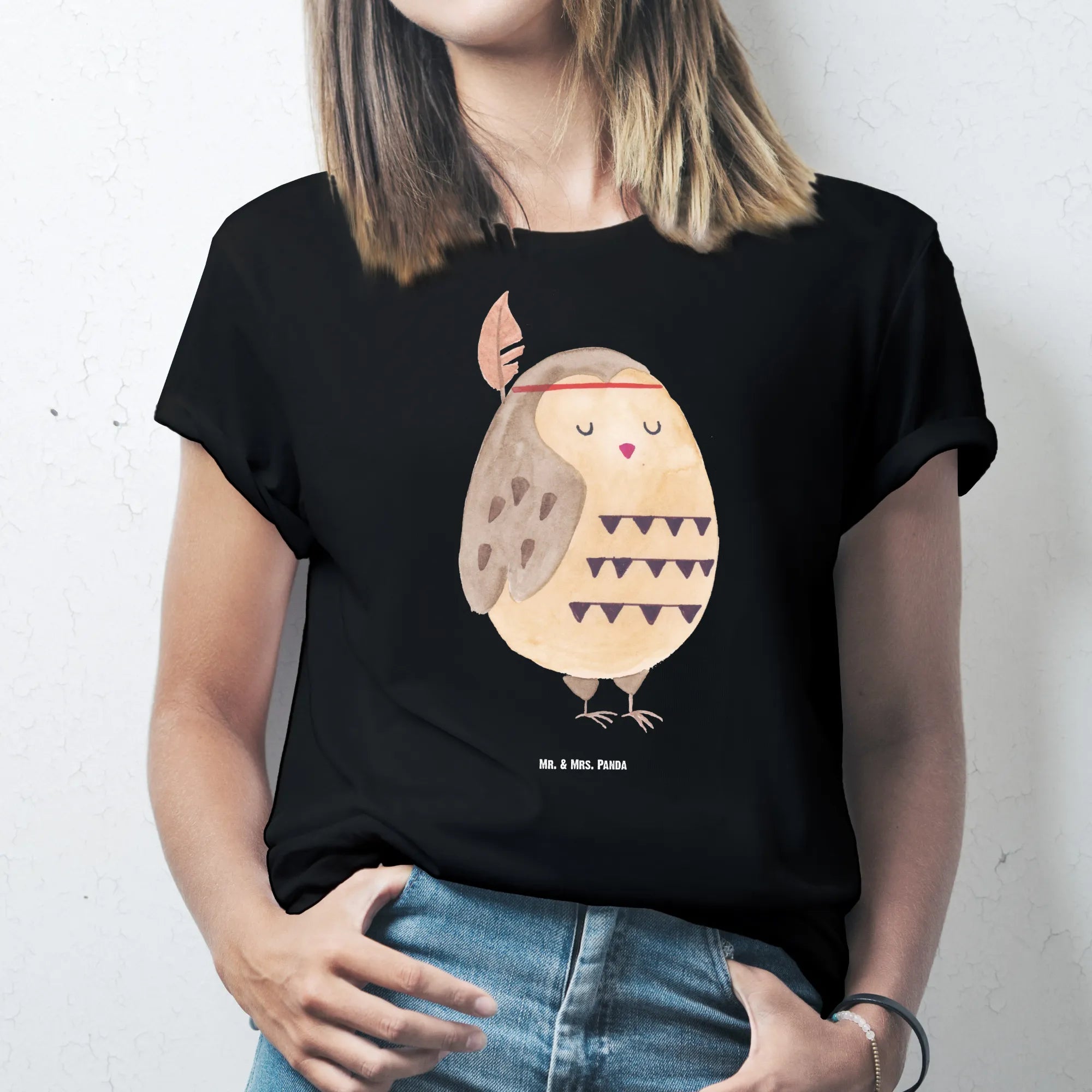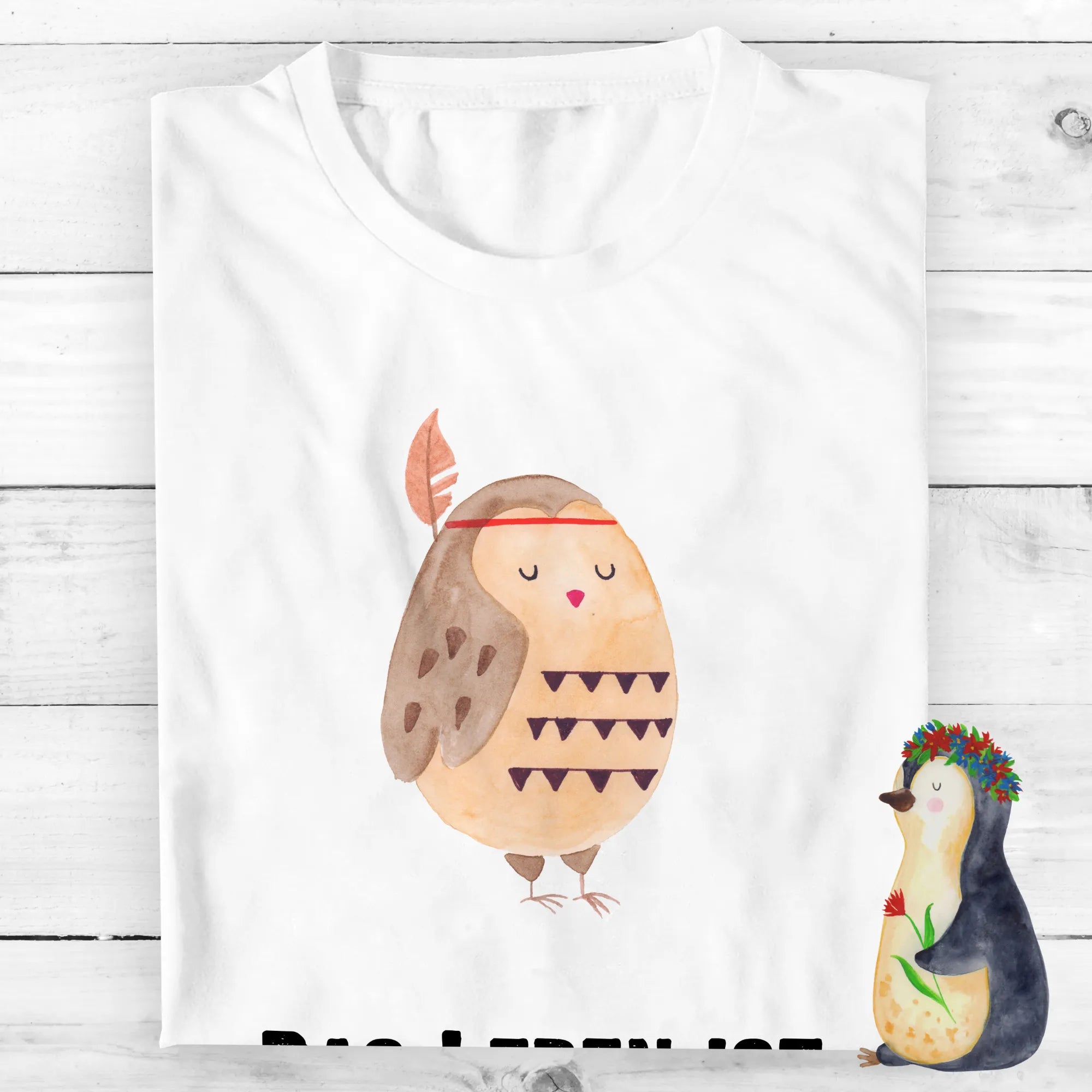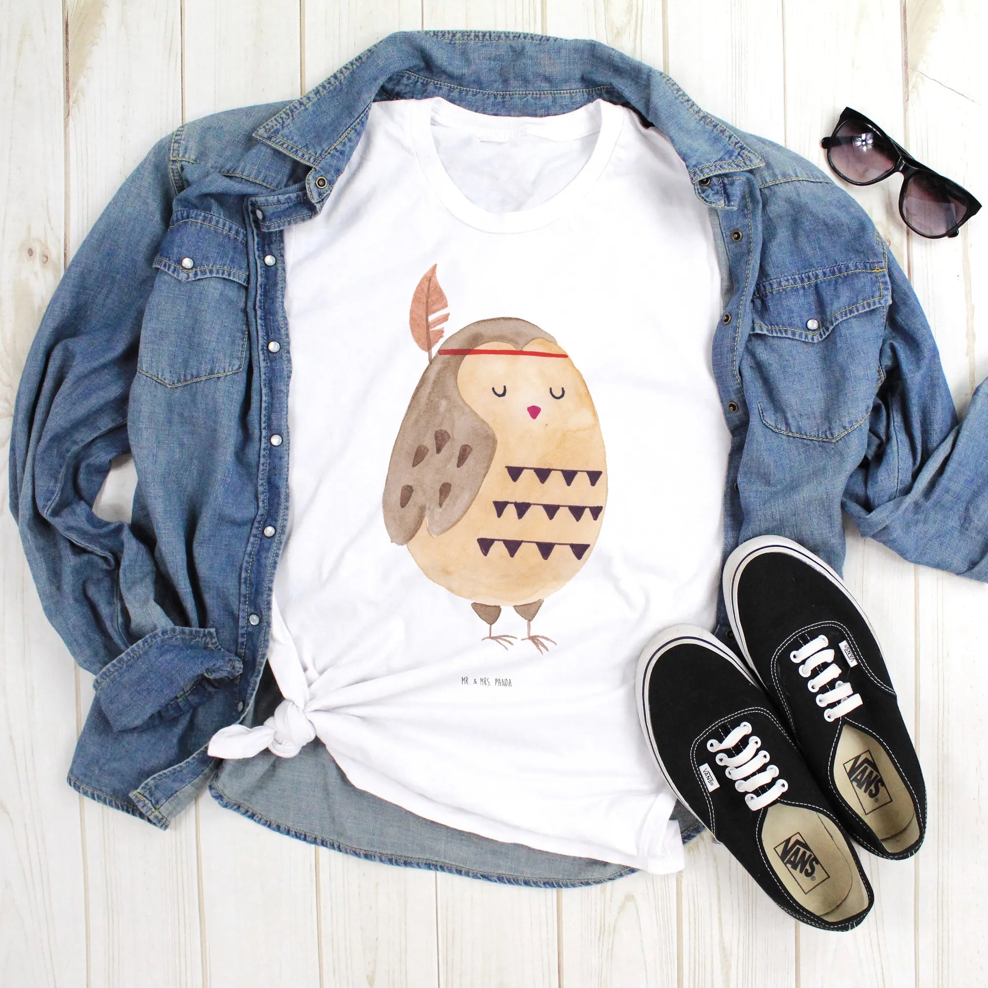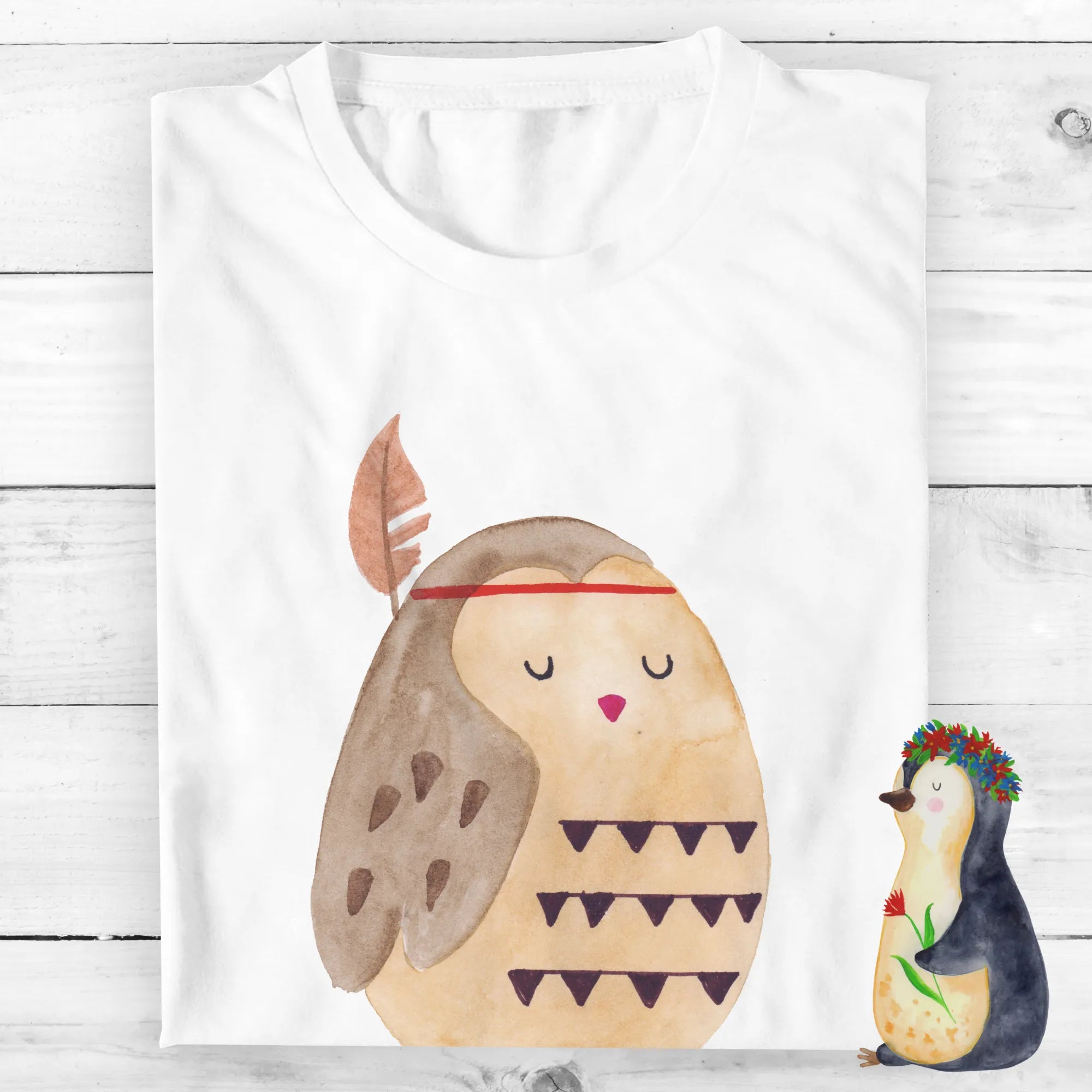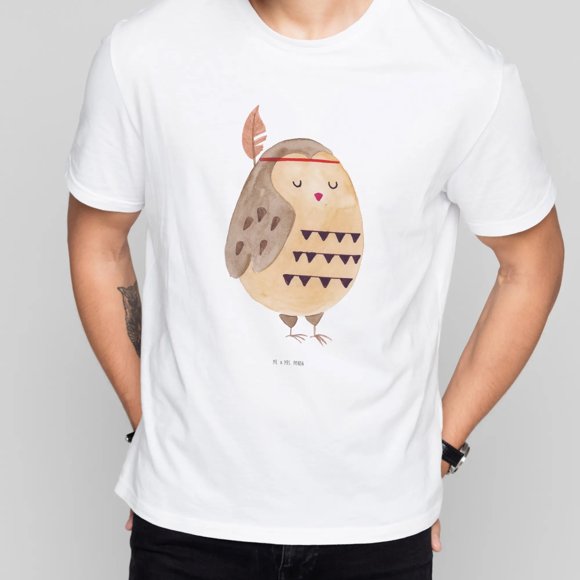 Rozmiar M T-shirt sowa Ozdoba z piór - Größe L T-Shirt - z napisem - biały