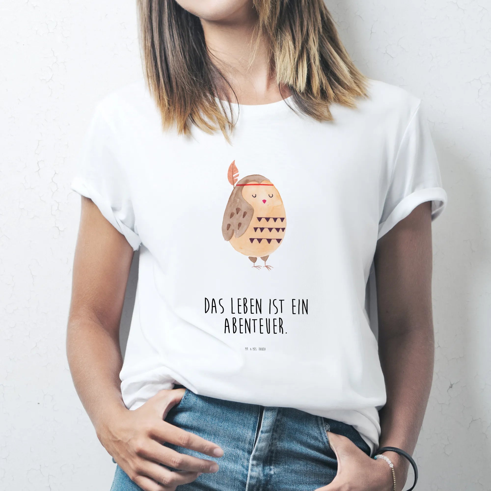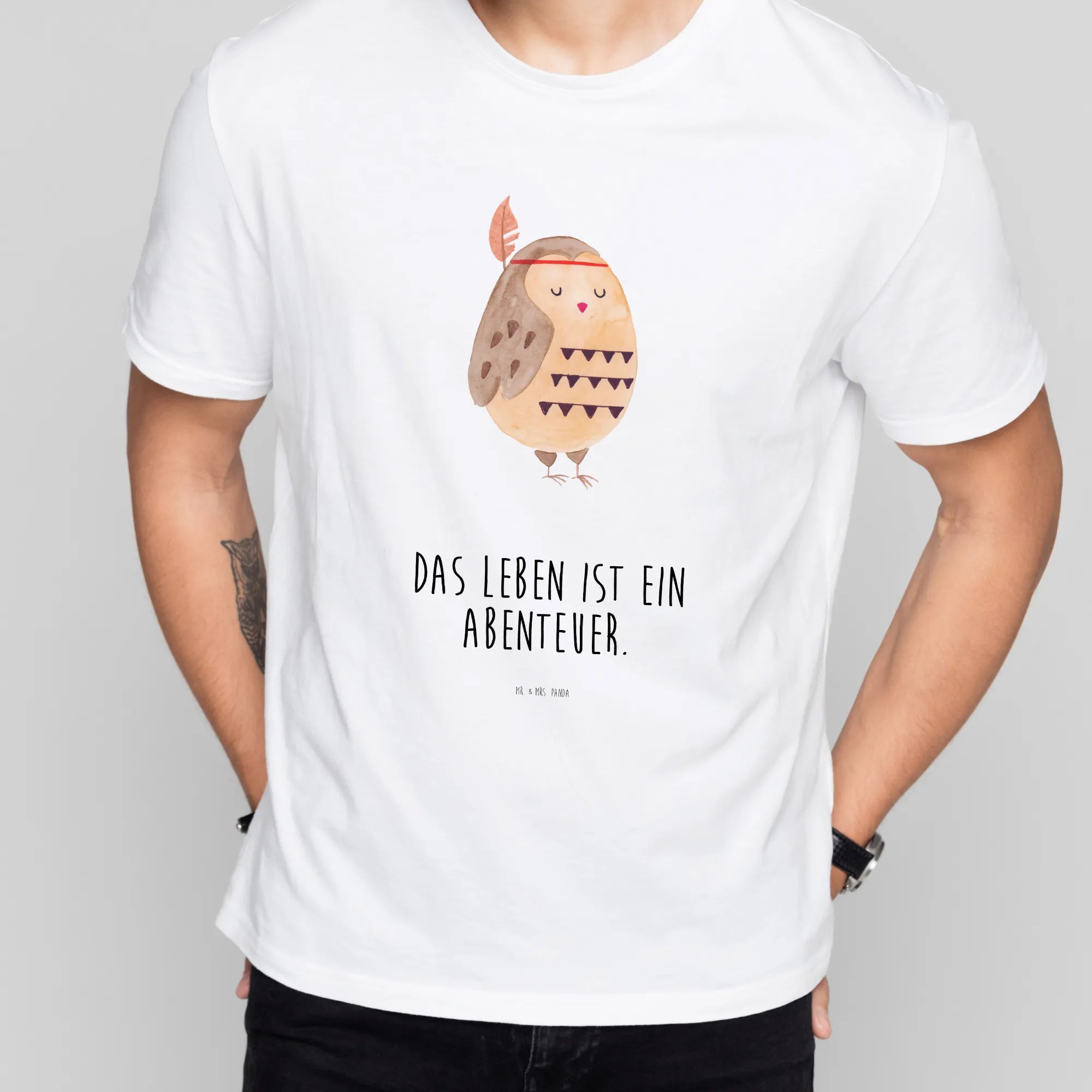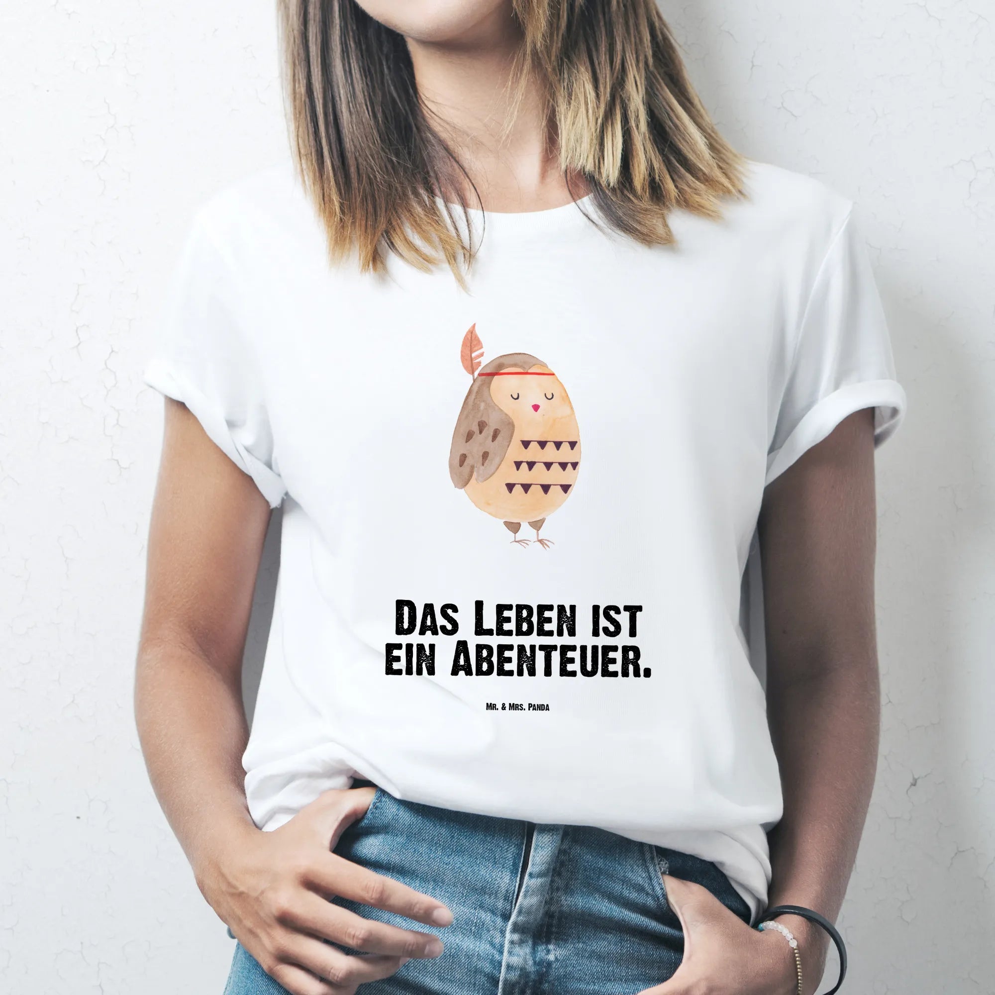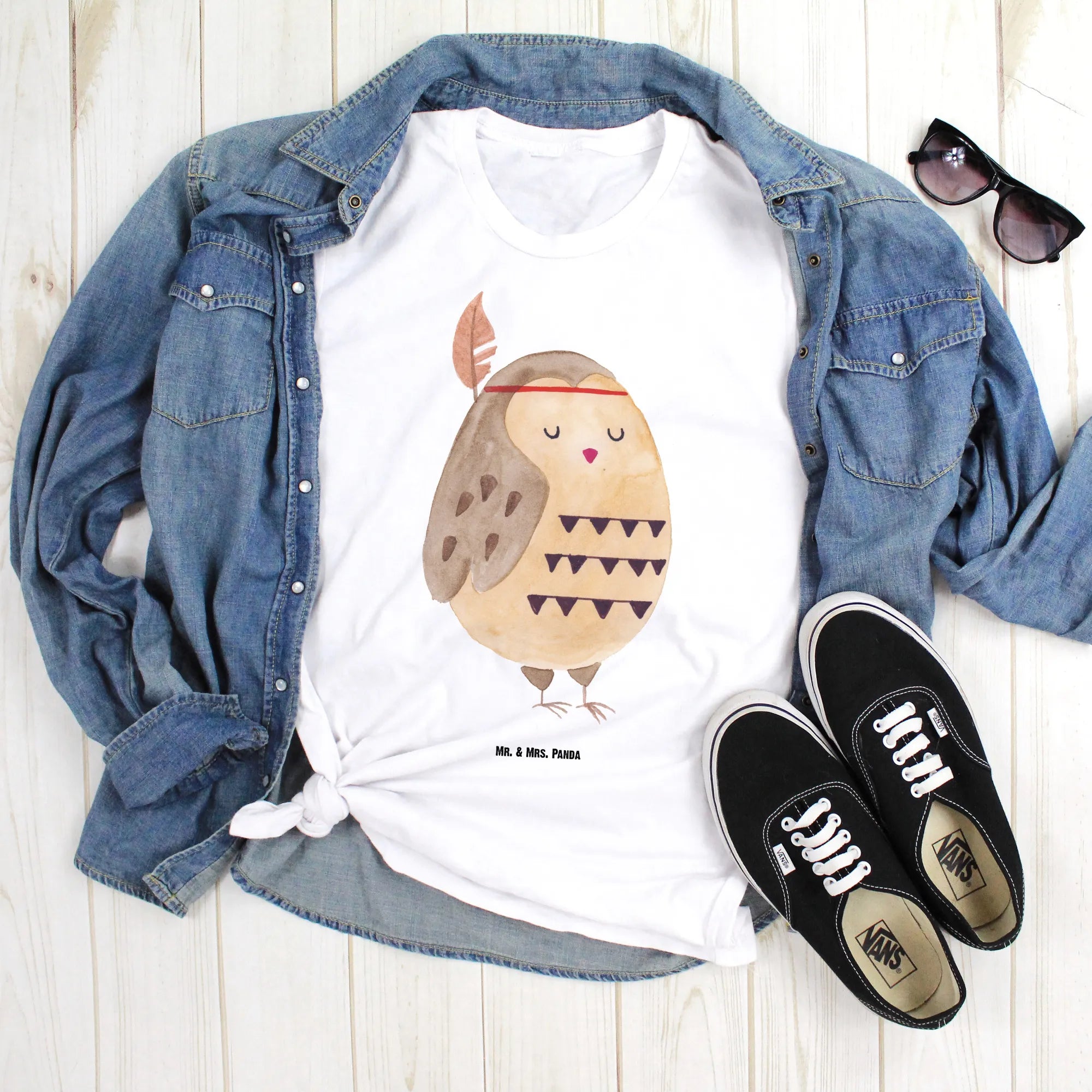 Rozmiar M T-shirt sowa Ozdoba z piór - Größe L T-Shirt - z napisem - biały
