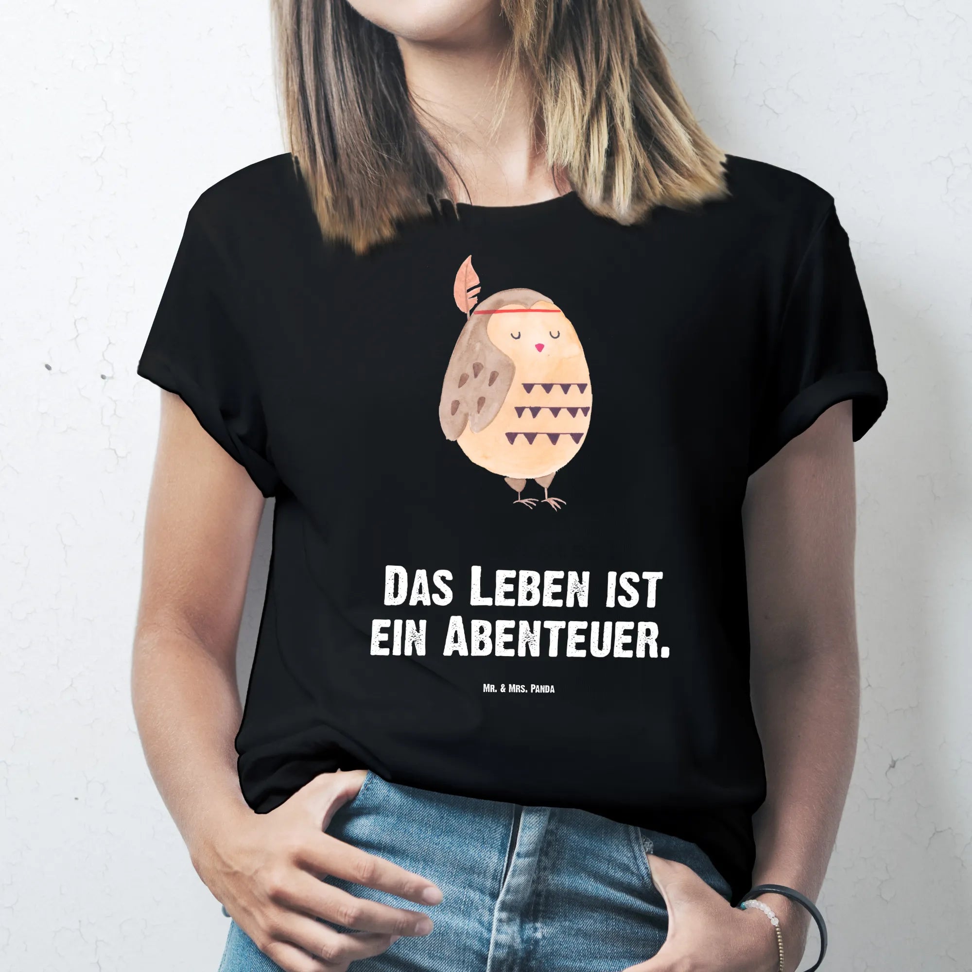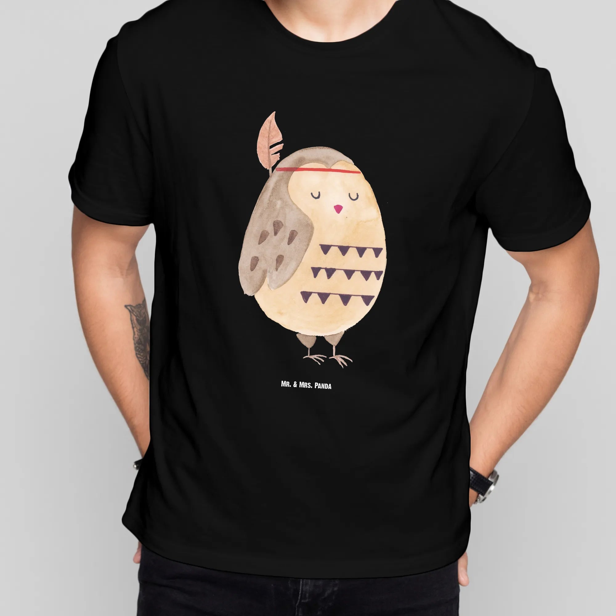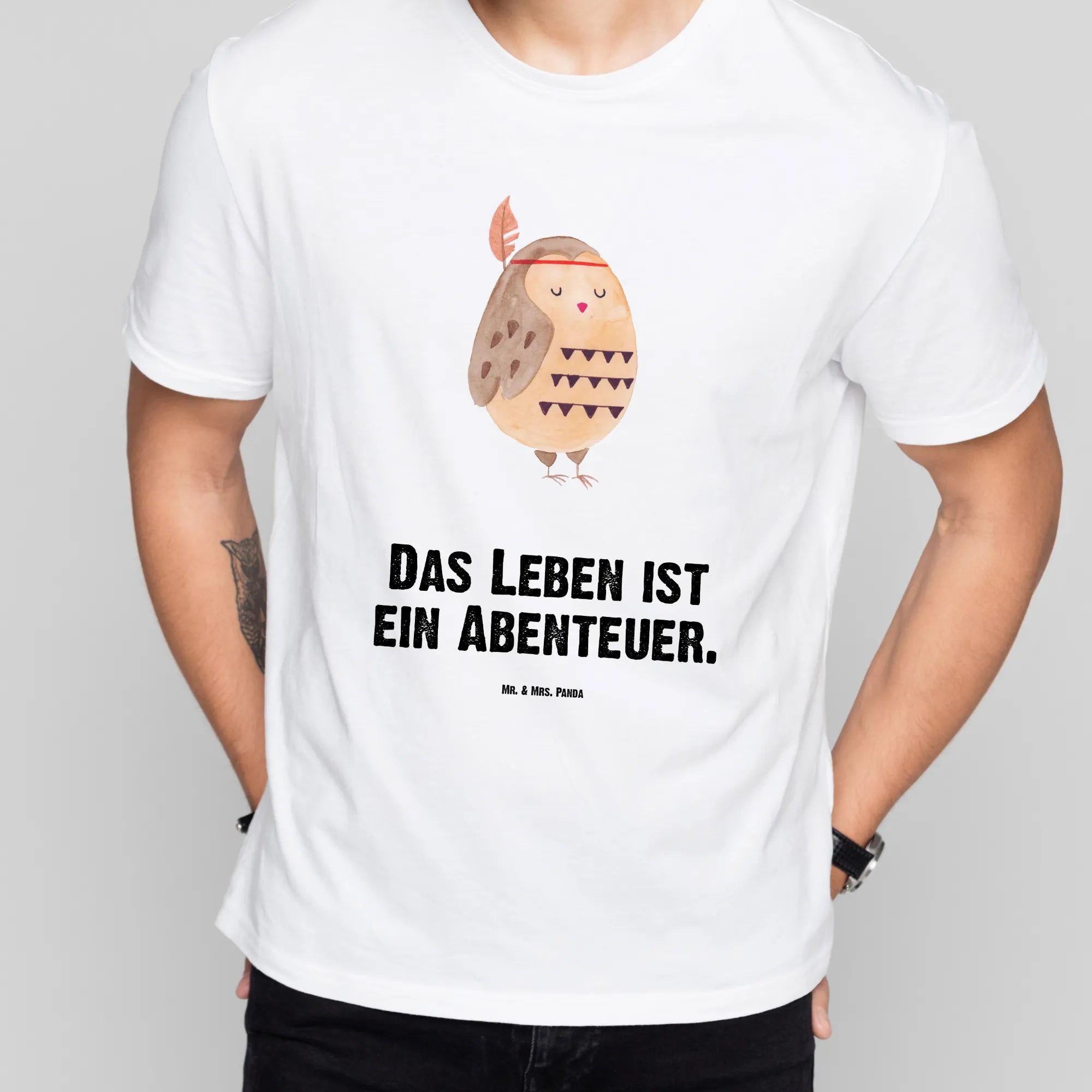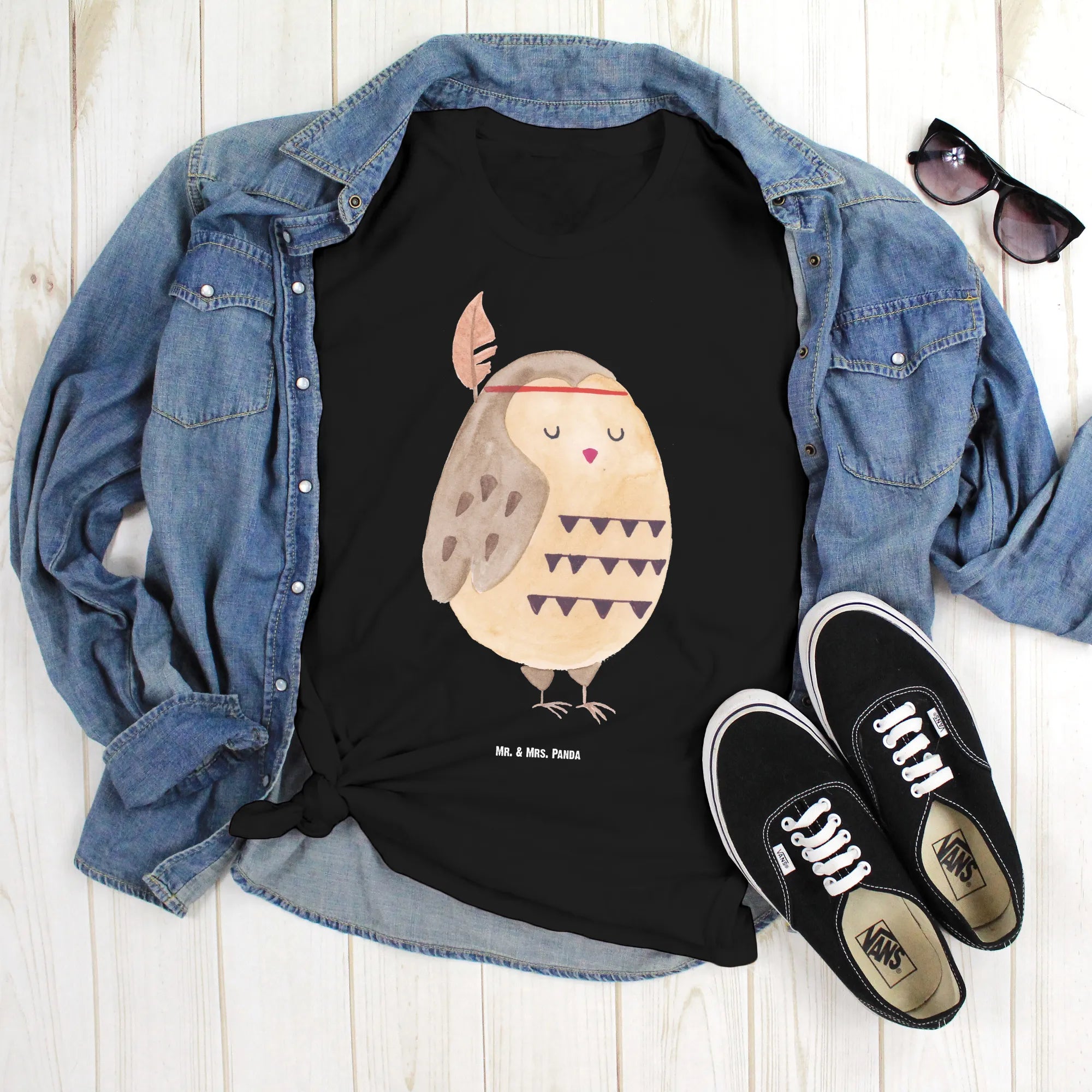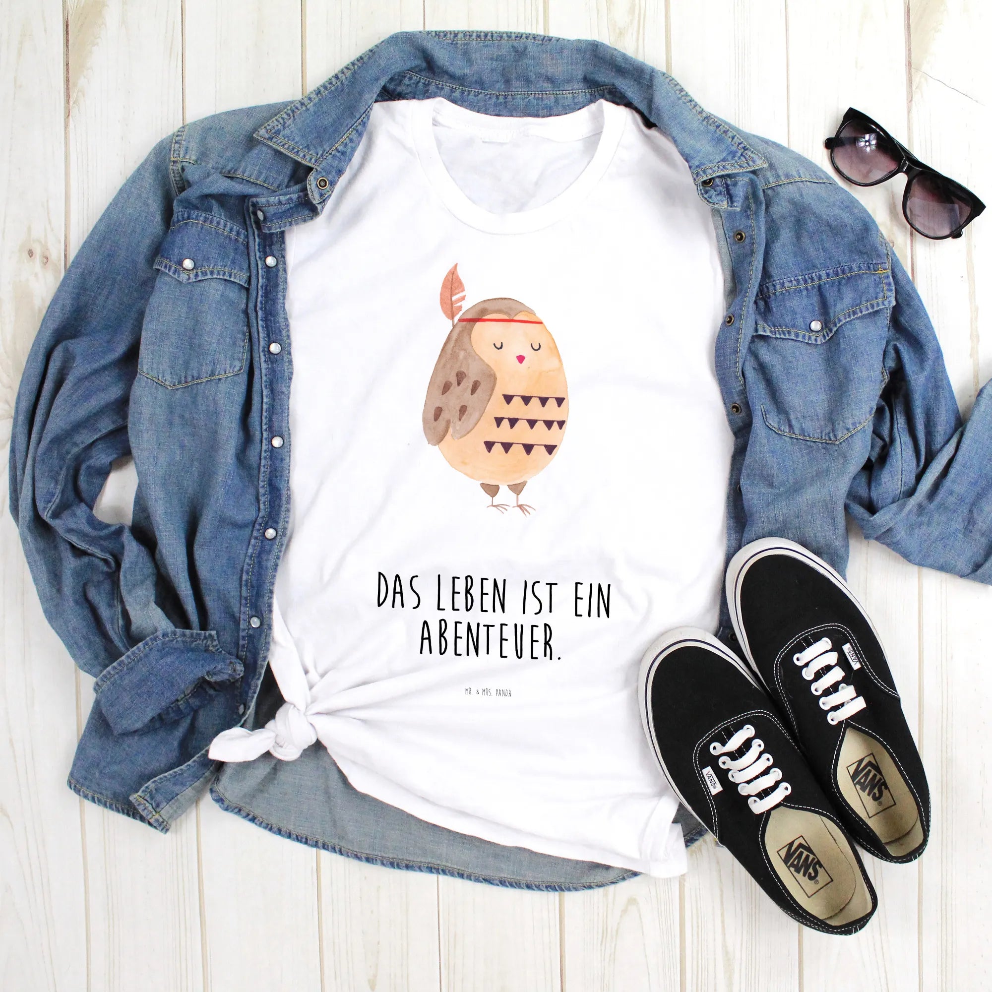 Rozmiar M T-shirt sowa Ozdoba z piór - Größe L T-Shirt - z napisem - biały